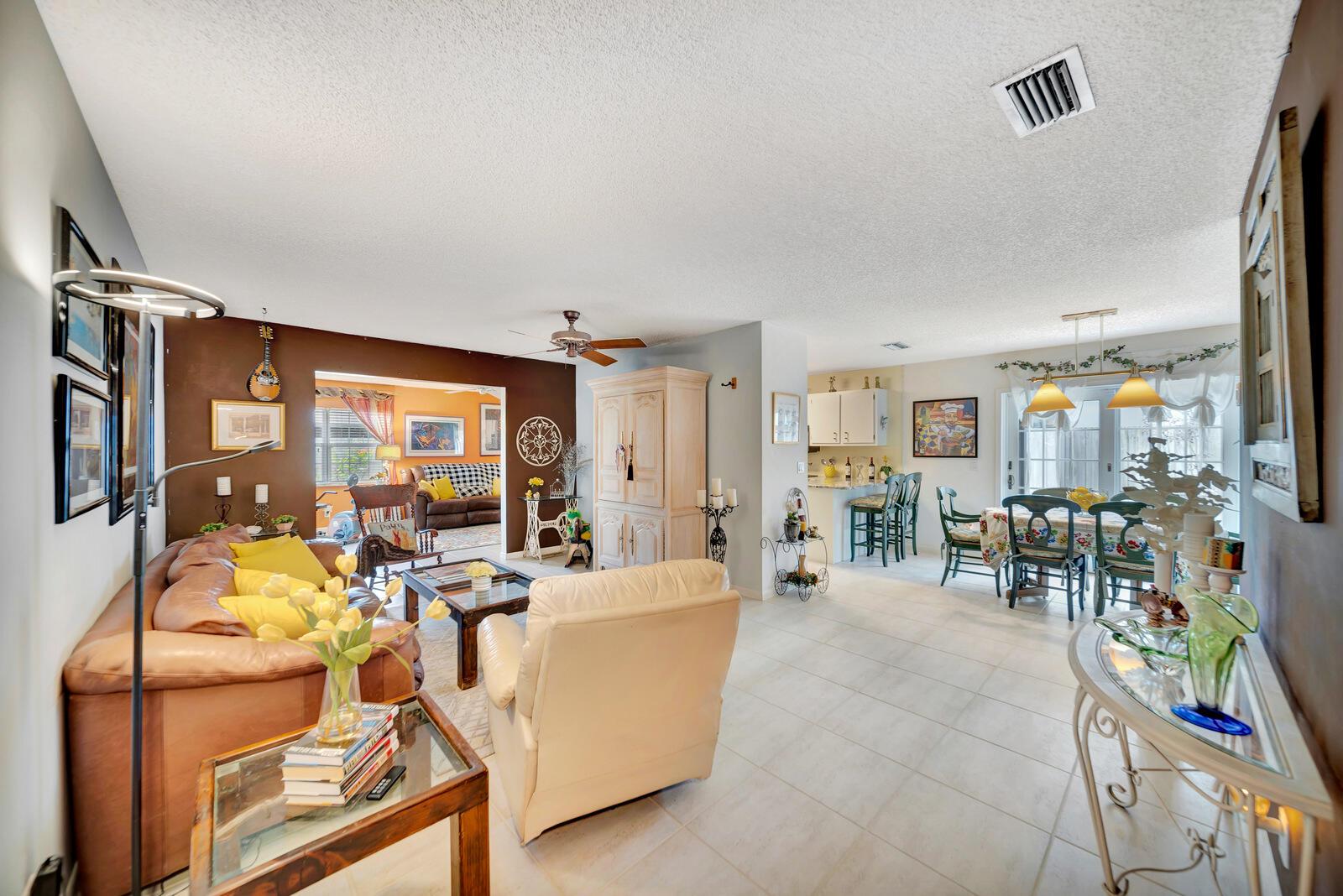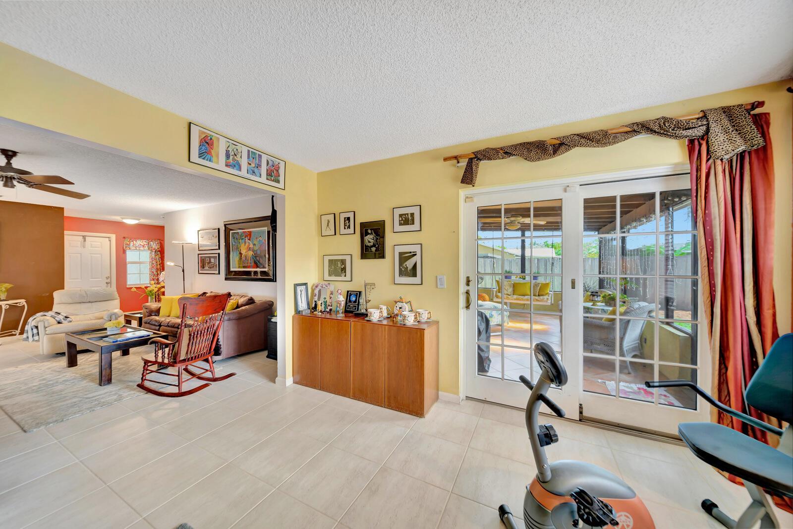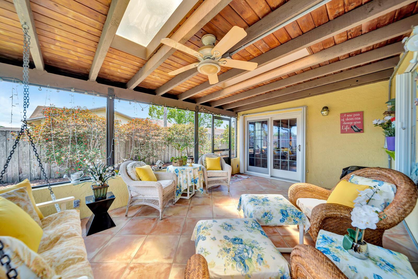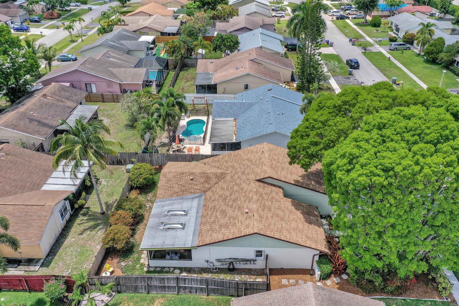 WOW! Super Spacious Single Family Home Features 3 Bedrooms, 2 Bathrooms, a 2 Car Garage, a pavered driveway and a huge screened in/covered patio located in Saddlebrook/Spanish Isles! New roof from 2021!!!! Gorgeous ZeraScape landscaping, meaning no watering necessary and easy to maintain. Tropical paradise oasis with tons of lush landscaping including all kinds of Bromeliads, Blue Ruella, Arboricola, & Firebush which attract hummingbirds and butterflies, just to mention a few. Beautiful mature trees for shade. Fenced in with a gate on both sides, PLUS pole fence from the front yard (grandfathered in w/HOA). It feels like you live in your own private park. The screened in patio has tile flooring, tongue and grove ceiling with skylights and includes a hanging swing. Fabulous foyer entry.