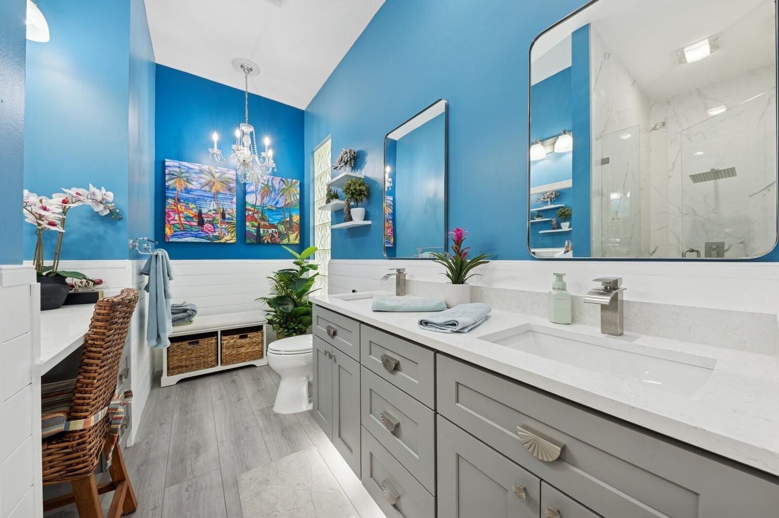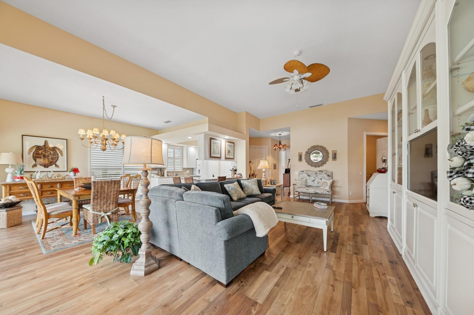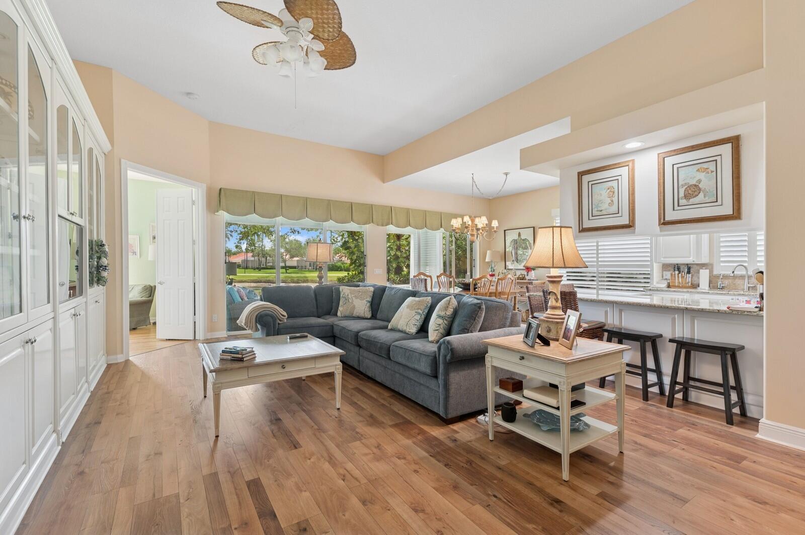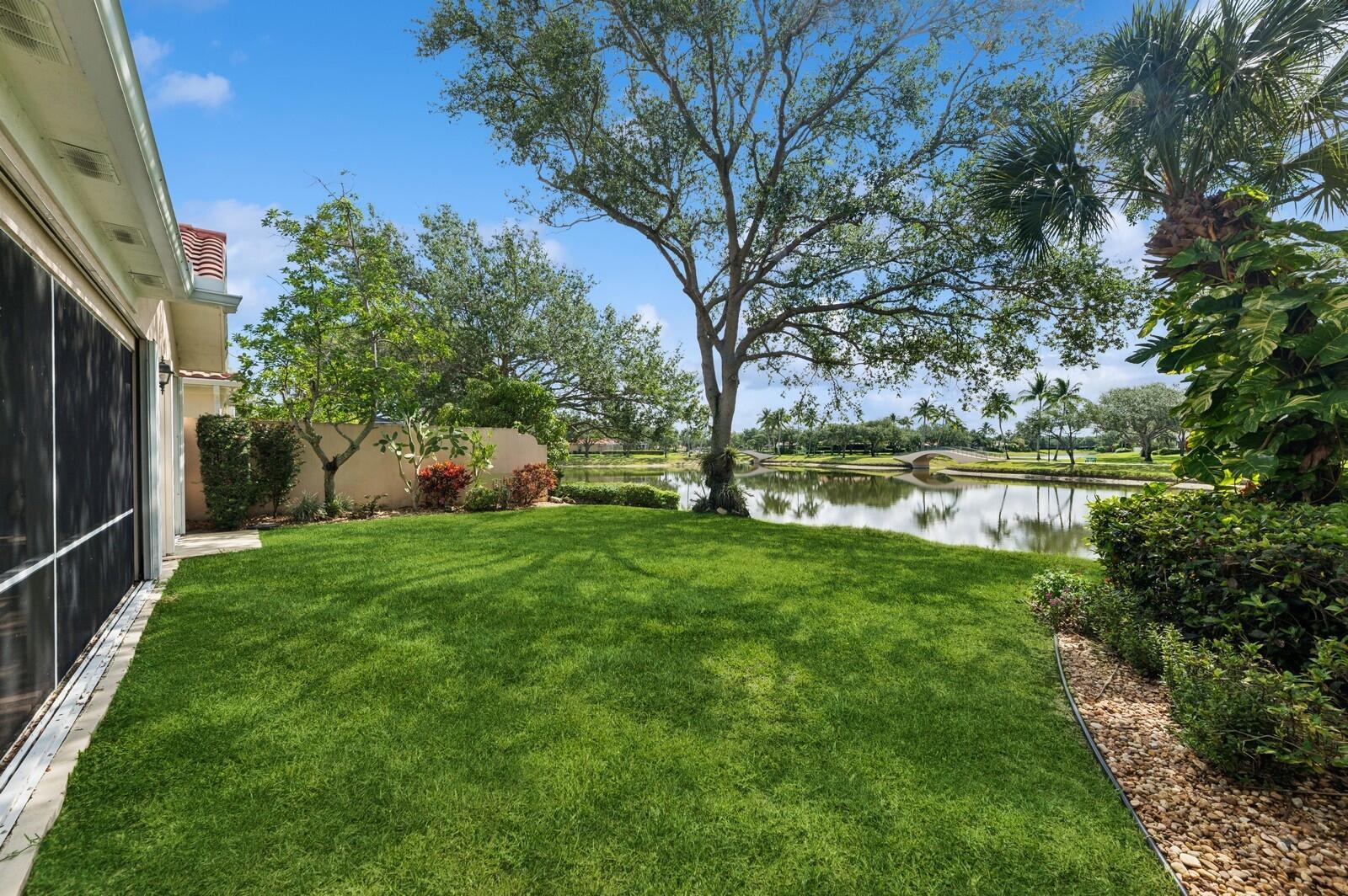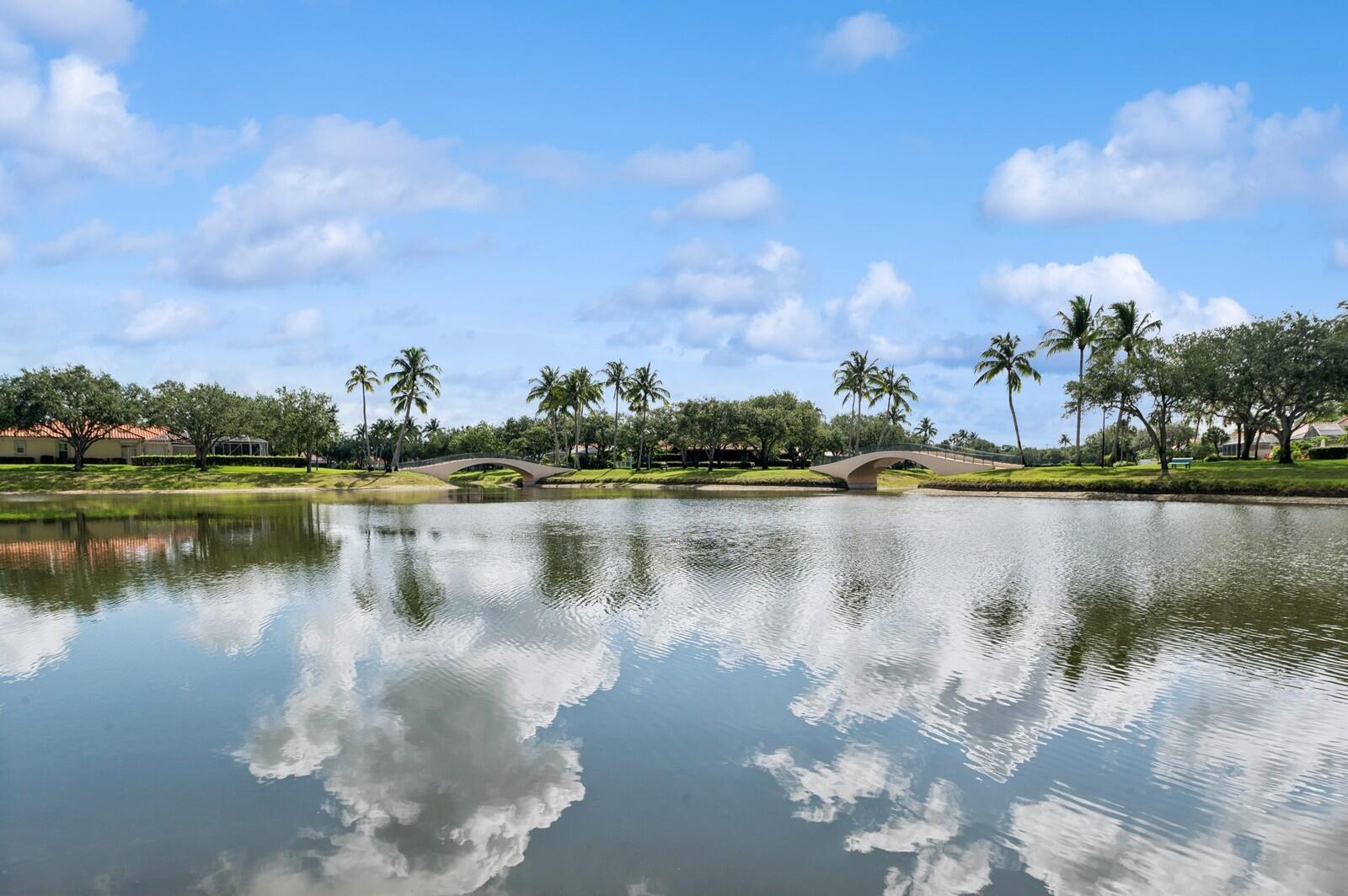 Panoramic Views! Are the words that can only describe the Views, of Two Charming Bridges & 3 Lakes, from this Extra Wide Lakefront Residence with even more Views of the Pedestrian Walkways & Green Spaces! Just One of the Many Reasons why this is a One-of-a Kind Opportunity! This Pristine & Recently Updated Oakmont with a (2023) NEW ROOF & GUTTERS! is In the Fantastic 24 Hour Manned Gated Community of Riverwalk! One of the Best Locations in Palm Beach County, 15-20 minutes to Everything including Palm Beach, the Ocean & Airport! The Residence, is Impressive & Commanding, as it's Sited on a Lushly Landscaped, Wide, Lawn & has a Side Loading 2 Car Garage with an Expansive Motor Court that leads to the Architecturally Enhanced Screened Covered Entry with a Paver Floor that opens to the