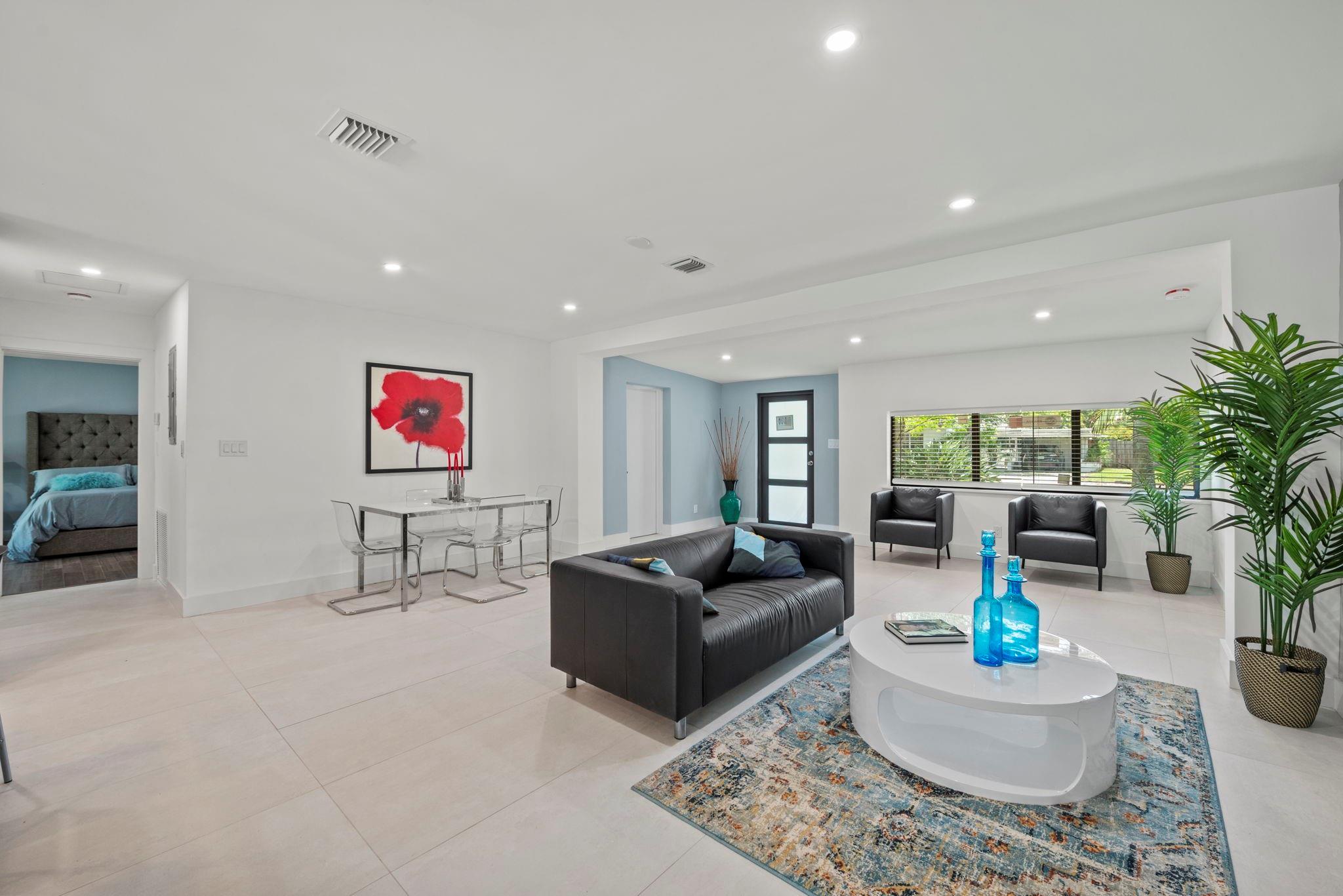 REDUCED AND READY! This stunning 4/4 home is 100% renovated from the roof to the PVC pipes and everything in between. This modern master piece offers tremendous value at $500 psf. It sits on a massive, fenced and private, park like, 1/4 acre lot with awesome pool located away from the structure. A spacious 2456 sq ft under air and a massive 3656 total sq ft which includes a huge covered patio that is ideal for entertaining. The layout has a contemporary flow with the bespoke kitchen featuring Euro cabinets open to the living/dining area. The massive primary br is truly a sumptuous suite with sitting area, walk in closet and designer bath. The 4th bed/bath has a separate entrance and is ideal as in law 1/4's or possible STR. Walk to Wilton Dr, 3 miles to the beach and near downtown.