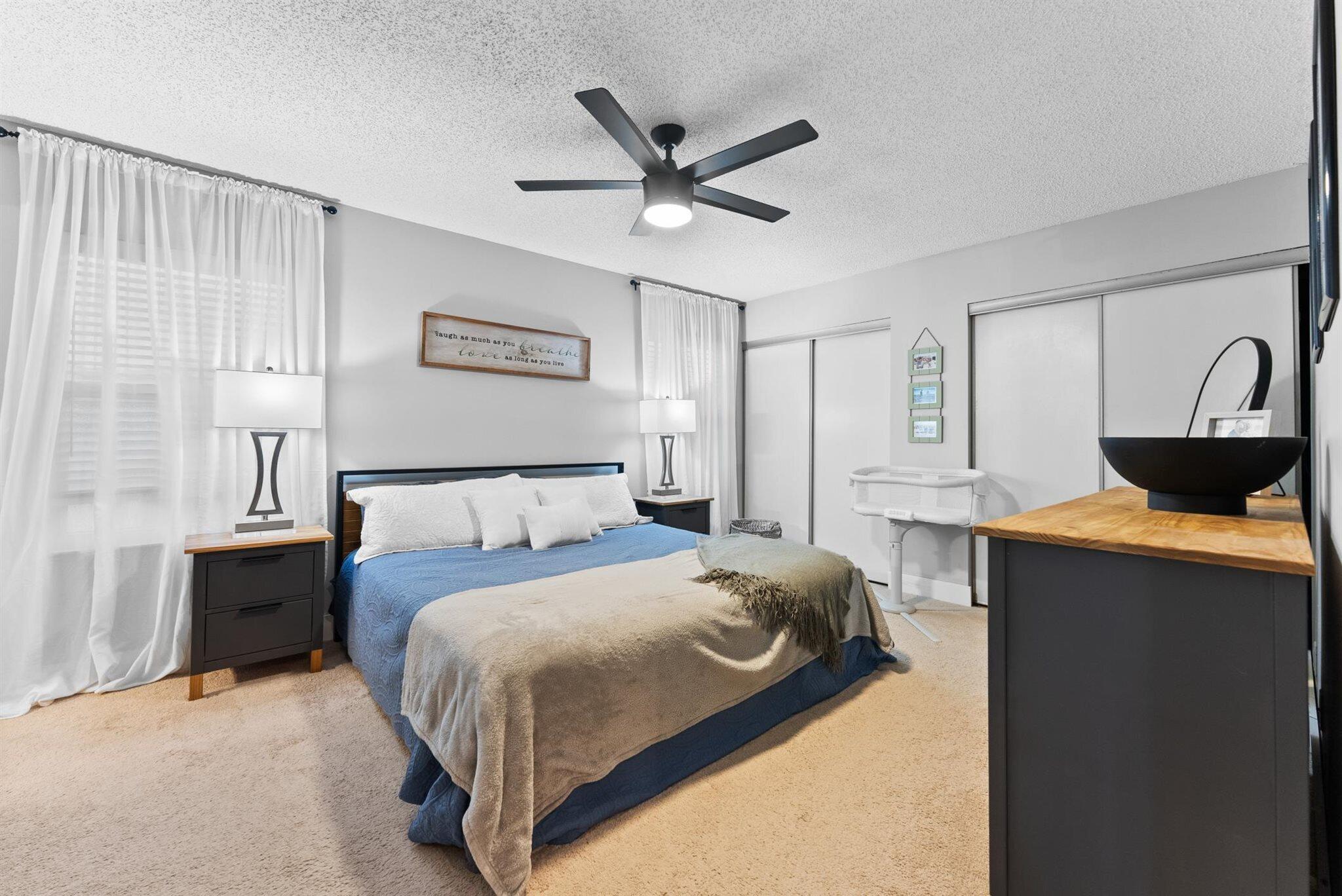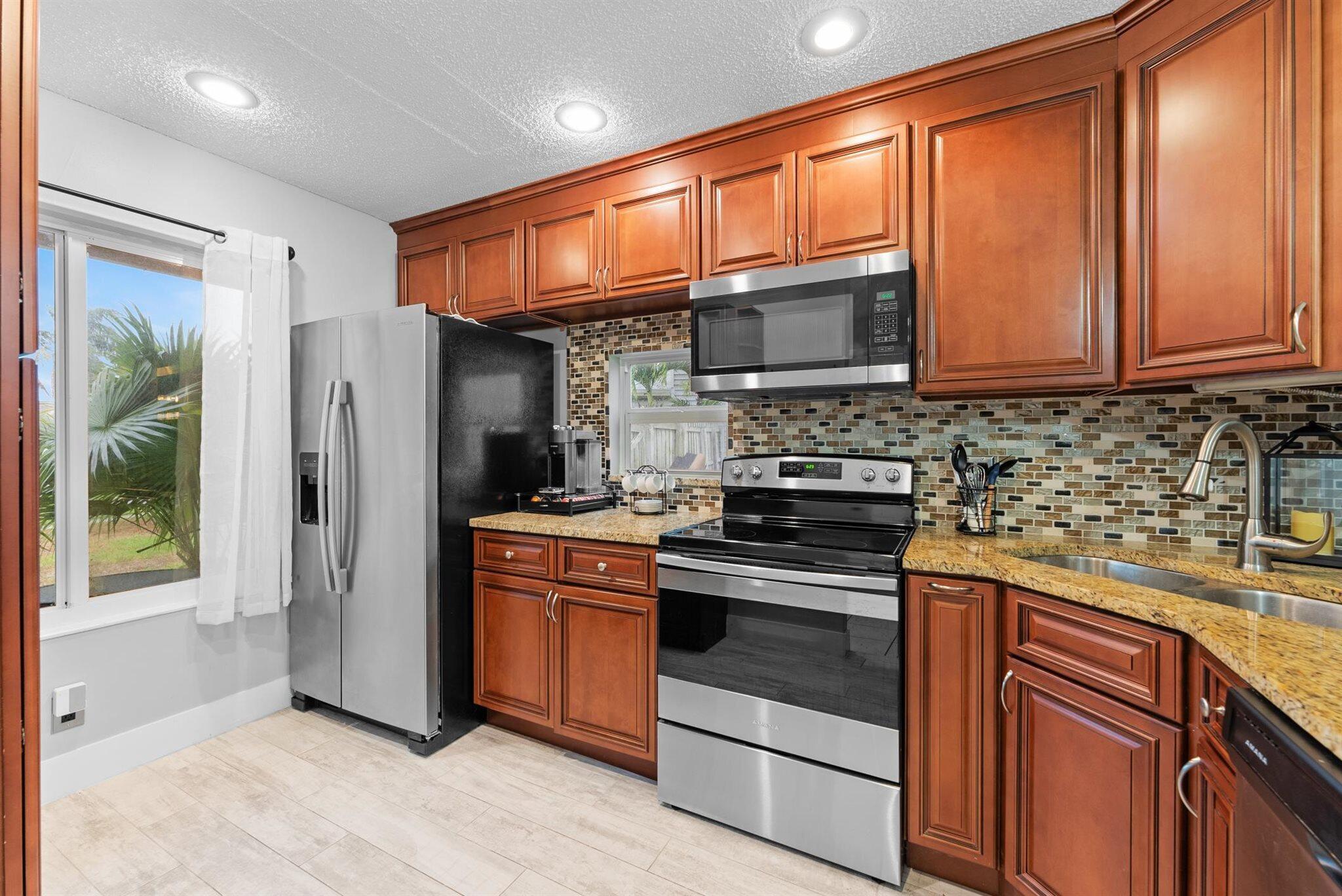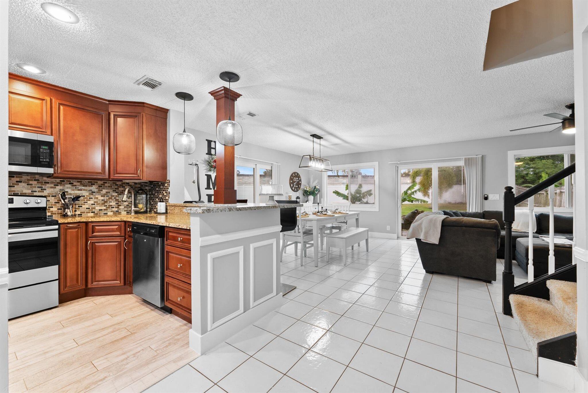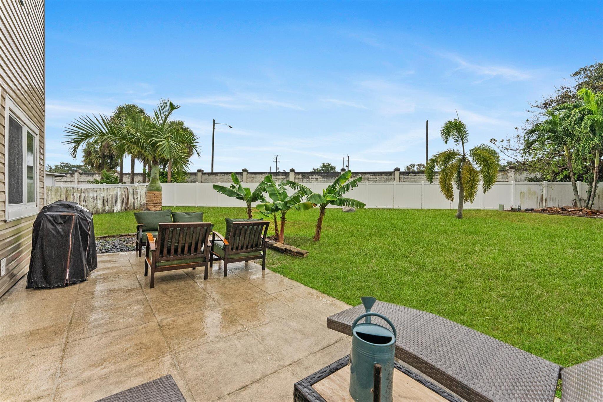 Step into a home where modern charm meets everyday comfort in the heart of West Palm Beach's Palm Club West Village II. This 3-bedroom, 2.5-bath, two-story residence is a canvas of light and style, ready to become your personal haven. The kitchen is the heart of this home, a space that's as functional as it is inviting. Warm wood cabinets stretch to the ceiling, offering ample storage with granite countertops, tile backsplash and stainless-steel appliances. The extended bar is perfect for morning coffee chats. Updated half-bath on the first level adds convenience for guests, and an inside laundry room keeps life organized. Impact glass windows and sliding doors frame a view of the spacious fenced yard and private patio.