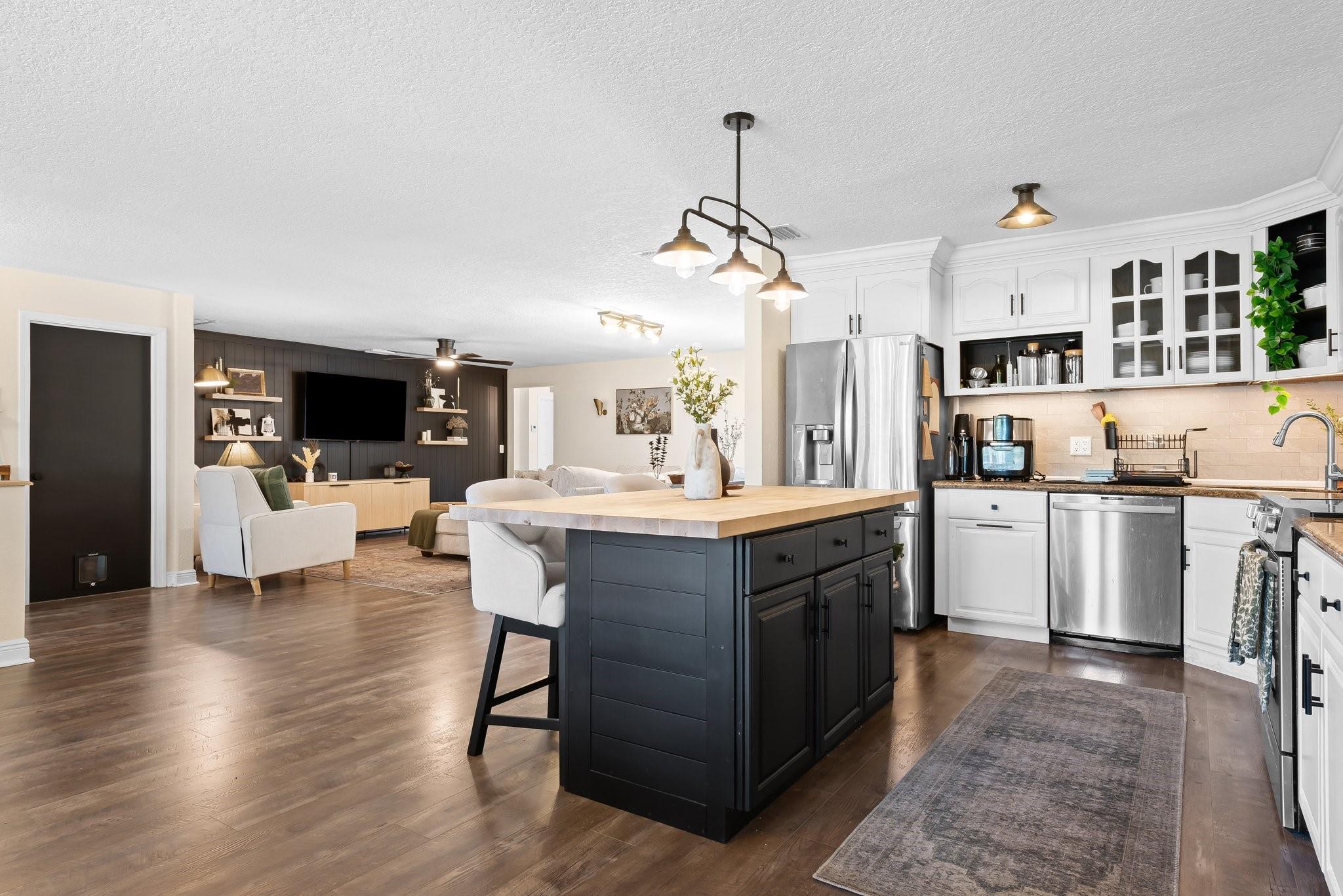 4 BEDROOM 2 BATH SPACIOUS HOME WITH OPEN FLOOR CONCEPT, GREAT FOR ENTERTAINING, , NO HOA, LOT SIZE OVER 14,000 SQ FT. ROOM FOR POOL, RV OR BOAT PARKING. IMPACT WINDOWS & DOORS. PRIMARY BEDROOM WITH WALK-IN CLOSET. UPDATED KITCHEN WITH GRANITE COUNTER TOPS & BUTCHER BLOCK ISLAND. LAMINATE WOOD FLOORING THROUGHOUT LIVING/DINING AREAS PRIMARY BEDROOM AND DEN. UPDATED BATHROOMS. ROOF AND A/C NEW IN 2023. NEW STOVE MICROWAVE AND DISHWASHER 2022. NEW CEILING FANS AND NEW LIGHTING THROUGHOUT.