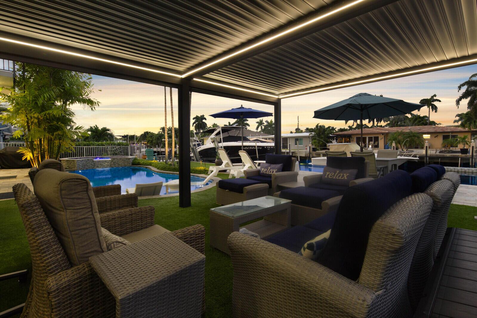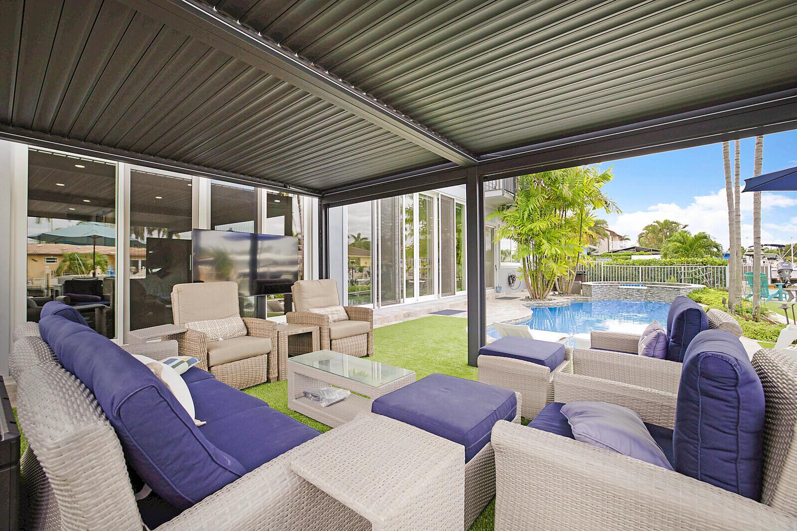 Welcome to luxury waterfront living reimagined--this custom-designed 5-bedroom, 4.5-bath home in Pompano Beach offers the ultimate blend of style, technology, and South Florida lifestyle. Tucked away in one of the area's best-kept secret waterfront communities, this residence is built for boaters and dreamers alike. With direct ocean access, a 10,000 lb boat lift, new seawall cap, and a fully equipped concrete dock (power + water pedestals), your next adventure is just steps away. (Note: 2 fixed bridges with 14' clearance.) Inside, discover a bright, open layout with elegant finishes, soaring ceilings, and a 500-sq-ft flex room--perfect for a media room, home office, gym, or creative space. The chef's kitchen is a showstopper with high-end JennAir appliances, gas cooking, dual sinks, pot