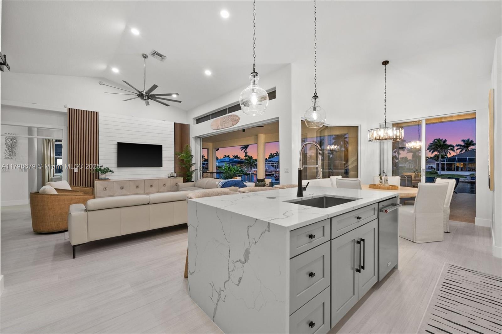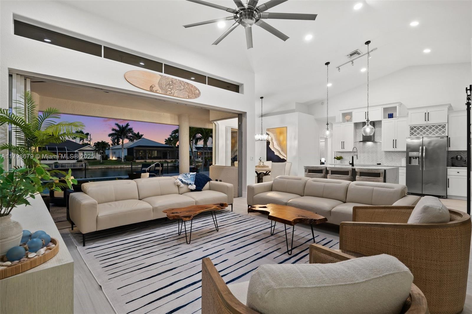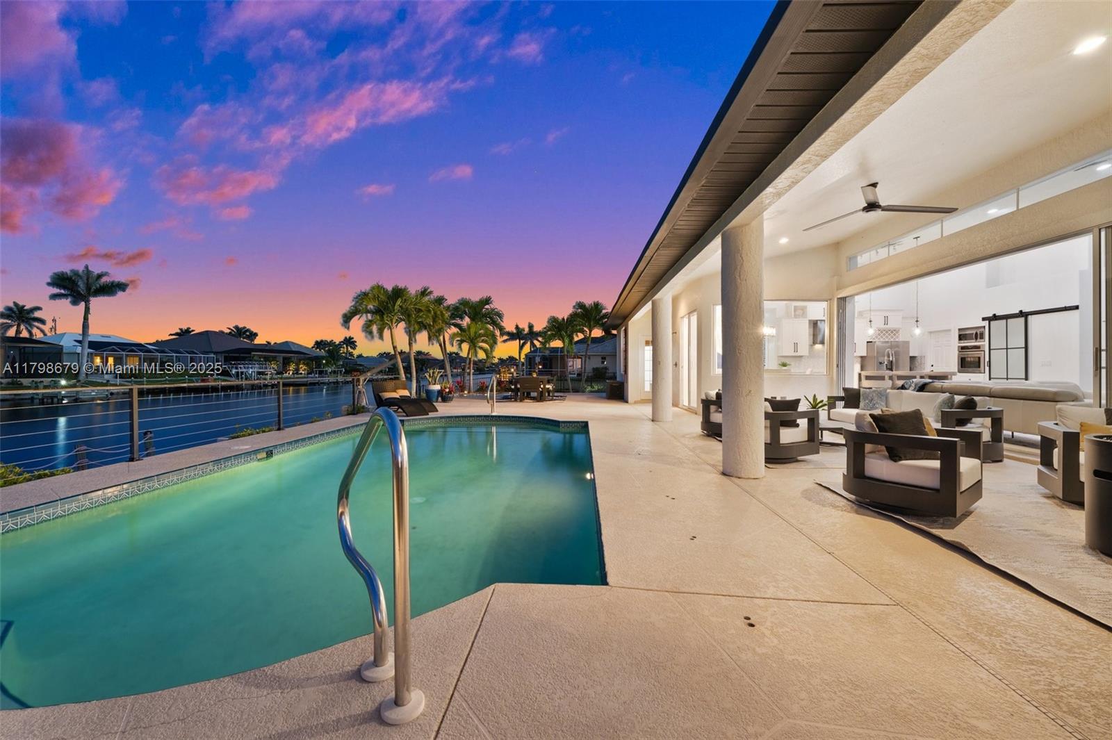 Live the ultimate SW Florida lifestyle in this updated FURNISHED Gulf-access pool home near Cape Harbour. Situated on a fenced triple lot with 120 FEET OF GULF ACCESS WATERFRONT, this 3-bed, 3-bath home with an OFFICE offers wide canal views and a spacious open layout. Features include high ceilings, pocket sliders, new porcelain tile flooring, and a modern, coastal kitchen with quartz counters, stainless appliances, breakfast bar, and new backsplash. The primary suite has lanai access and a remodeled bath with soaking tub and walk-in shower. Outside, enjoy a large lanai, new outdoor kitchen, and expansive pool deck. Recent upgrades: Plumbing repipe, electrical panel, water heater, baths, appliances, and landscaping. NO FLOODING IN ANY STORMS. AC 2025