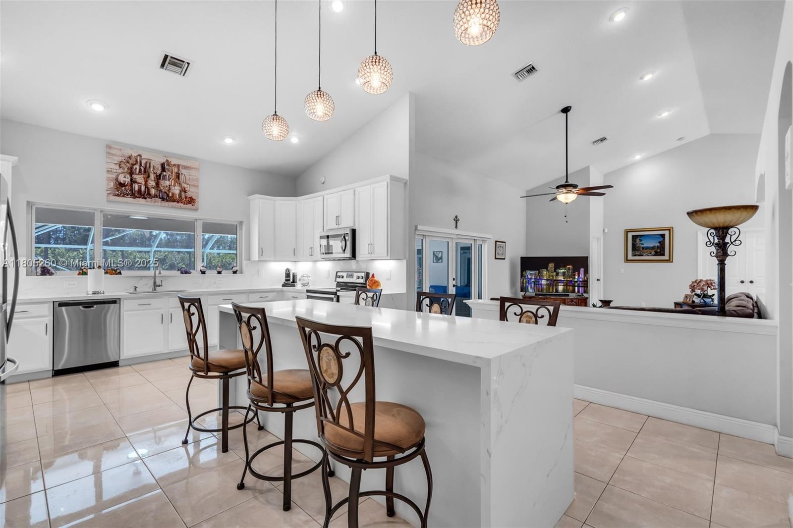 Experience the equestrian lifestyle on 5 pristine acres in Caloosa. This elegant 5-bed, 3-bath CBS home, built in 2007, boasts an open split floor plan, a gourmet kitchen with quartz countertops, and stunning views of the screened saltwater pool, added in 2019. Enjoy a 3-car garage, two storage sheds, and a fully fenced yard. Modern upgrades include a 24KW Generac propane generator, reverse osmosis water system, and impact windows and doors installed in 2022. Discover luxury, tranquility, and space all in one extraordinary property. Perfectly designed for both entertaining and everyday living, this estate captures the essence of rural charm with modern convenience.