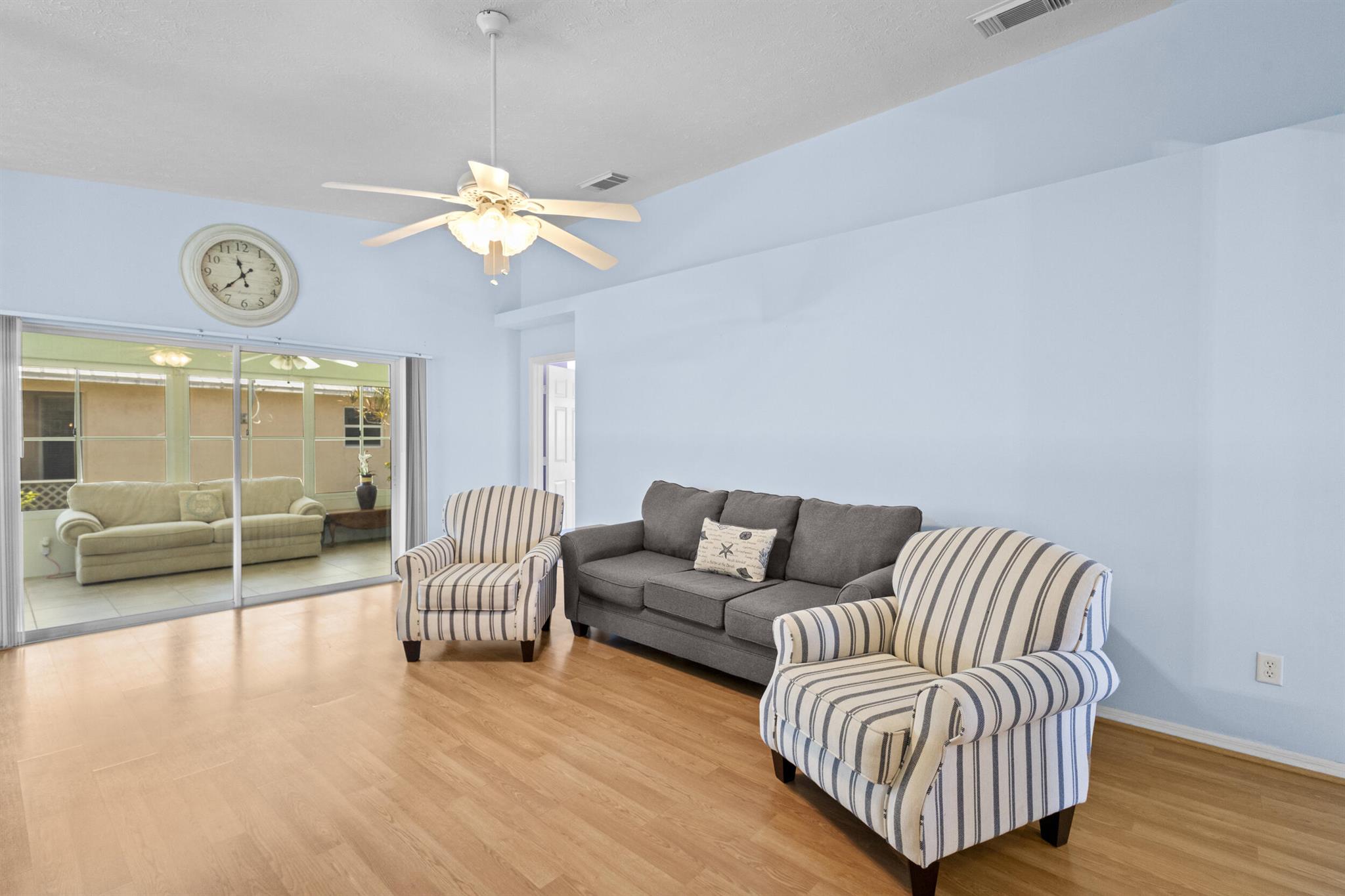 Welcome to the wonderful community of Spanish Lakes! This lovely, move-in ready home offers the perfect blend of comfort and Florida charm. Inside, you'll find three bedrooms and 2 bathrooms, along with a convenient two-car garage. The highlight is an amazing Florida room, ideal for relaxing and entertaining guests.This home also features practical updates, including a new AC unit installed in 2024 and a newer hot water heater. It's also available partially furnished for an easy transition. For added peace of mind, accordion storm shutters are installed throughout. This property is on a land lease within an active community, offering resort-like amenities in a beautiful and quiet setting. The monthly lot rent is an attractive $595.86. Spanish Lakes boasts a fantastic location, close to a