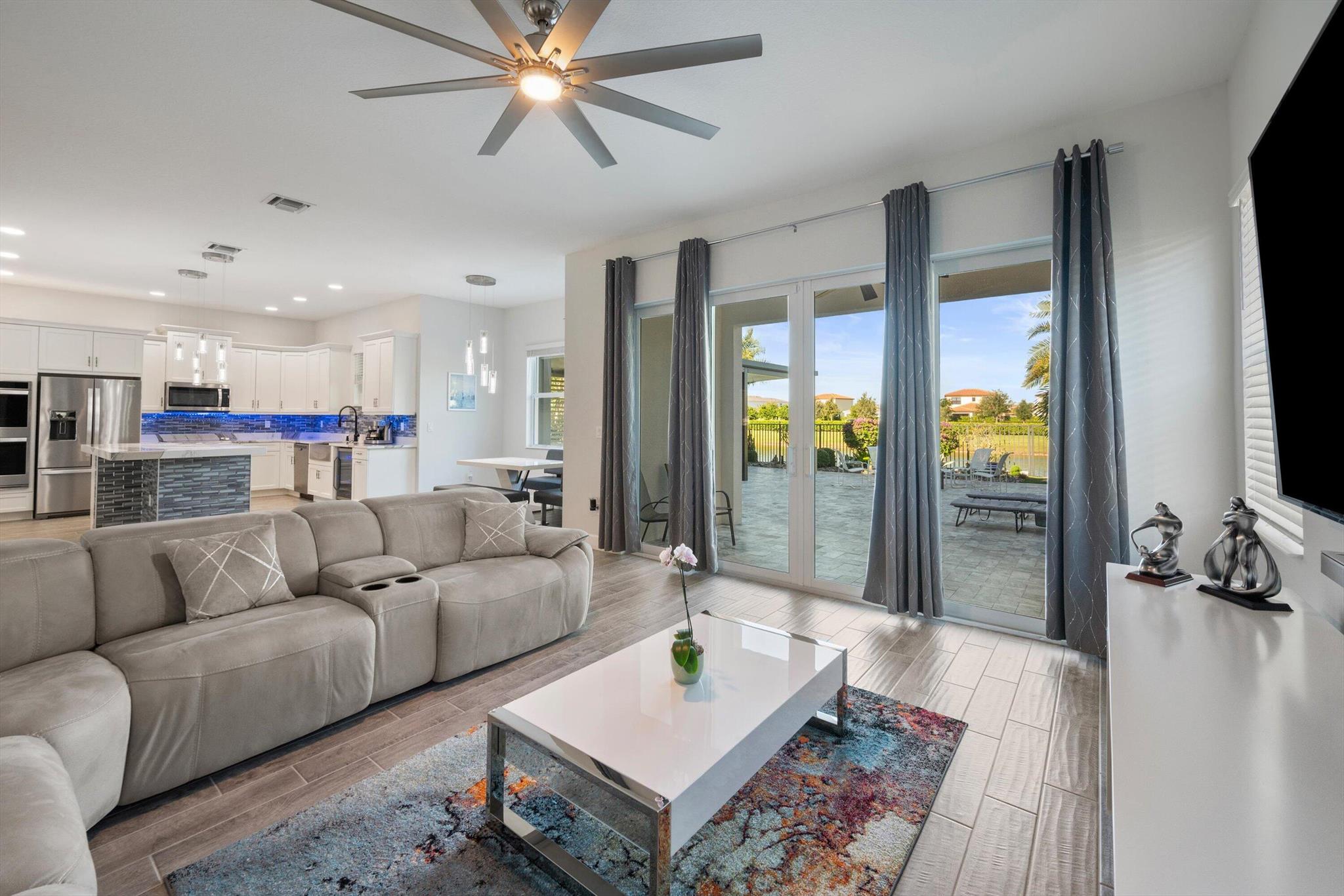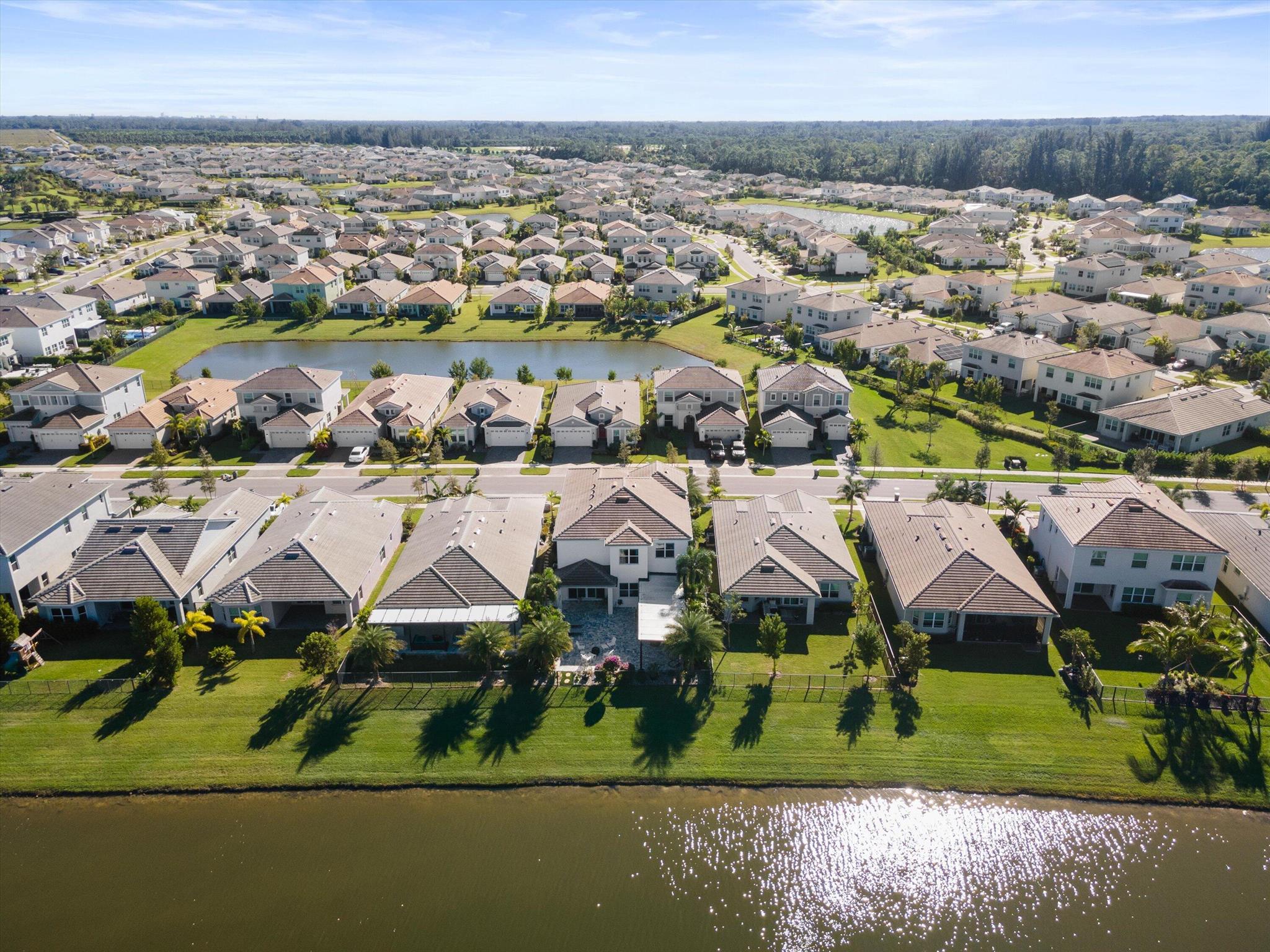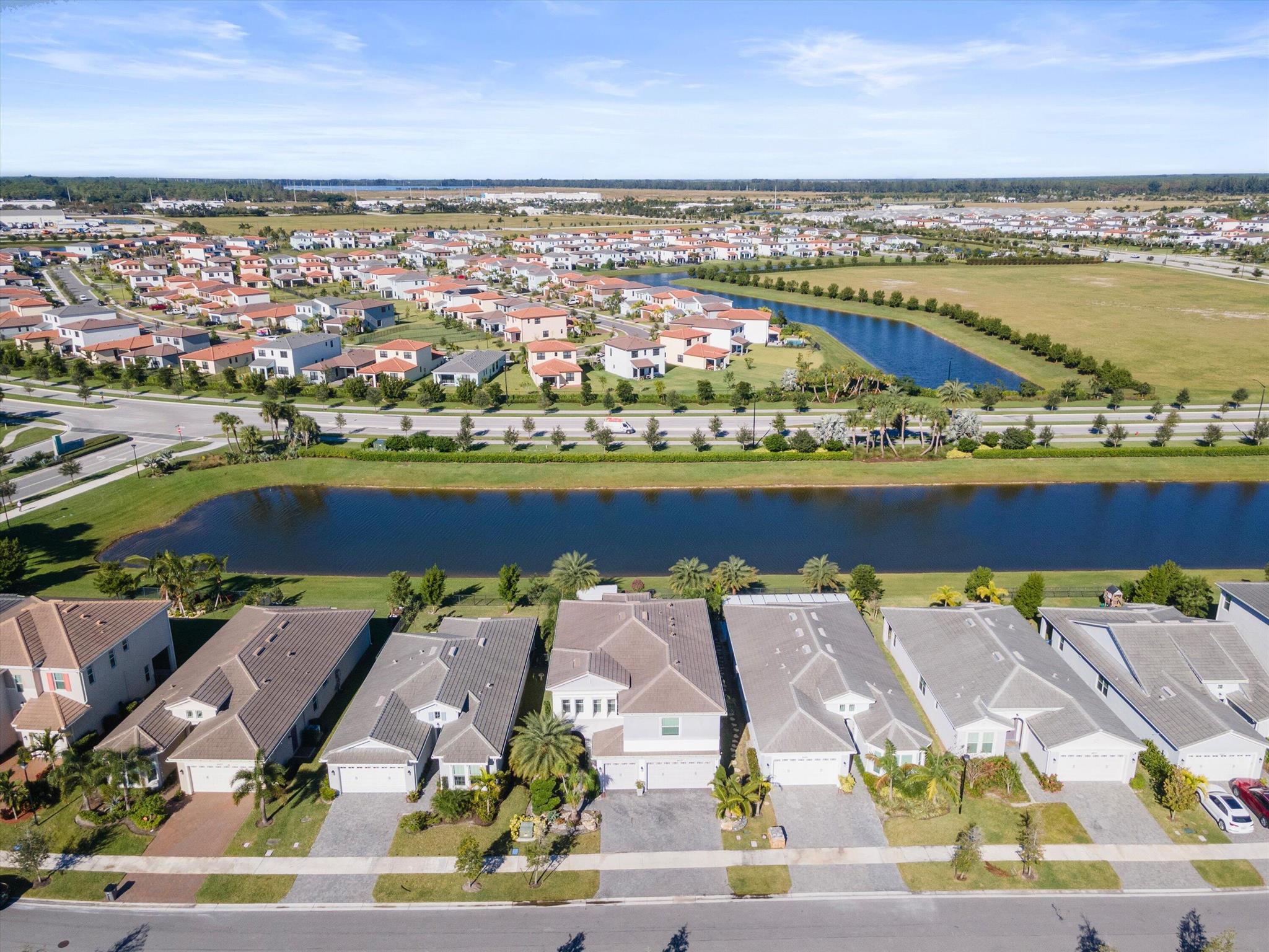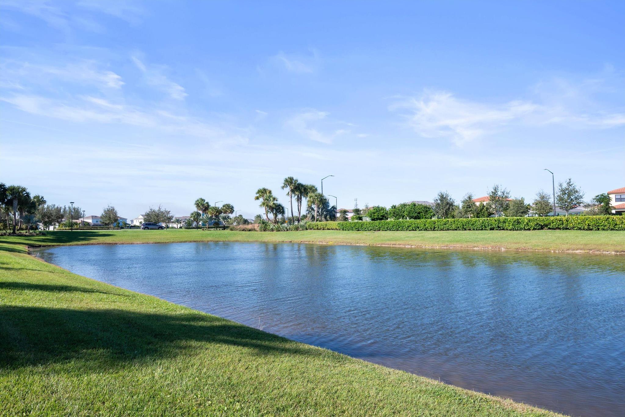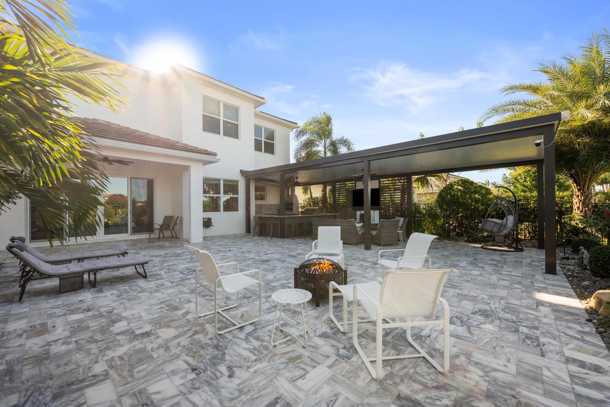 Welcome to this meticulously designed 5-bedroom, 4-bathroom, 3-car garage home located in the highly sought-after community of The Groves at Westlake, offering breathtaking lake views. This impressive Laurel Grand model boasts an open floor plan with soaring high ceilings, creating a spacious and inviting atmosphere throughout. The heart of the home features top-of-the-line stainless steel appliances, sleek quartz countertops, and plenty of storage for the culinary enthusiast. Enjoy peace of mind with premium impact-resistant windows and doors, ensuring safety and energy efficiency. Step outside to your private oasis, featuring a pergola, marble pavers, a custom outdoor kitchen and a large TV - perfect for entertaining or relaxing by the lake. Both front and back yards have beenbeauti