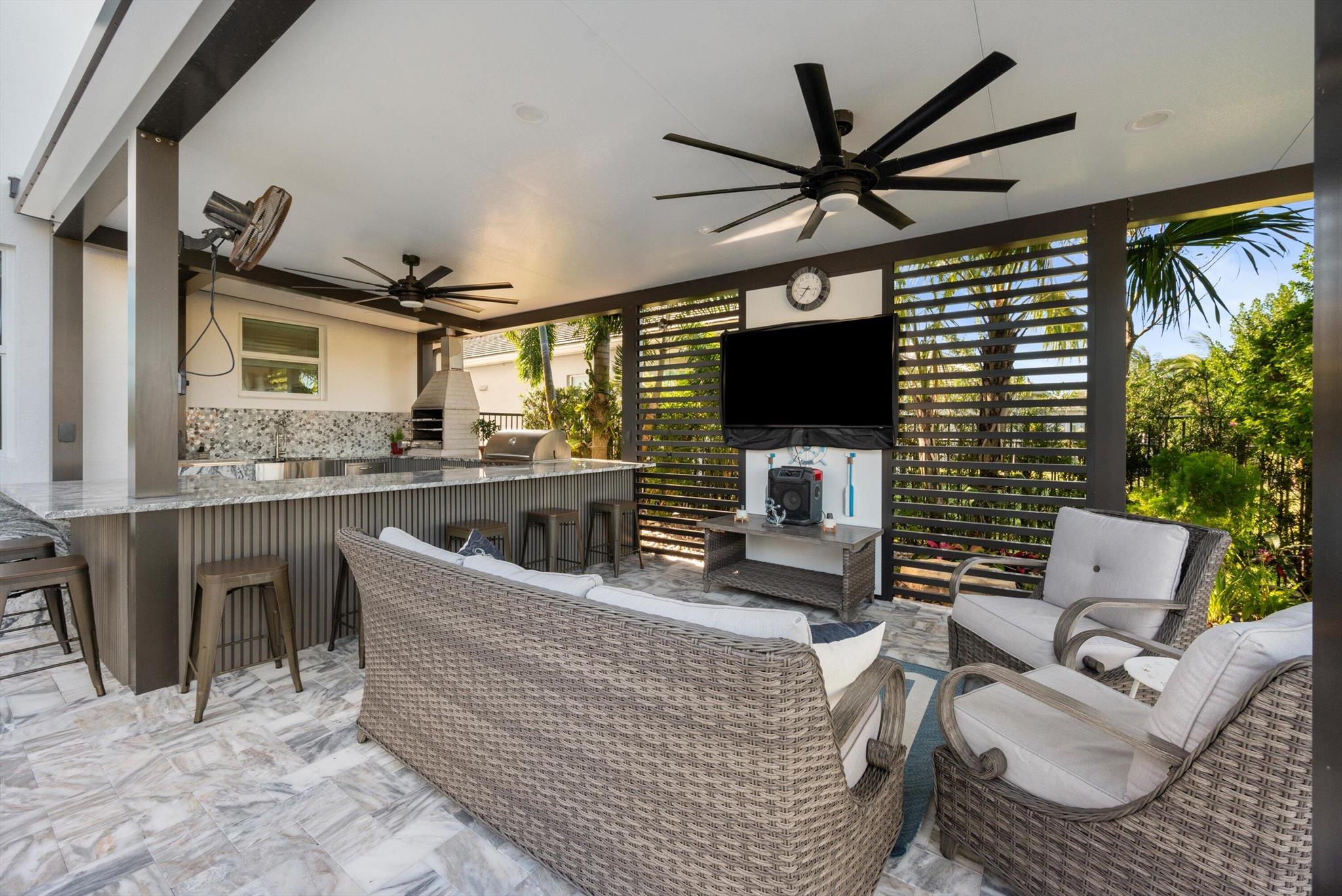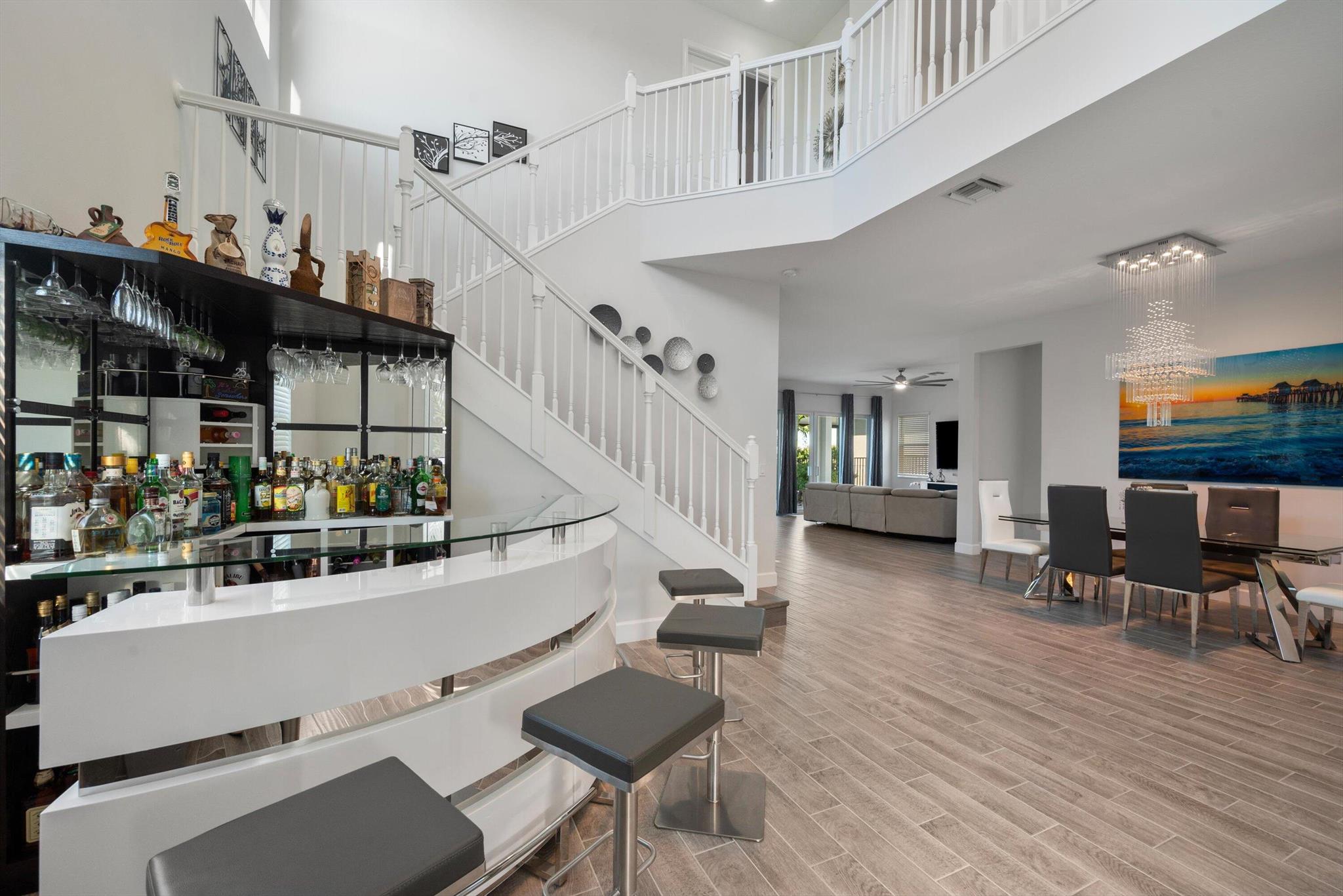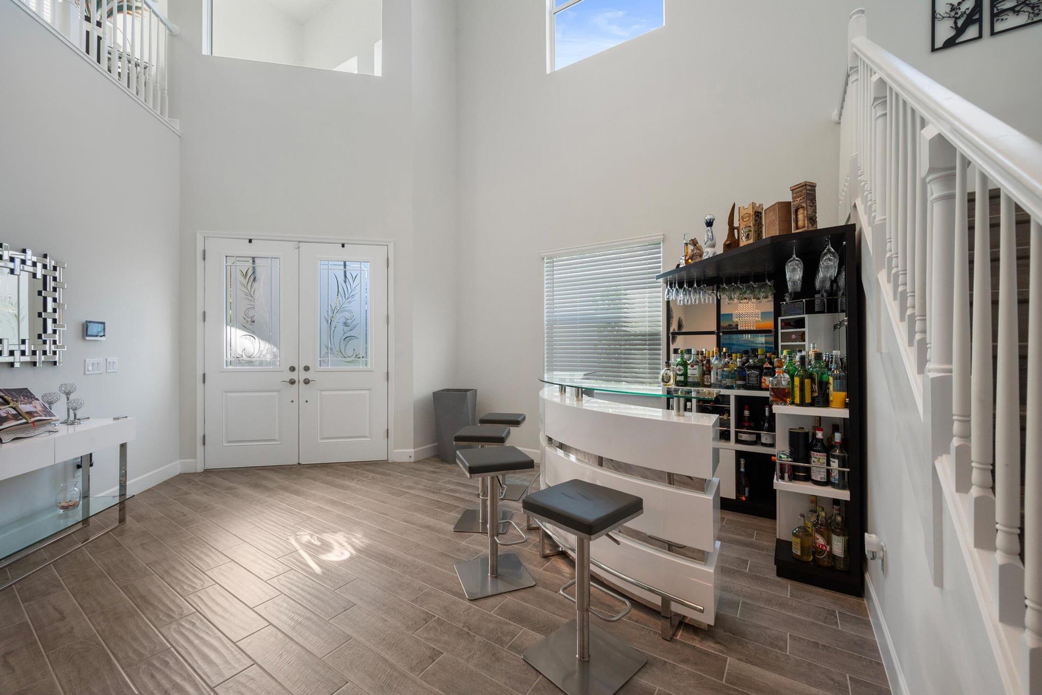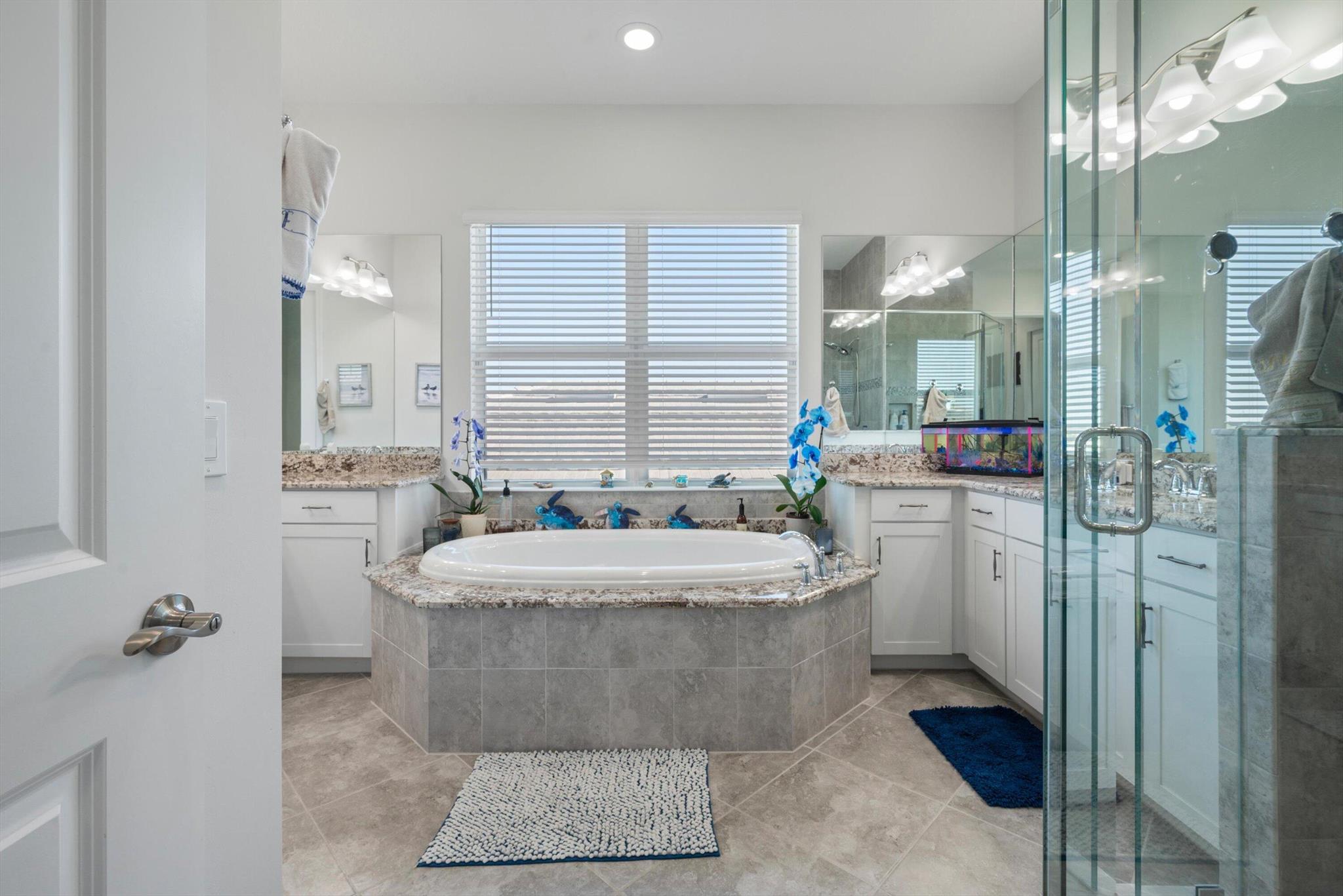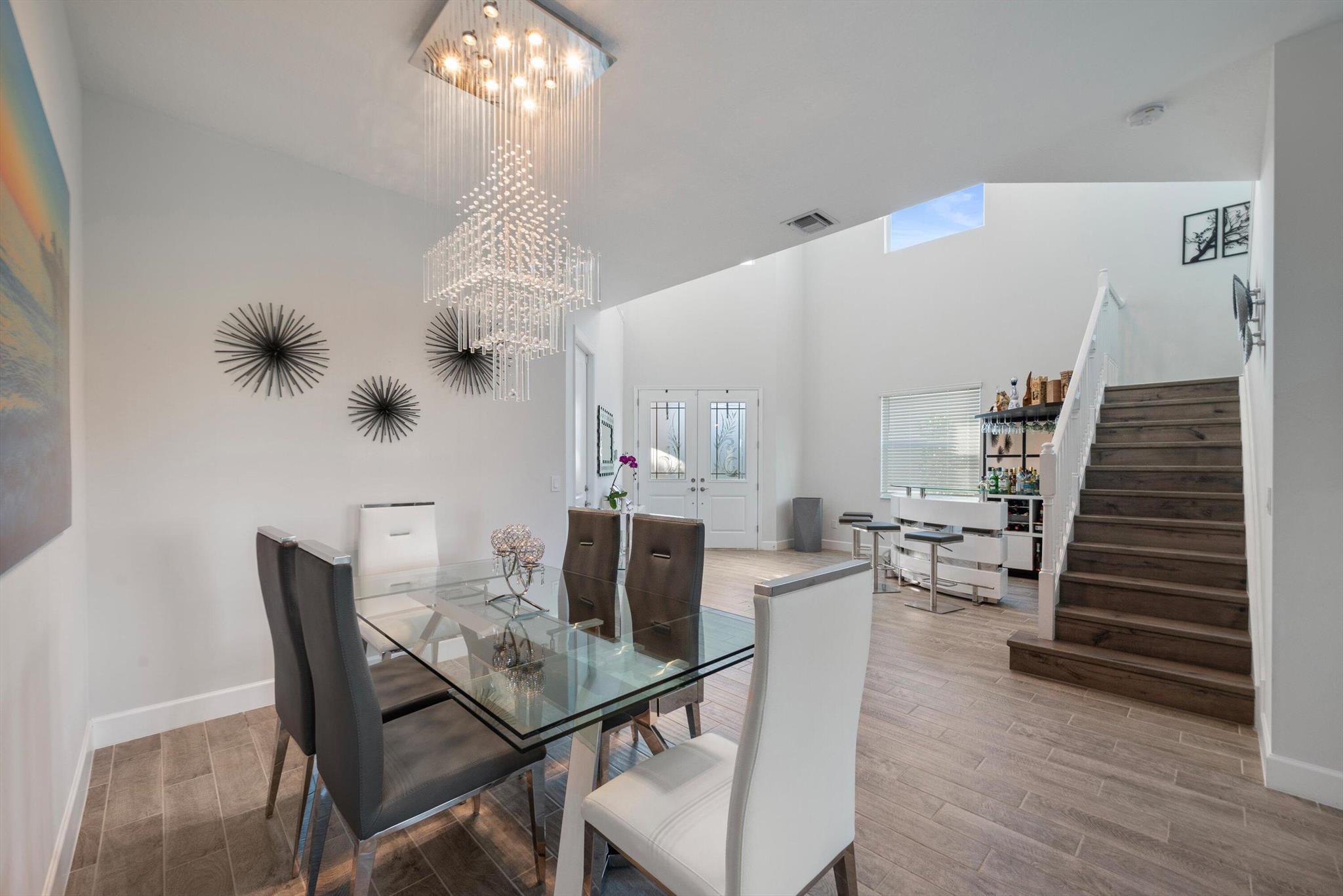 Welcome to this meticulously designed 5-bedroom, 4-bathroom, 3-car garage home located in the highly sought-after community of The Groves at Westlake, offering breathtaking lake views. This impressive Laurel Grand model boasts an open floor plan with soaring high ceilings, creating a spacious and inviting atmosphere throughout. The heart of the home features top-of-the-line stainless steel appliances, sleek quartz countertops, and plenty of storage for the culinary enthusiast. Enjoy peace of mind with premium impact-resistant windows and doors, ensuring safety and energy efficiency. Step outside to your private oasis, featuring a pergola, marble pavers, a custom outdoor kitchen and a large TV - perfect for entertaining or relaxing by the lake. Both front and back yards have beenbeauti