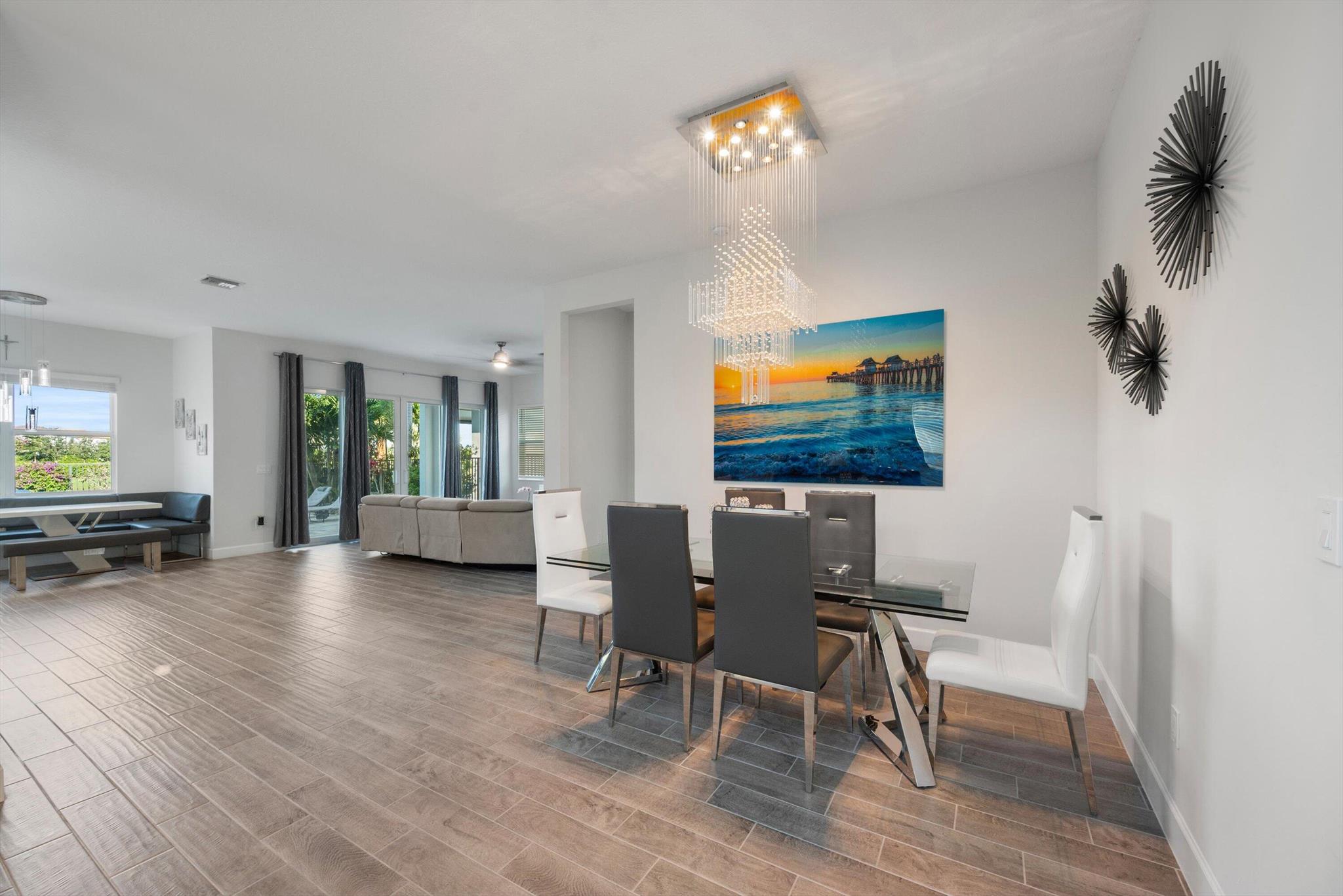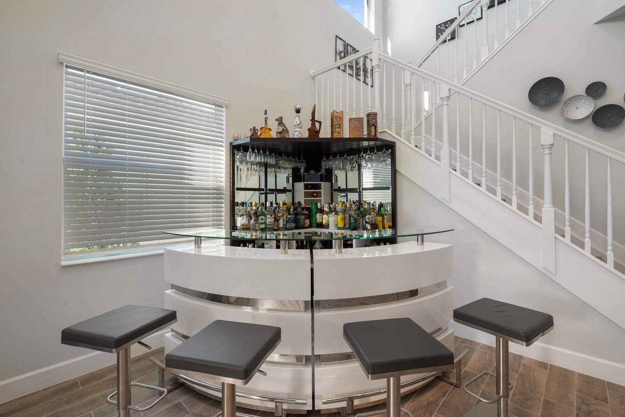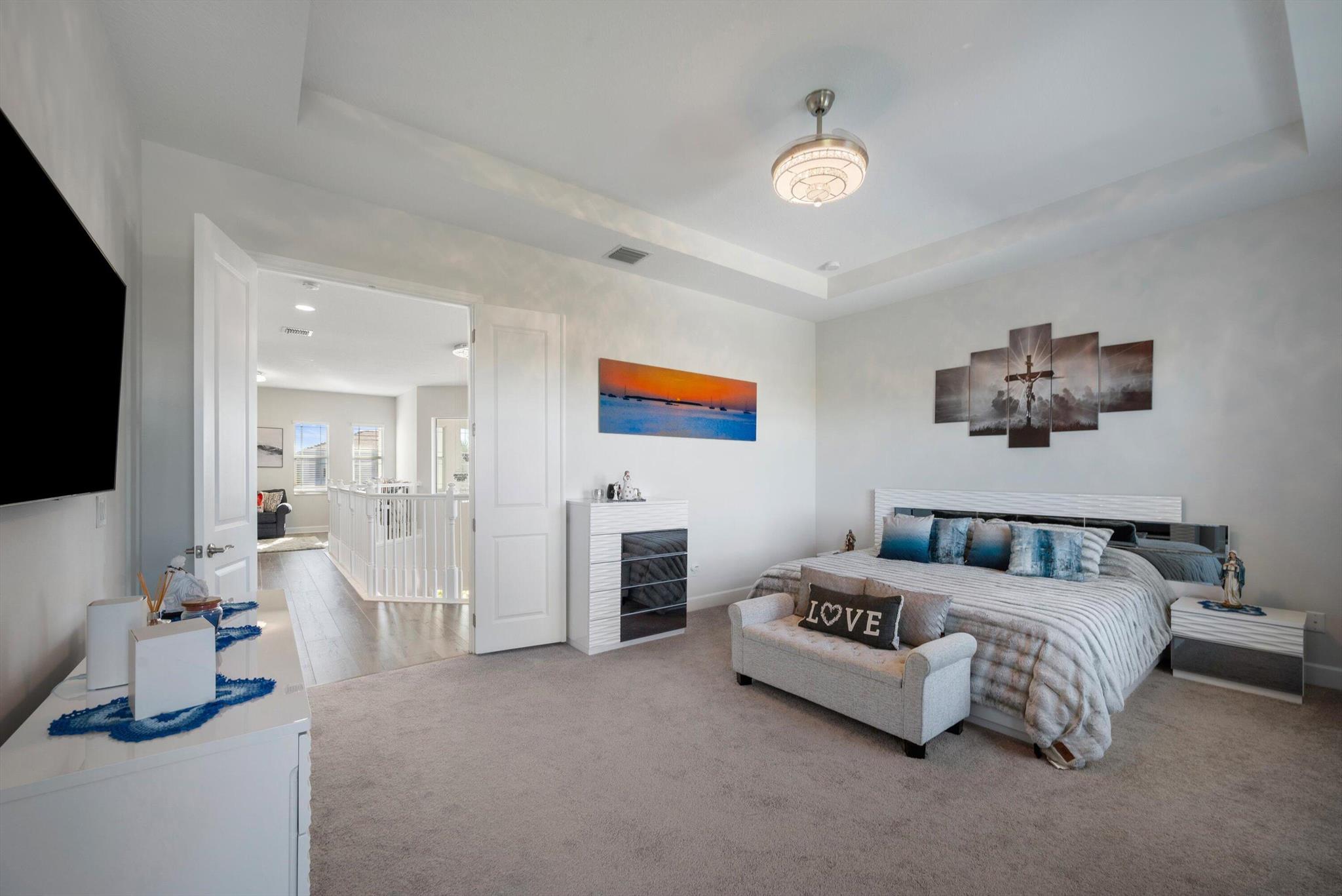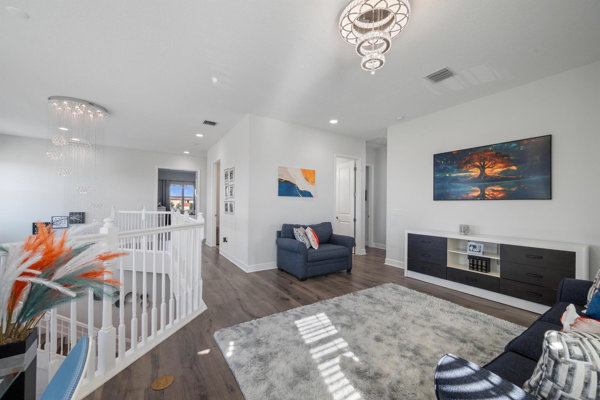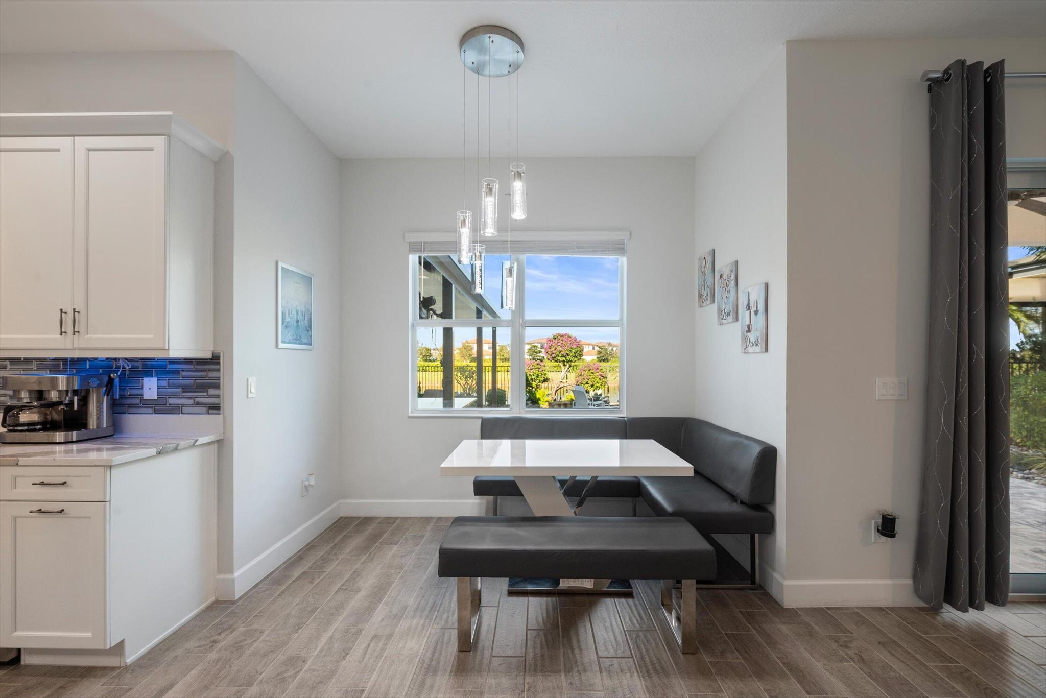 Welcome to this meticulously designed 5-bedroom, 4-bathroom, 3-car garage home located in the highly sought-after community of The Groves at Westlake, offering breathtaking lake views. This impressive Laurel Grand model boasts an open floor plan with soaring high ceilings, creating a spacious and inviting atmosphere throughout. The heart of the home features top-of-the-line stainless steel appliances, sleek quartz countertops, and plenty of storage for the culinary enthusiast. Enjoy peace of mind with premium impact-resistant windows and doors, ensuring safety and energy efficiency. Step outside to your private oasis, featuring a pergola, marble pavers, a custom outdoor kitchen and a large TV - perfect for entertaining or relaxing by the lake. Both front and back yards have beenbeauti