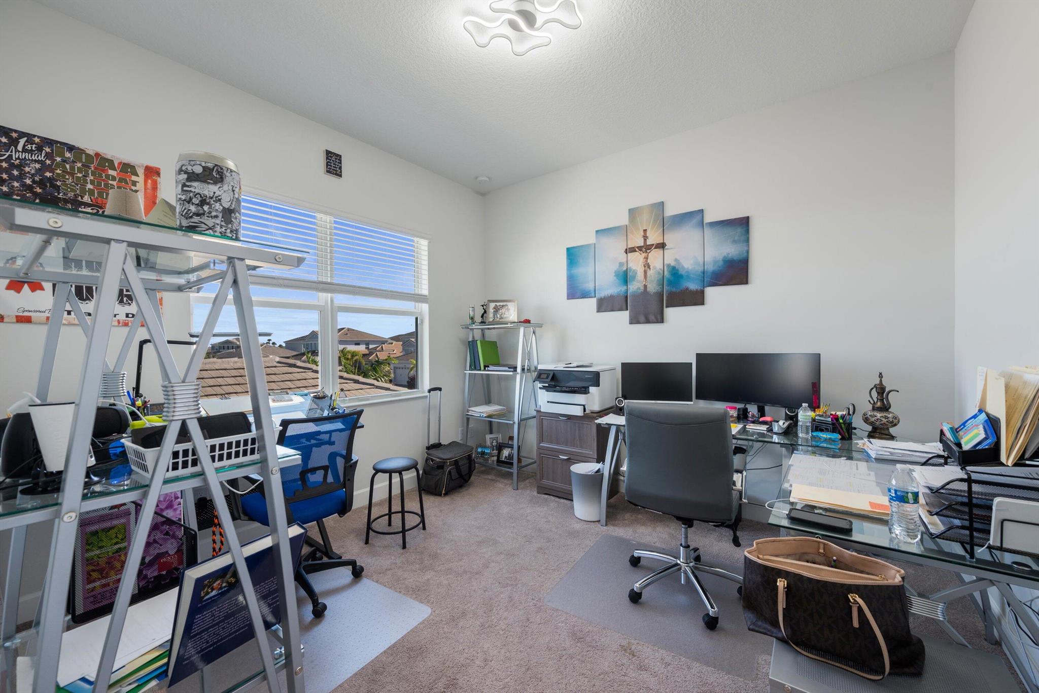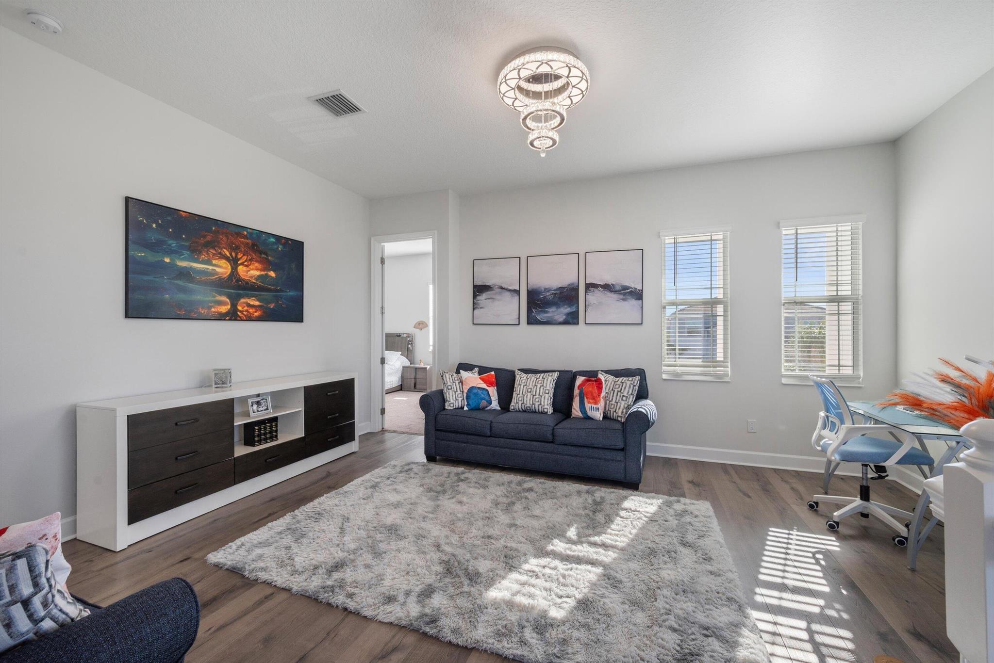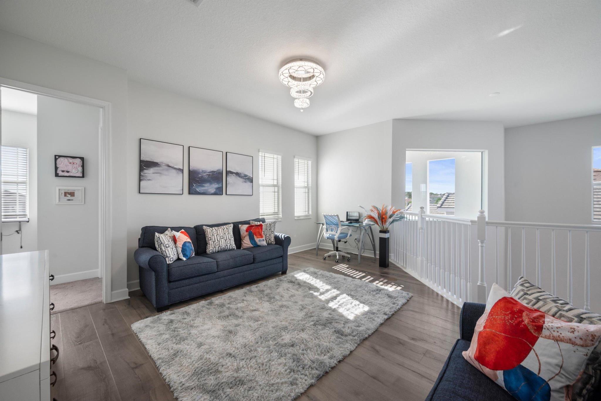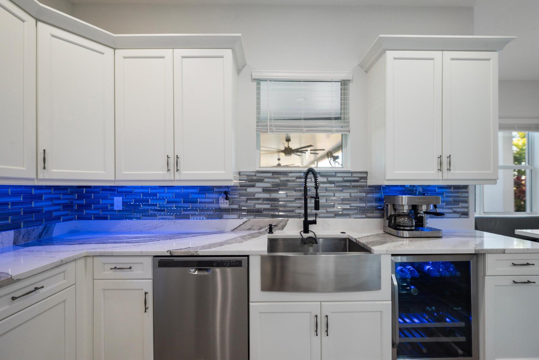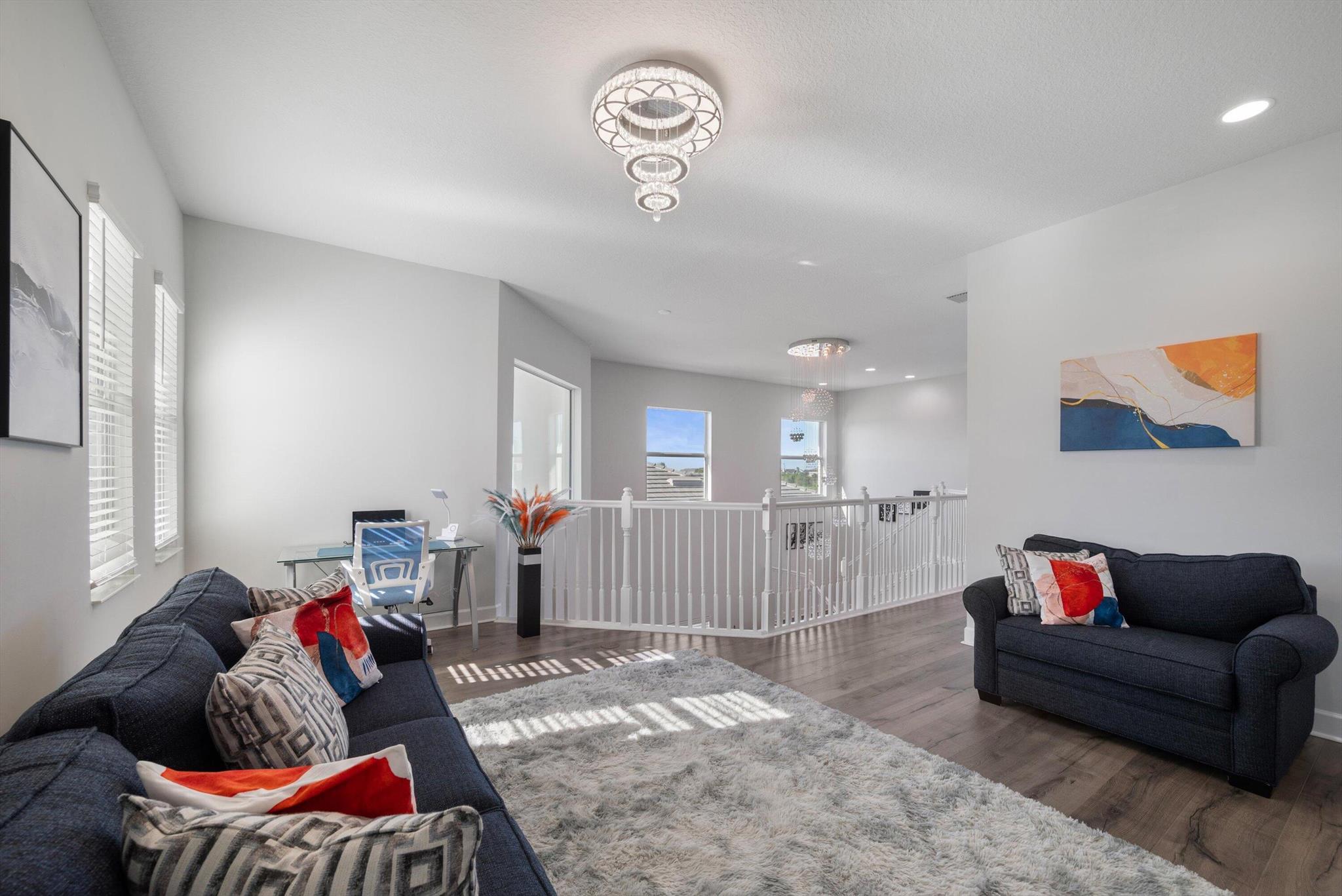 Welcome to this meticulously designed 5-bedroom, 4-bathroom, 3-car garage home located in the highly sought-after community of The Groves at Westlake, offering breathtaking lake views. This impressive Laurel Grand model boasts an open floor plan with soaring high ceilings, creating a spacious and inviting atmosphere throughout. The heart of the home features top-of-the-line stainless steel appliances, sleek quartz countertops, and plenty of storage for the culinary enthusiast. Enjoy peace of mind with premium impact-resistant windows and doors, ensuring safety and energy efficiency. Step outside to your private oasis, featuring a pergola, marble pavers, a custom outdoor kitchen and a large TV - perfect for entertaining or relaxing by the lake. Both front and back yards have beenbeauti