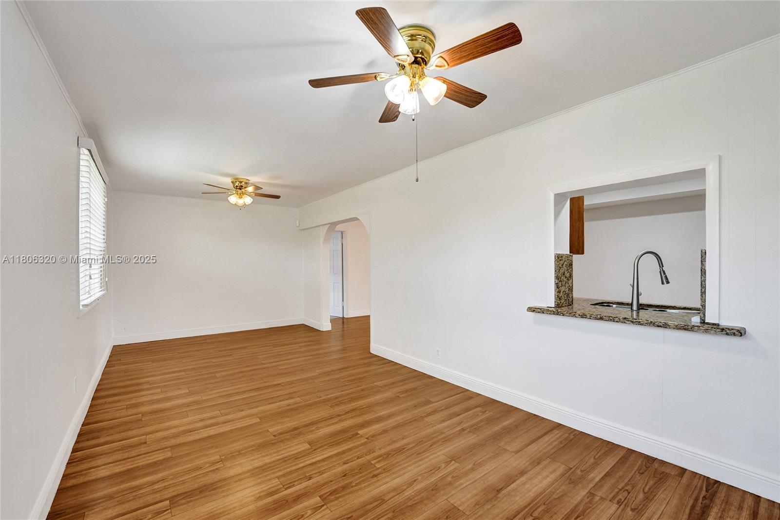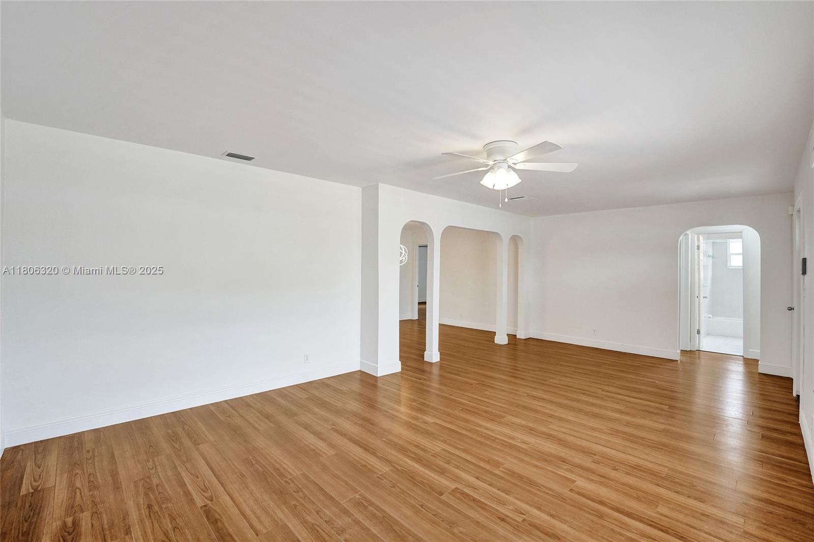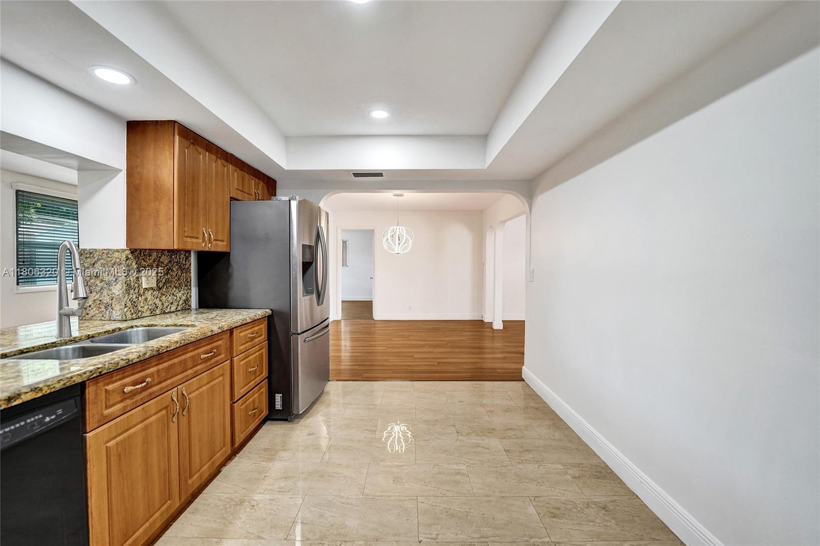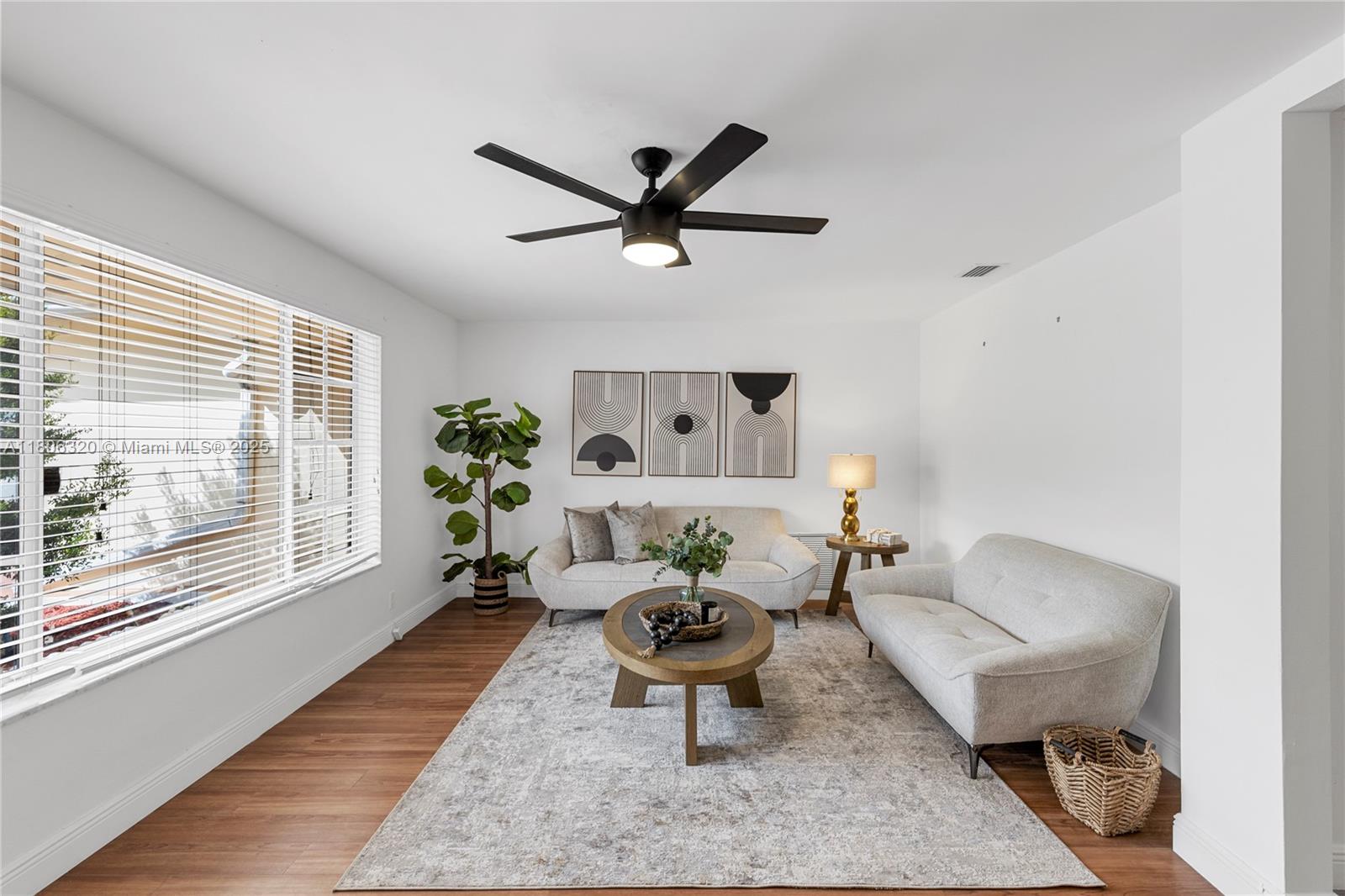 Beautifully maintained one-story home nestled on an expansive lot, complete with a circular driveway offering ample parking. Step inside to find a spacious living & dining area that flows seamlessly into an oversized den/TV room—perfect for entertaining or relaxing with family. The updated eat-in kitchen boasts stunning granite countertops, designer cabinetry with glass inserts, and plenty of room for gatherings. Laminate flooring runs throughout the home, creating a warm and cohesive feel. The garage provides a versatile extra space—ideal for a home office, studio, or playroom. Outside, enjoy a generous backyard.Conveniently located near shopping, restaurants, and more, this home is ready for a quick close.