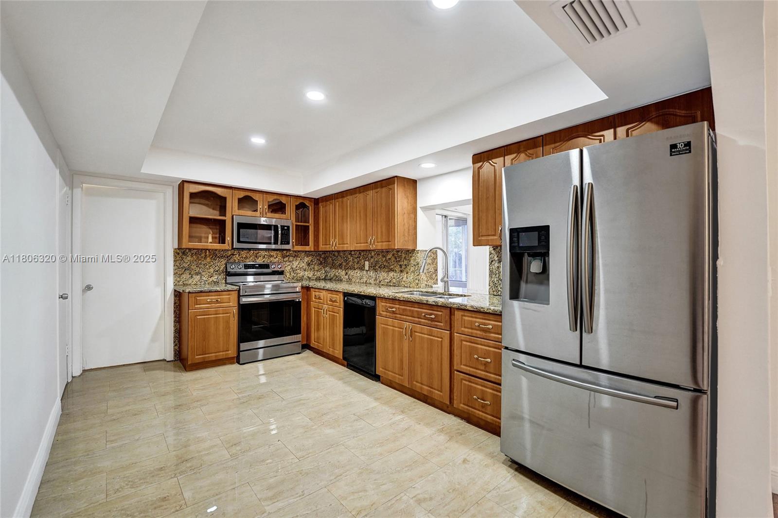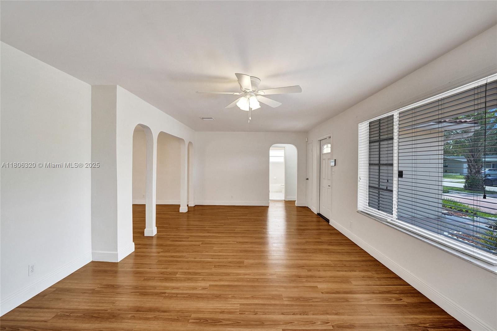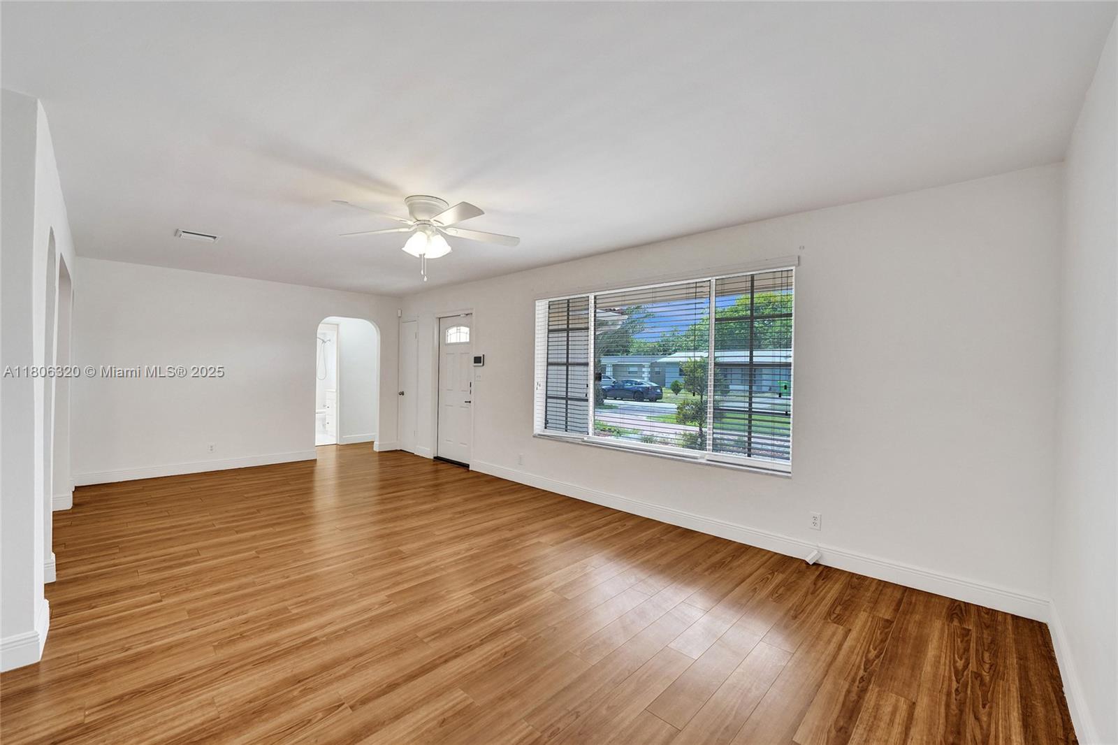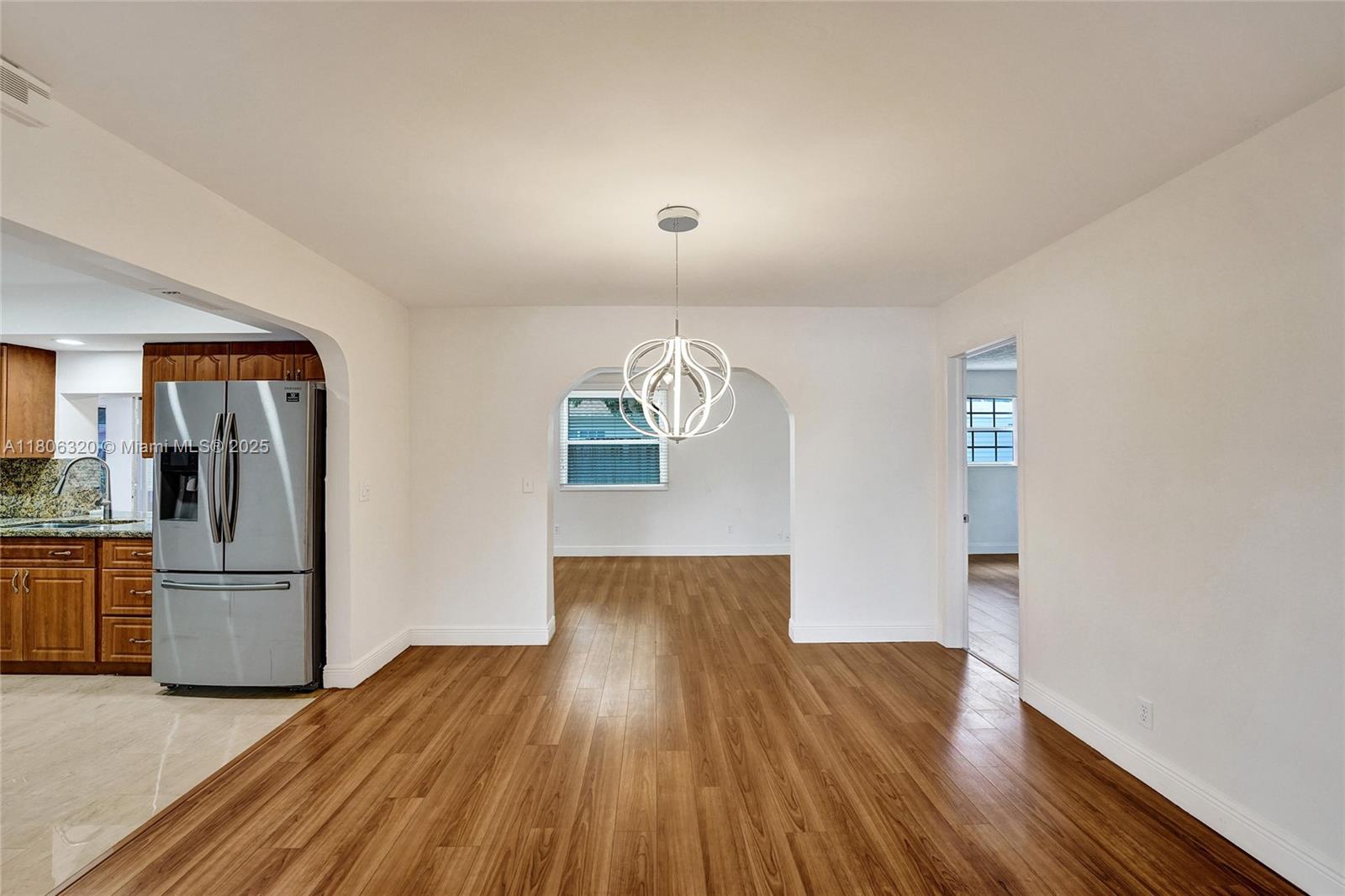 Beautifully maintained one-story home nestled on an expansive lot, complete with a circular driveway offering ample parking. Step inside to find a spacious living & dining area that flows seamlessly into an oversized den/TV room—perfect for entertaining or relaxing with family. The updated eat-in kitchen boasts stunning granite countertops, designer cabinetry with glass inserts, and plenty of room for gatherings. Laminate flooring runs throughout the home, creating a warm and cohesive feel. The garage provides a versatile extra space—ideal for a home office, studio, or playroom. Outside, enjoy a generous backyard.Conveniently located near shopping, restaurants, and more, this home is ready for a quick close.