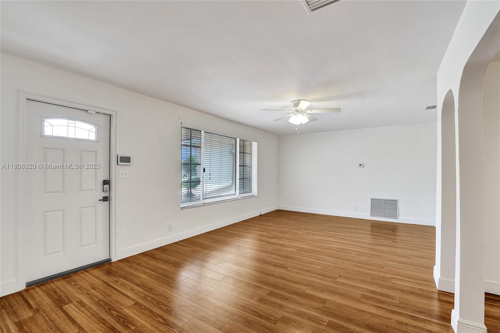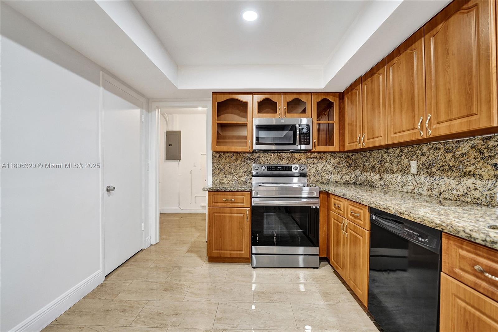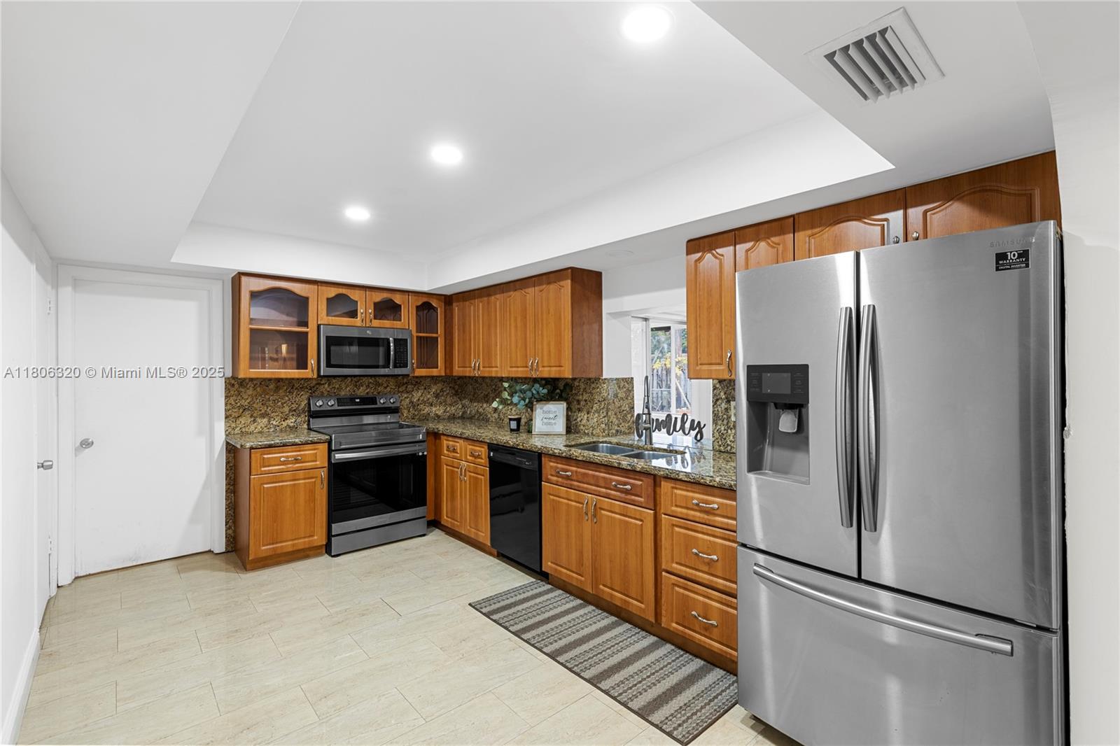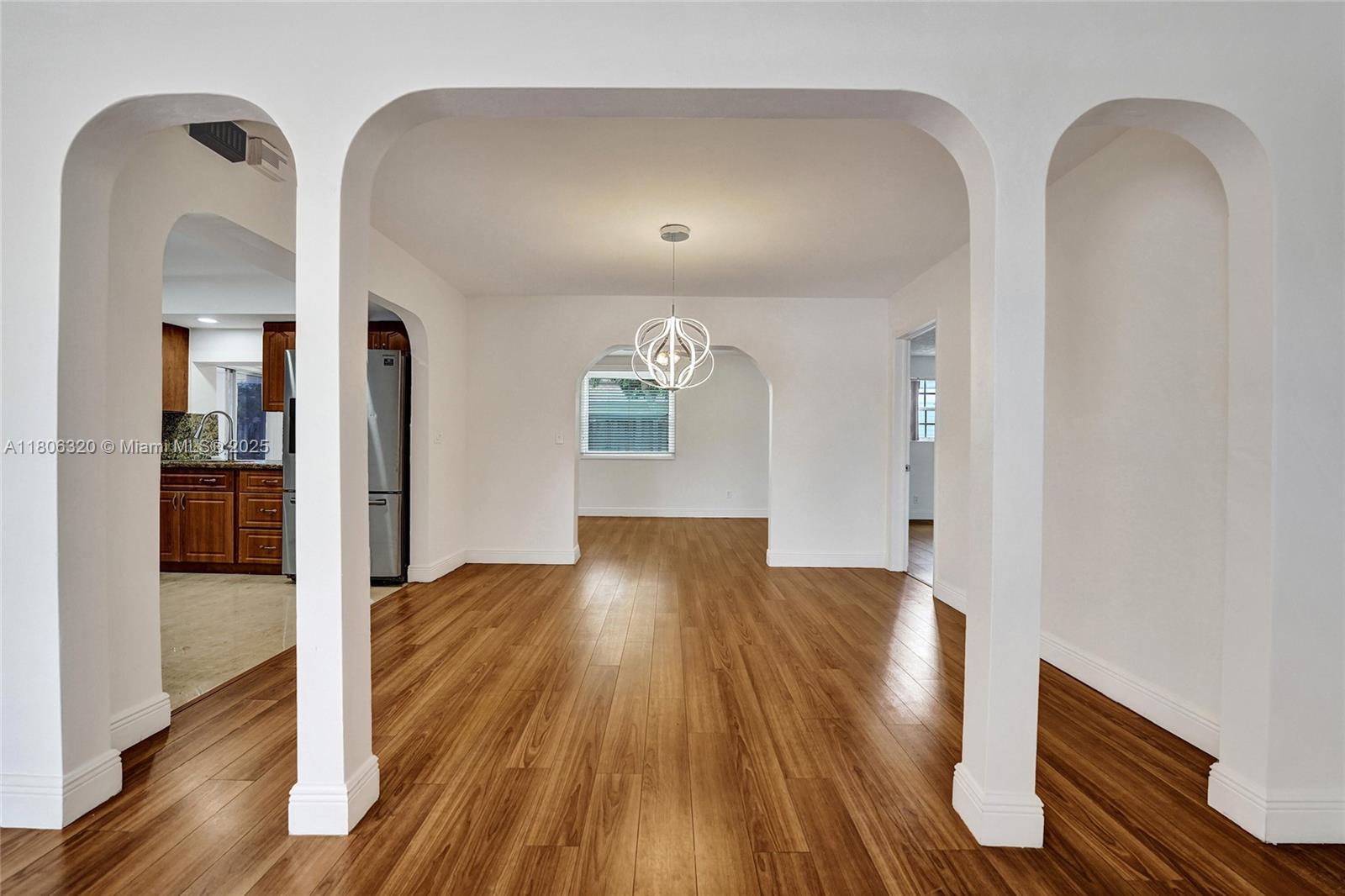 Beautifully maintained one-story home nestled on an expansive lot, complete with a circular driveway offering ample parking. Step inside to find a spacious living & dining area that flows seamlessly into an oversized den/TV room—perfect for entertaining or relaxing with family. The updated eat-in kitchen boasts stunning granite countertops, designer cabinetry with glass inserts, and plenty of room for gatherings. Laminate flooring runs throughout the home, creating a warm and cohesive feel. The garage provides a versatile extra space—ideal for a home office, studio, or playroom. Outside, enjoy a generous backyard.Conveniently located near shopping, restaurants, and more, this home is ready for a quick close.