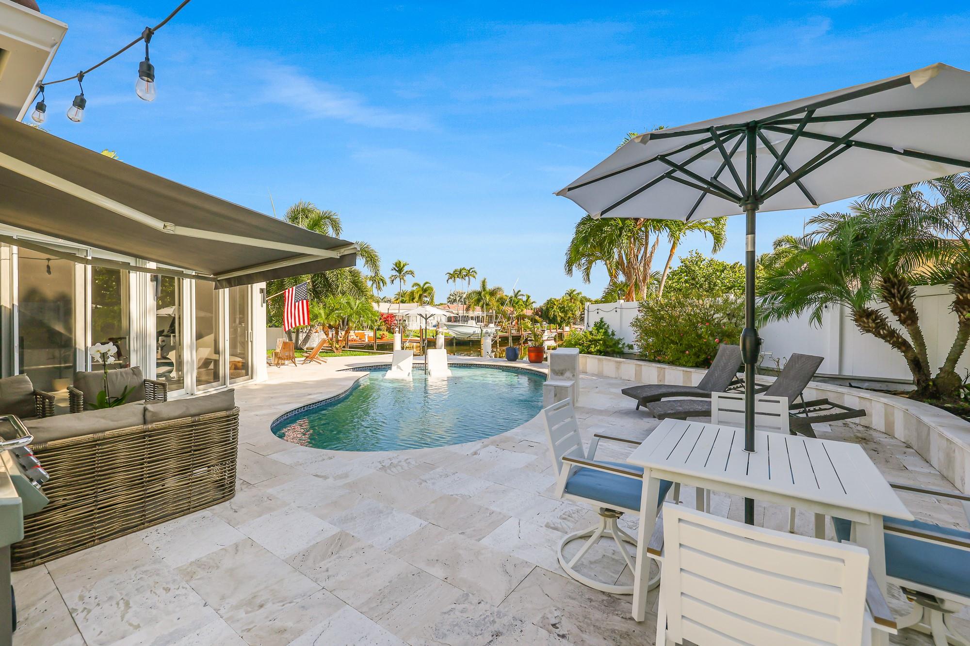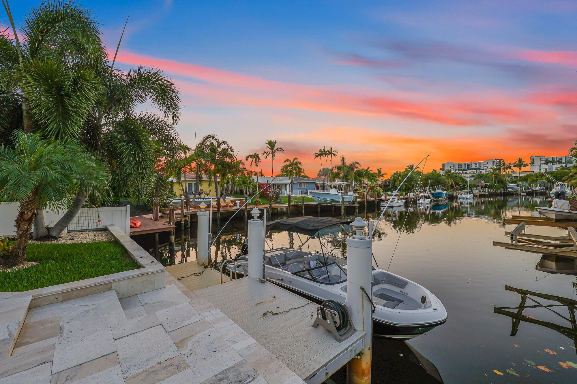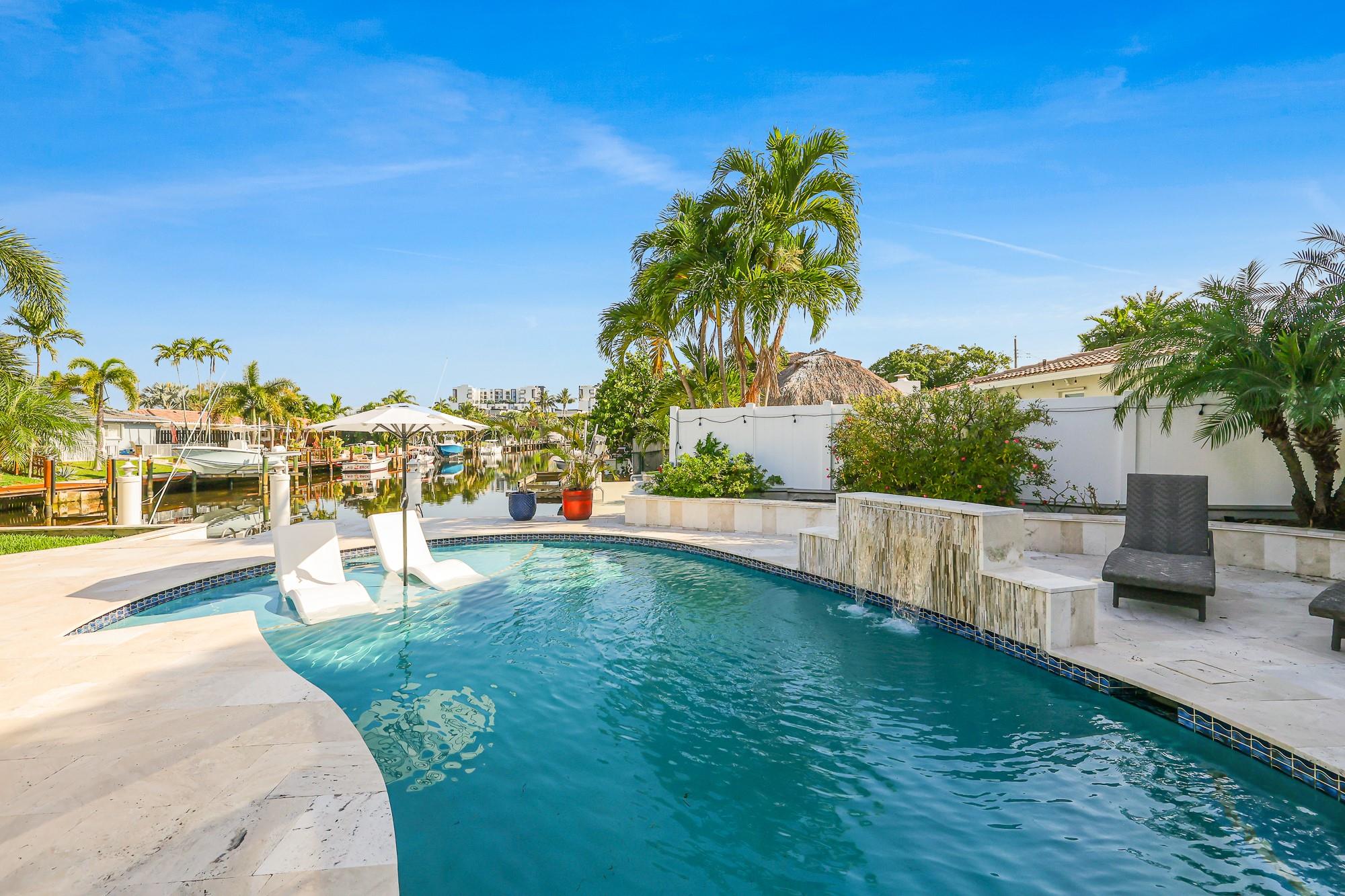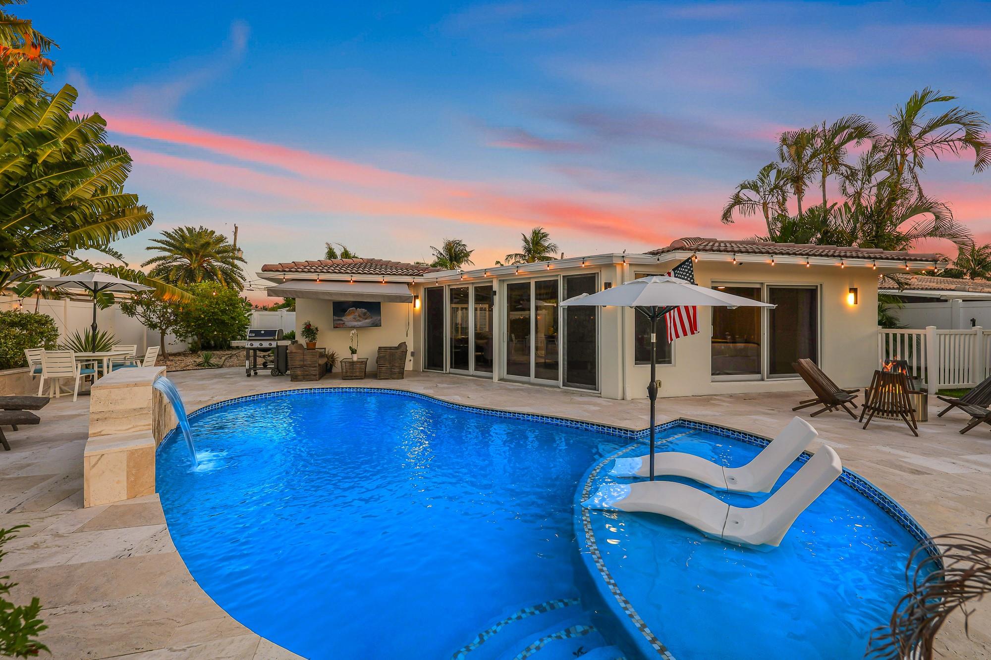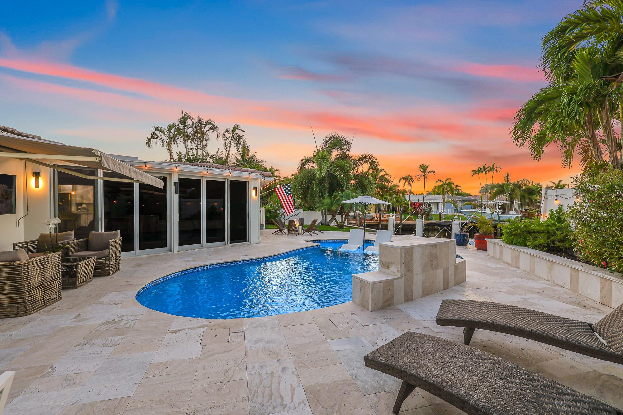 Positioned at the end of a canal with ocean access is this reimagined three bedroom, two bath open concept pool home in Garden Isles. NEW ROOF Sept 2025, new wood look tile flooring, new kitchen with large island featuring Kitchen Aid appliances, quartz countertops and backsplash, banquette for informal dining, two new designer bathrooms, all new AC, ducts and insulation, new exterior and interior painting, LED recessed lighting, newer pool with cascading waterfall (4 yrs) with travertine pavers, all cast iron pipes replaced, whole house Generac generator, garage and laundry under air. Impact windows and doors throughout allowing for Northern exposure water views from the moment you enter. Close to all the attractions and nightlife in E Pompano and close to Atlantic Ave.