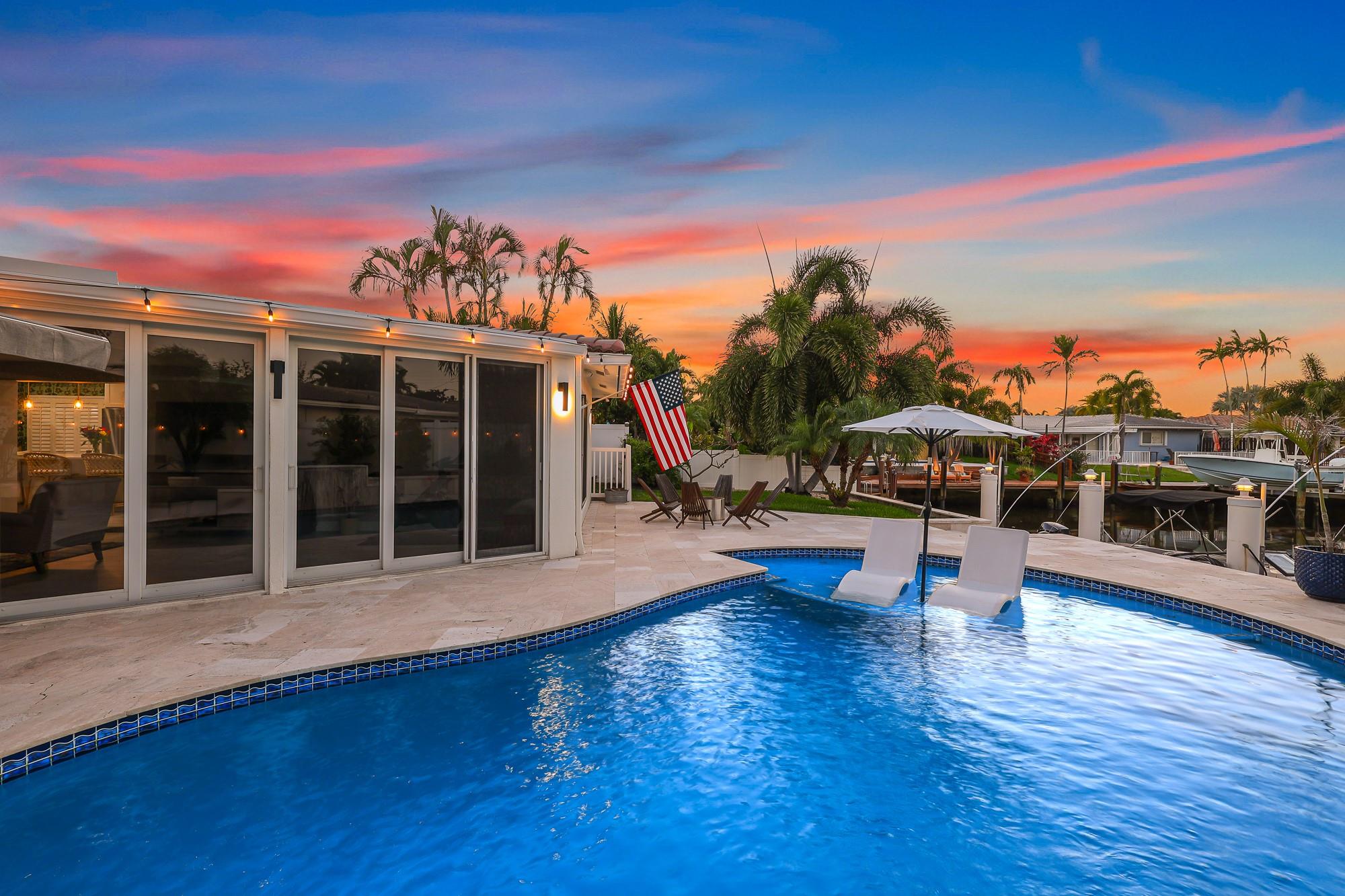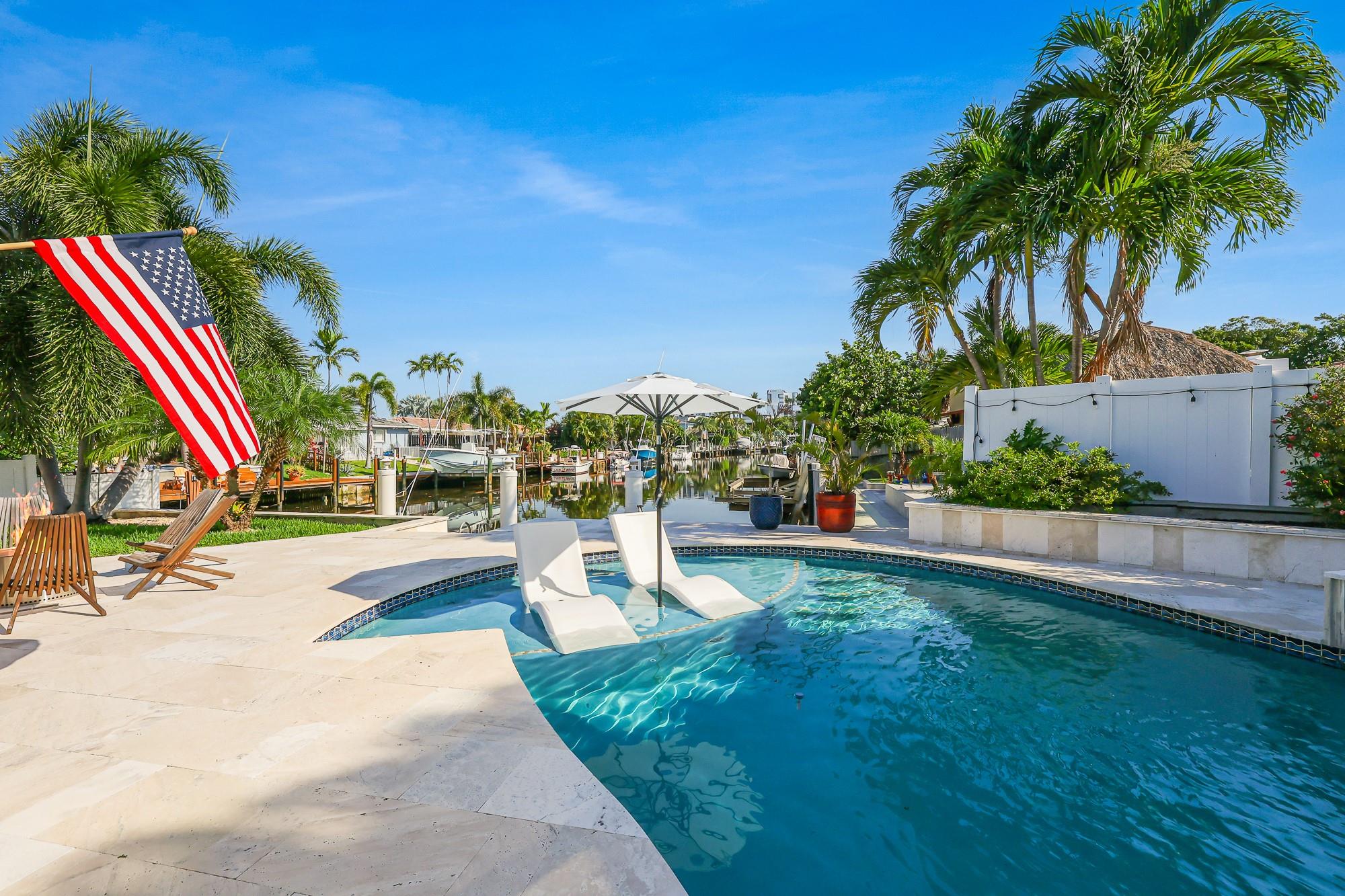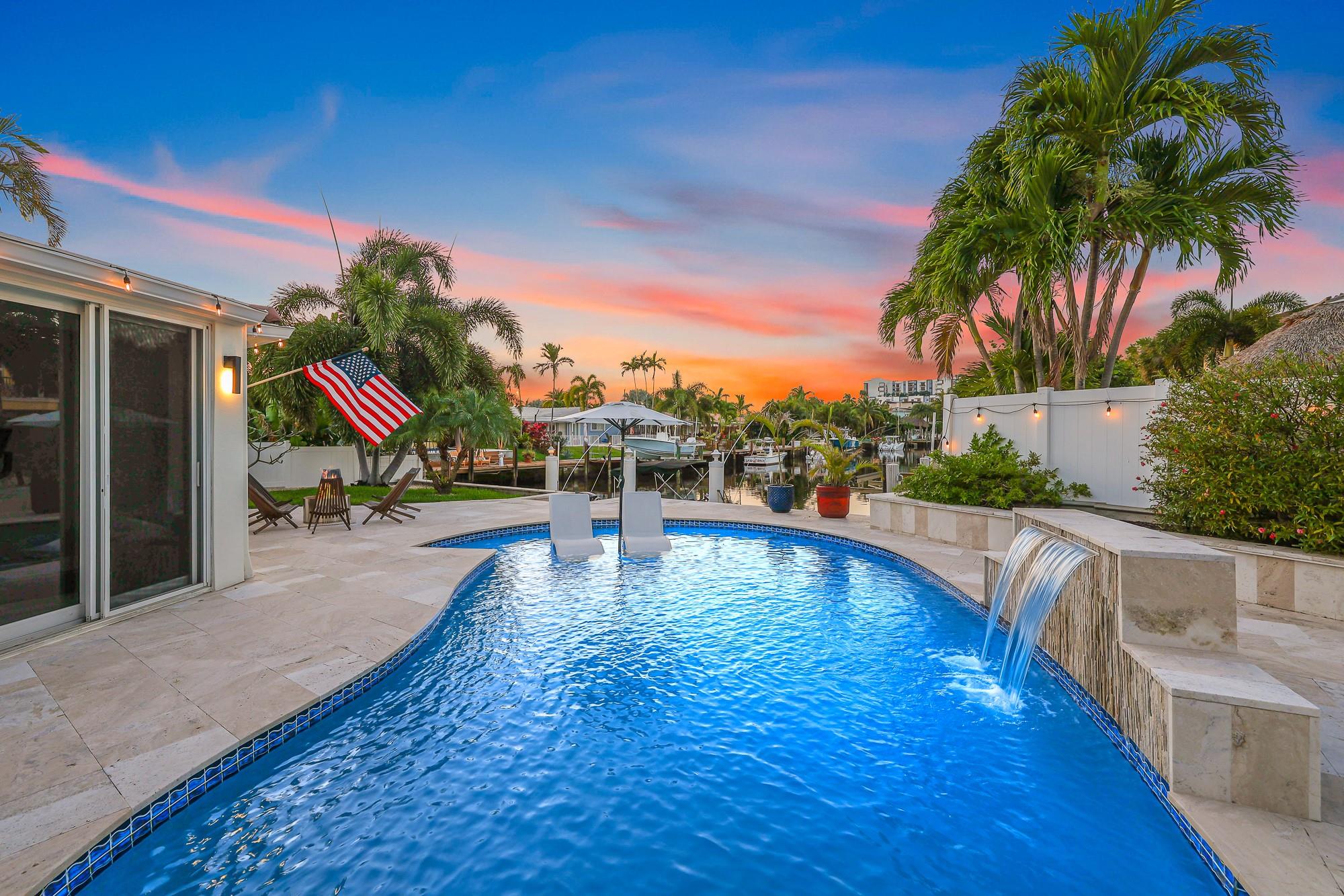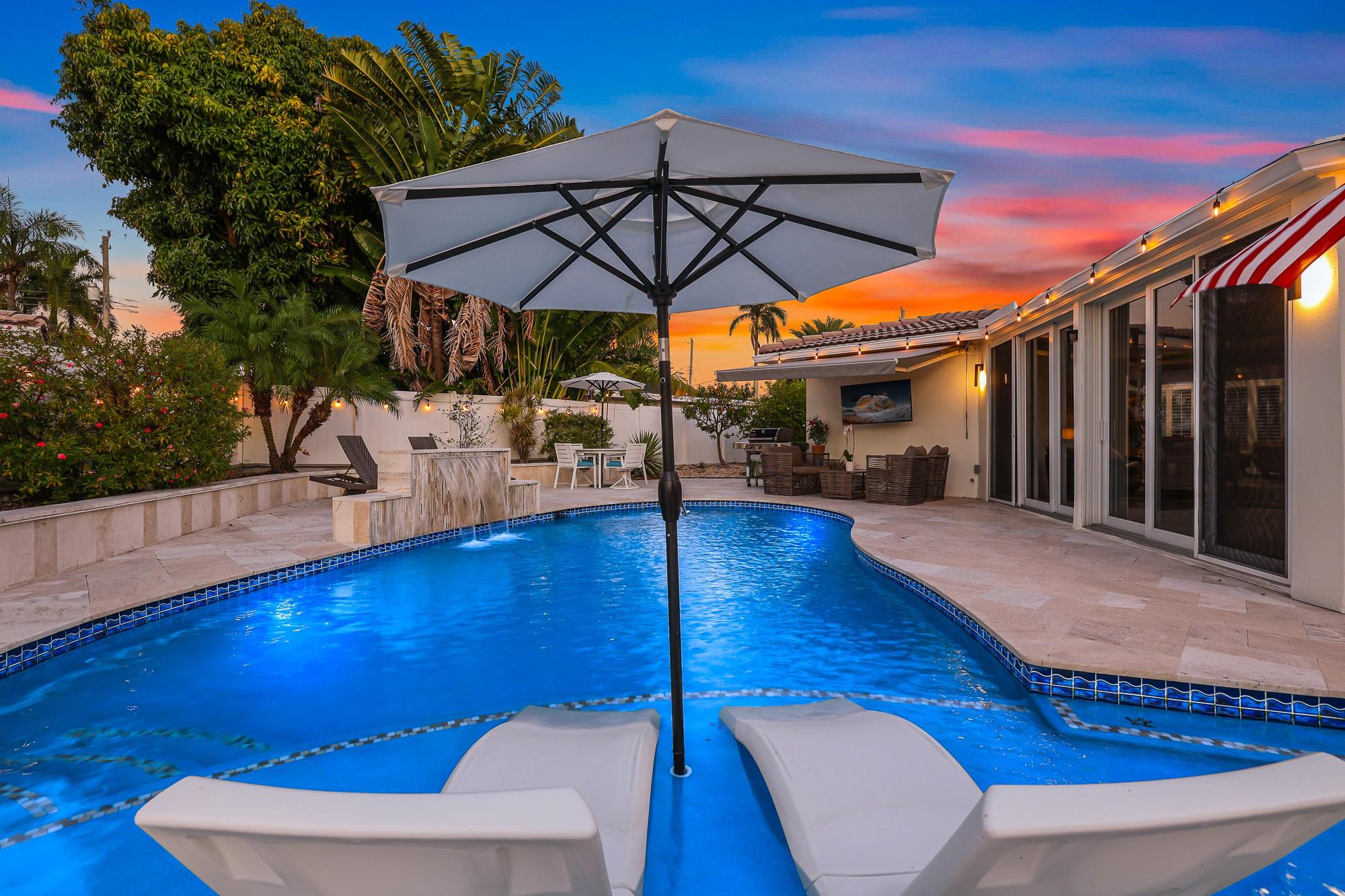 Positioned at the end of a canal with ocean access is this reimagined three bedroom, two bath open concept pool home in Garden Isles. NEW ROOF Sept 2025, new wood look tile flooring, new kitchen with large island featuring Kitchen Aid appliances, quartz countertops and backsplash, banquette for informal dining, two new designer bathrooms, all new AC, ducts and insulation, new exterior and interior painting, LED recessed lighting, newer pool with cascading waterfall (4 yrs) with travertine pavers, all cast iron pipes replaced, whole house Generac generator, garage and laundry under air. Impact windows and doors throughout allowing for Northern exposure water views from the moment you enter. Close to all the attractions and nightlife in E Pompano and close to Atlantic Ave.