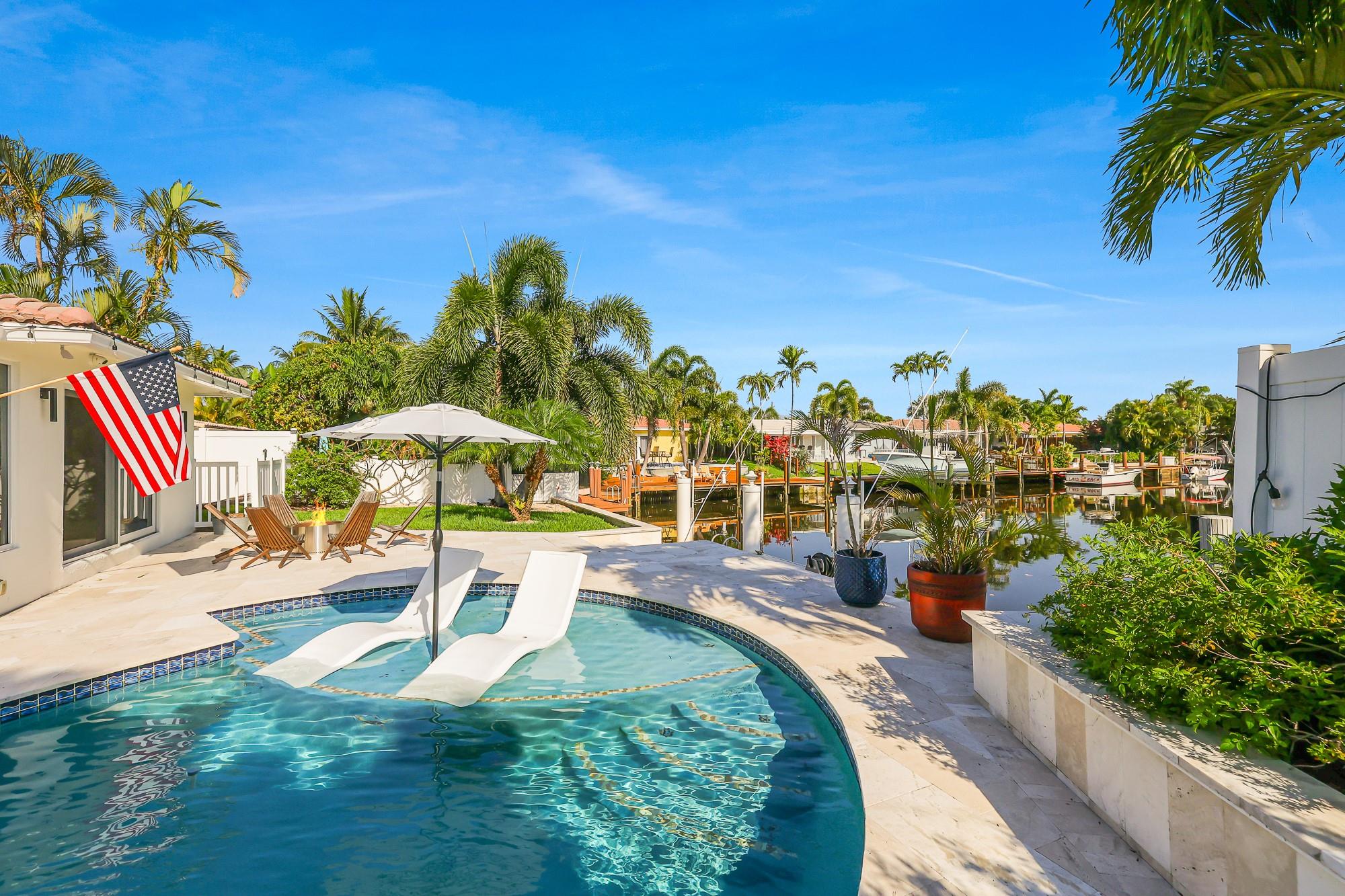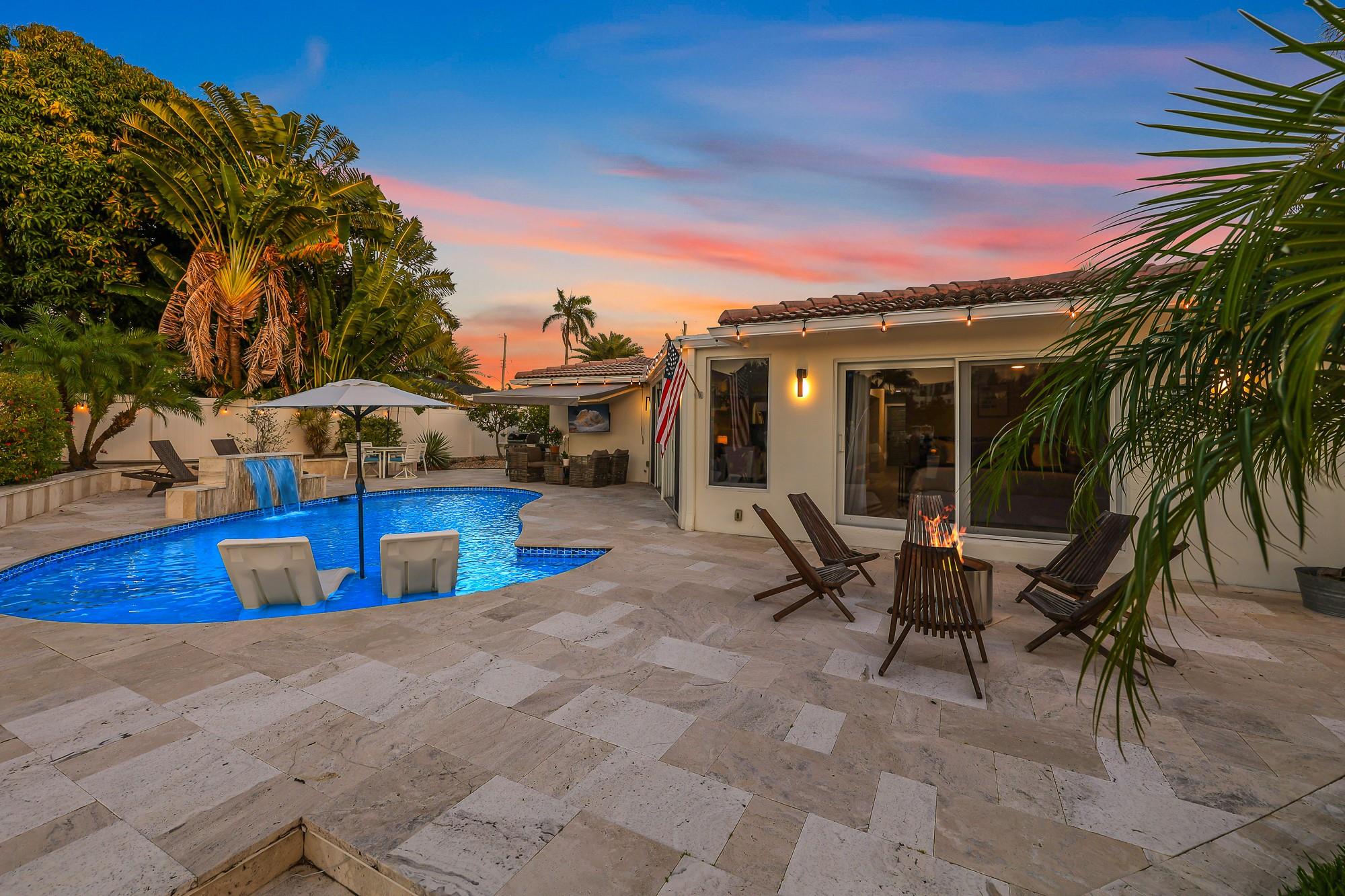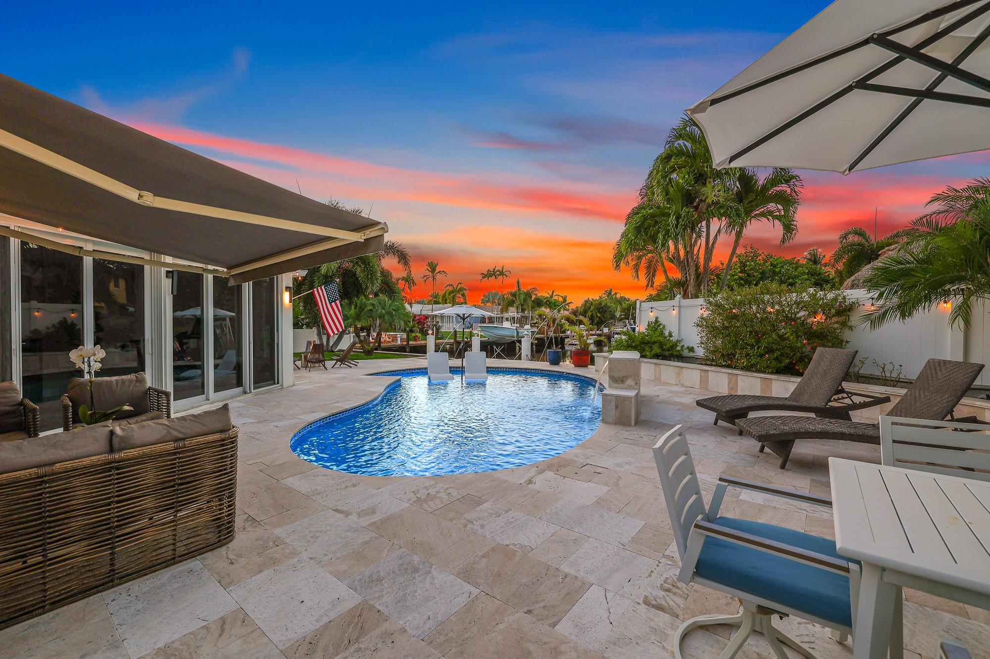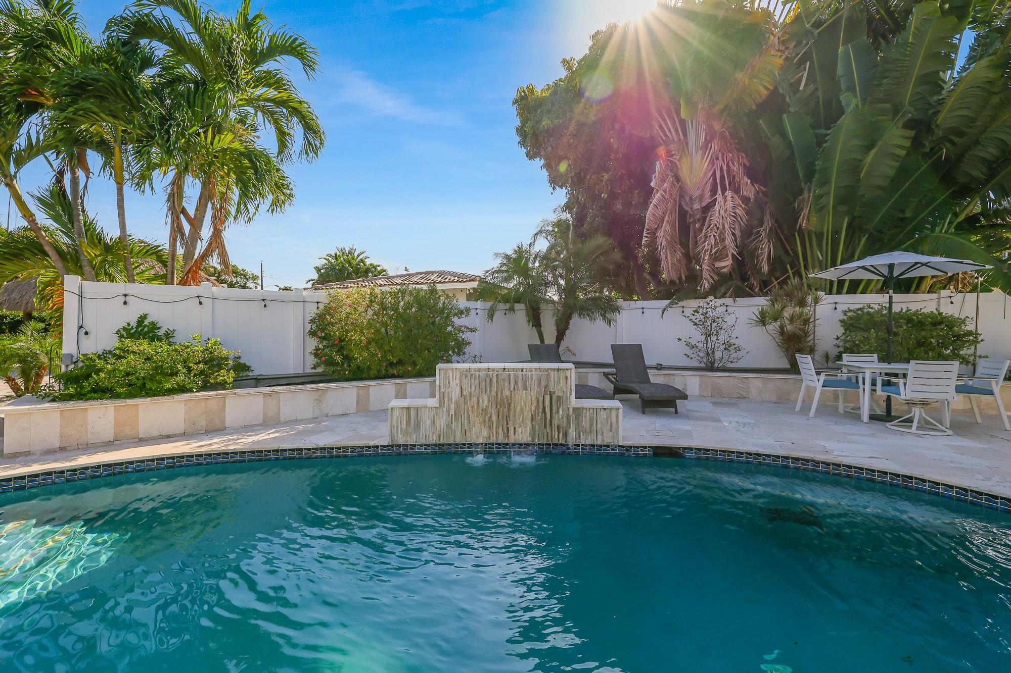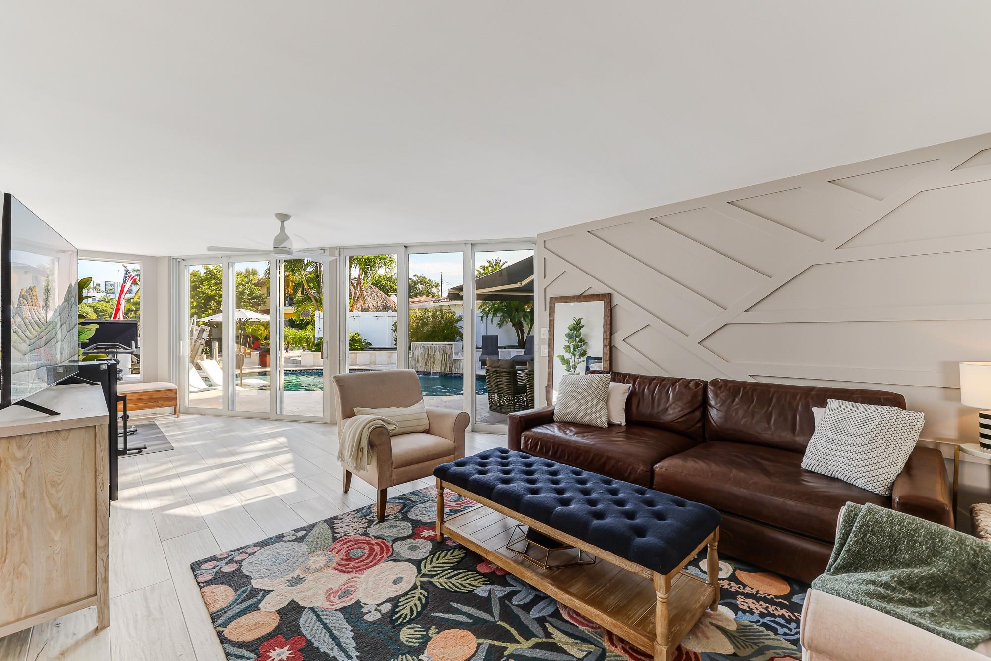 Positioned at the end of a canal with ocean access is this reimagined three bedroom, two bath open concept pool home in Garden Isles. NEW ROOF Sept 2025, new wood look tile flooring, new kitchen with large island featuring Kitchen Aid appliances, quartz countertops and backsplash, banquette for informal dining, two new designer bathrooms, all new AC, ducts and insulation, new exterior and interior painting, LED recessed lighting, newer pool with cascading waterfall (4 yrs) with travertine pavers, all cast iron pipes replaced, whole house Generac generator, garage and laundry under air. Impact windows and doors throughout allowing for Northern exposure water views from the moment you enter. Close to all the attractions and nightlife in E Pompano and close to Atlantic Ave.