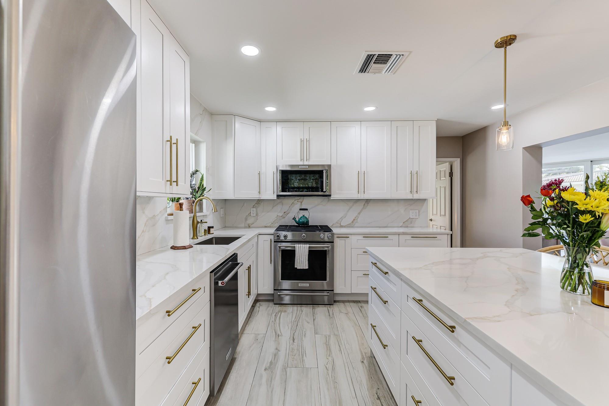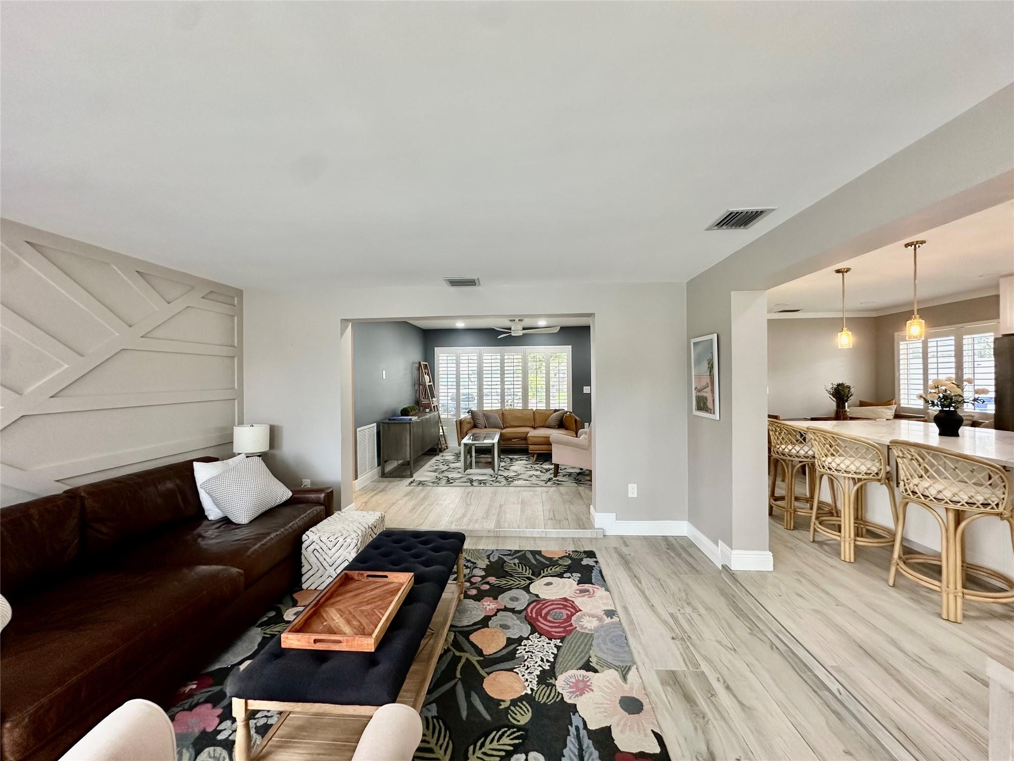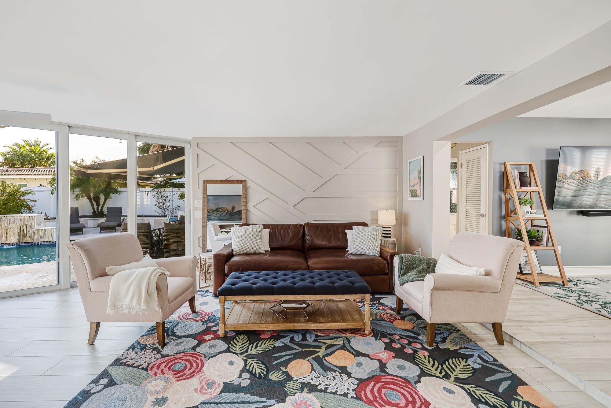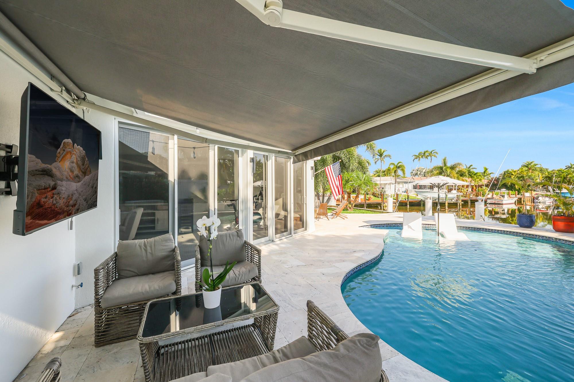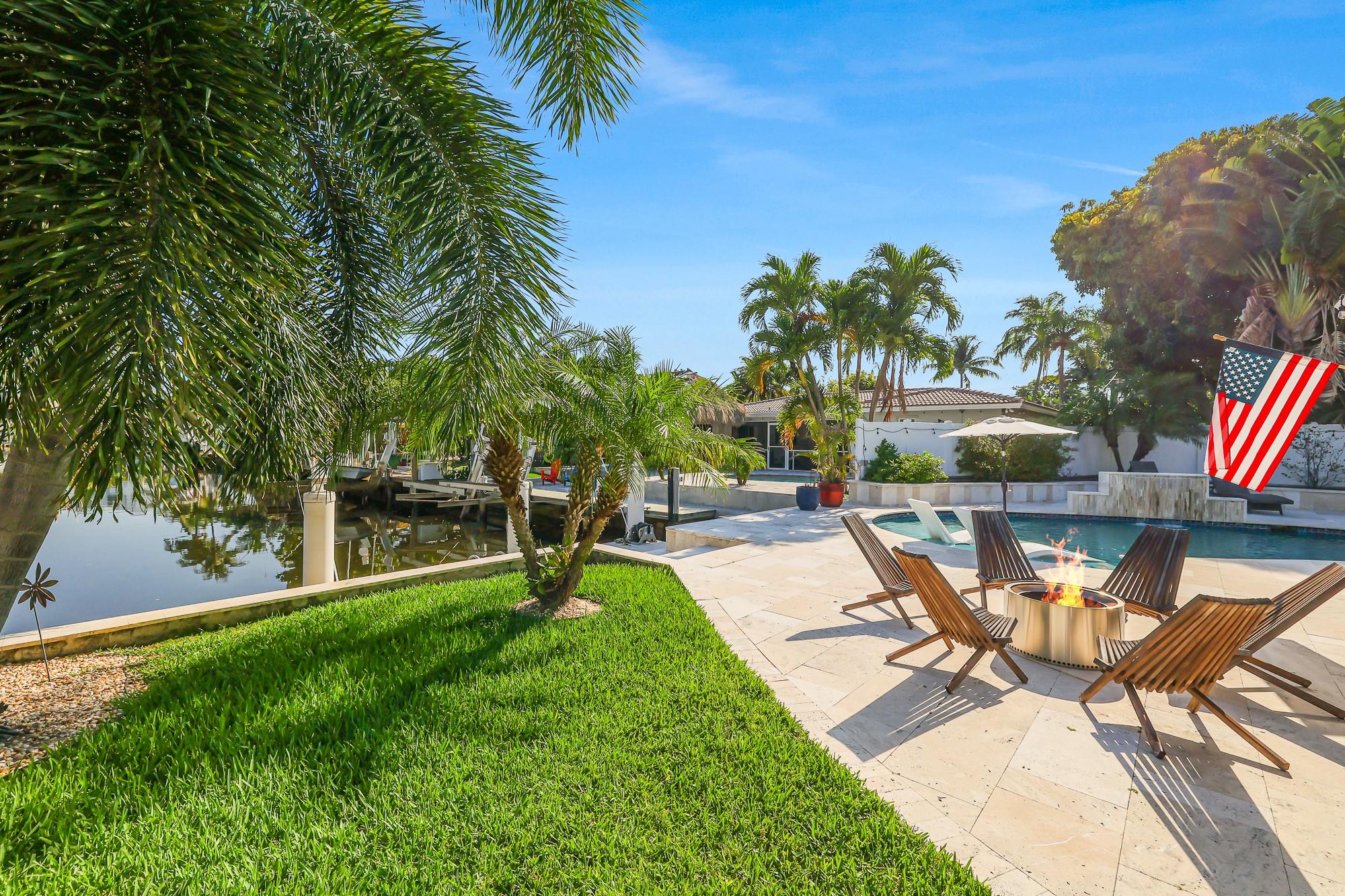 Positioned at the end of a canal with ocean access is this reimagined three bedroom, two bath open concept pool home in Garden Isles. NEW ROOF Sept 2025, new wood look tile flooring, new kitchen with large island featuring Kitchen Aid appliances, quartz countertops and backsplash, banquette for informal dining, two new designer bathrooms, all new AC, ducts and insulation, new exterior and interior painting, LED recessed lighting, newer pool with cascading waterfall (4 yrs) with travertine pavers, all cast iron pipes replaced, whole house Generac generator, garage and laundry under air. Impact windows and doors throughout allowing for Northern exposure water views from the moment you enter. Close to all the attractions and nightlife in E Pompano and close to Atlantic Ave.