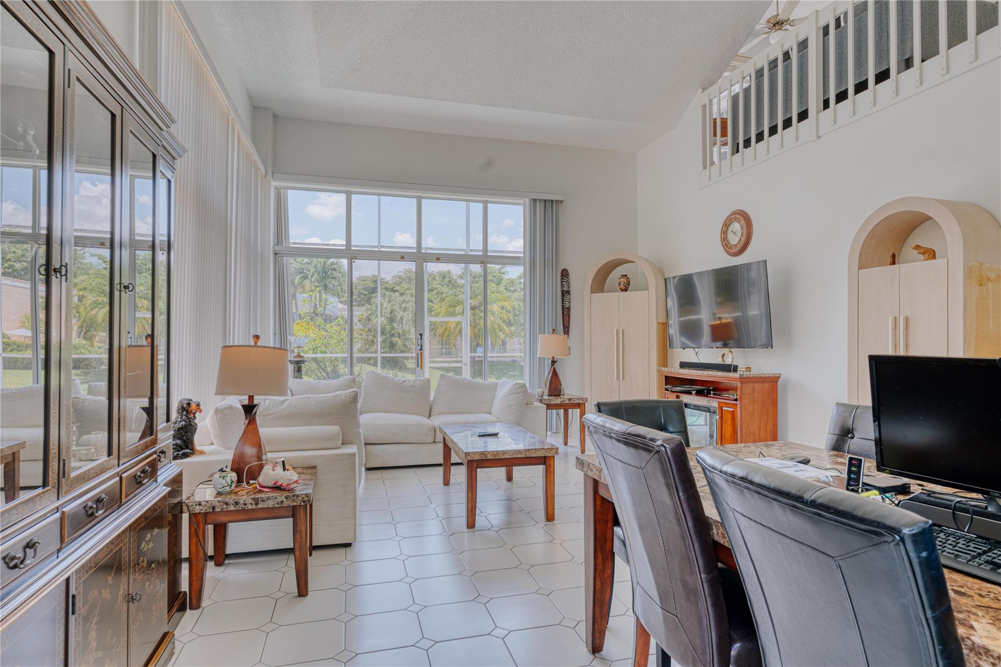 Welcome to this beautifully updated 4-bedroom, 3-bathroom home offering 2,646 square feet of living space, thoughtfully designed for comfort, style, and functionality. Nestled in a tranquil setting with water views, this property features a screened-in pool—perfect for relaxing or entertaining year-round. Enjoy energy efficiency with a 2021 AC unit, newer solar panels, and a tankless water heater. The home's unique layout provides excellent privacy, with two bedrooms and a full bathroom tucked away upstairs in a stunning loft area, complete with new tile flooring. Downstairs, you'll find an open living space, ideal for both quiet family time and entertaining guests. Whether you’re enjoying the pool or taking in water views, this home delivers the Florida lifestyle you’ve been dreaming of!
