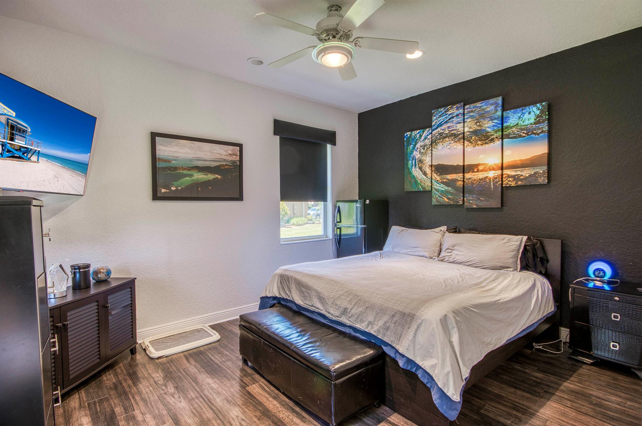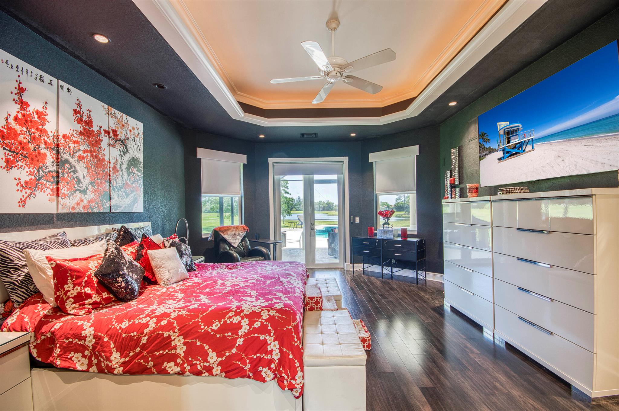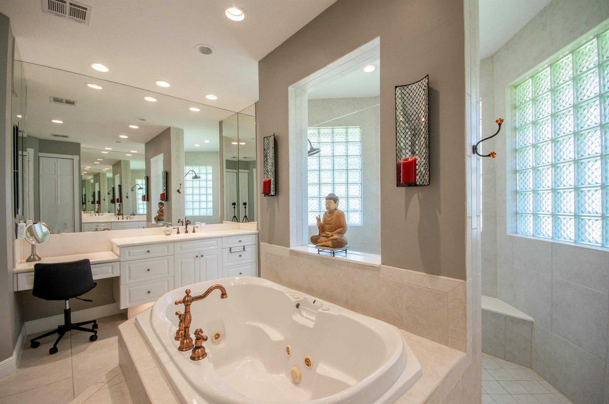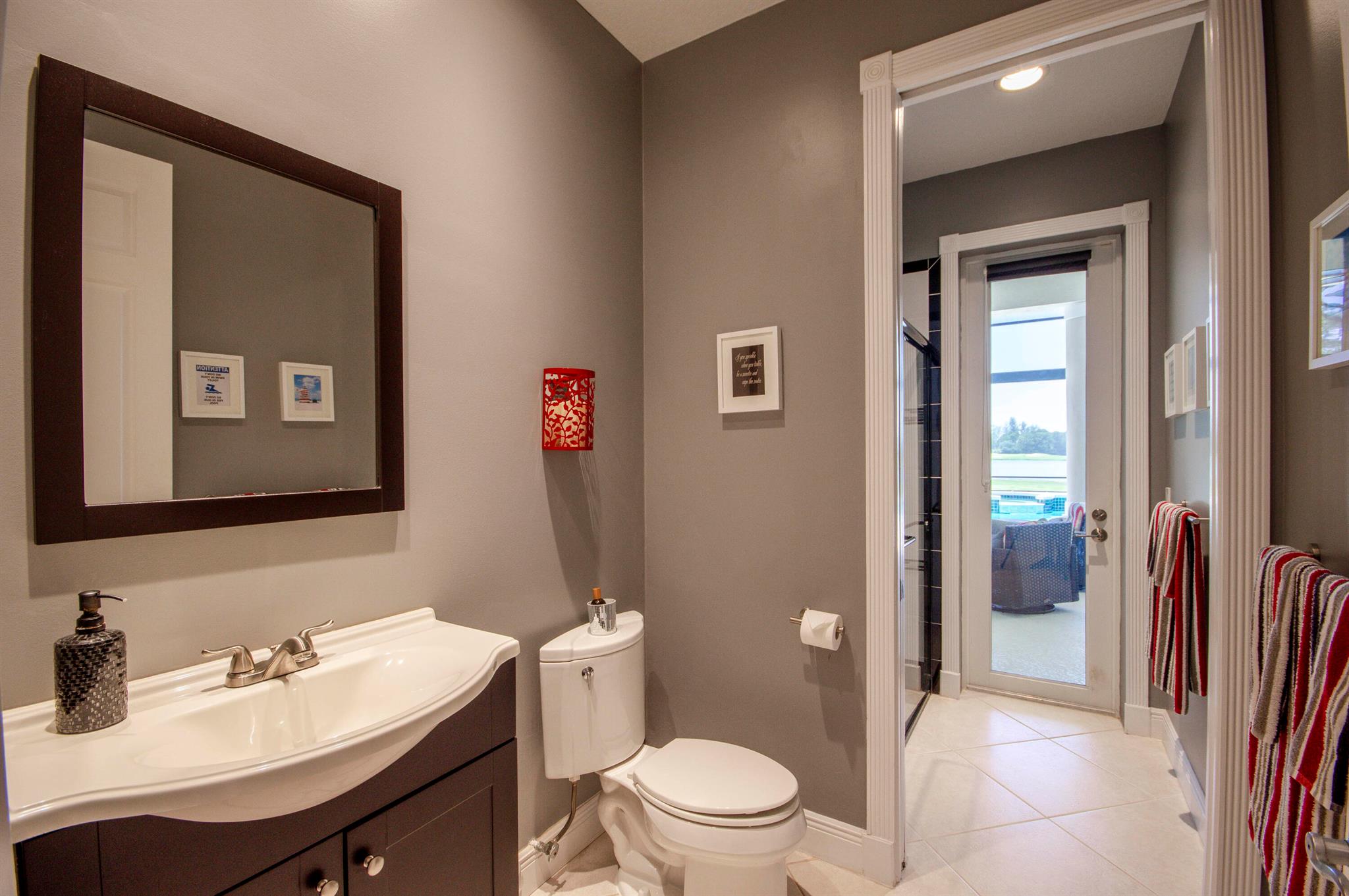 Enjoy the BEST WATER VIEW in Bay Hill Estates from this single-story home set on a full 1-acre lot. With a 2023 roof, newer A/Cs, and a 2020 hurricane-rated screened lanai, this home blends peace of mind with luxury living. Inside, you'll find high ceilings, a split floor plan, and expansive windows and sliders that showcase the lake & golf course views. The kitchen offers white cabinetry, black granite, and a central island with double ovens. The extended primary suite features an elegant en-suite featuring double vanities, a soaking tub, and a walk-in shower. The lanai is spacious, screened, and equipped with a TV hookup, making it the perfect setting for al fresco evenings. Located in a guard-gated golf course community just minutes to the exciting new Avenir town center.