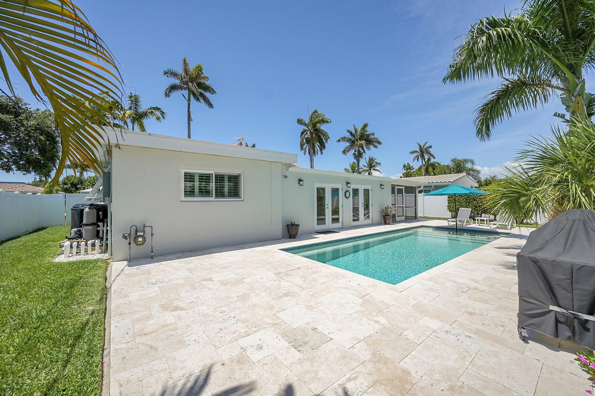 Welcome to this sun-drenched 3-bedroom, 2-bath coastal-style home offering nearly 2,000 square feet of living space in one of East Pompano Beach's most sought-after neighborhoods, Santa Barbara Estates. Just a few lots off the Intracoastal Waterway and minutes from the beach, this home is situated on a beautiful street with an incredibly well-maintained yard. It combines space, character, and comfort in a layout ideal for relaxed South Florida living.