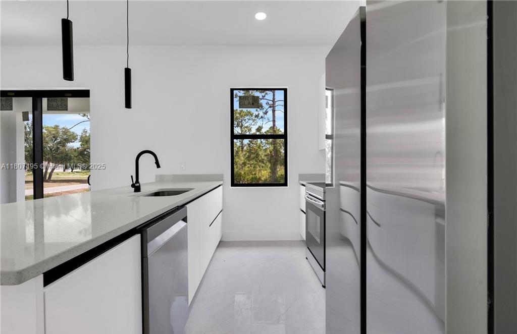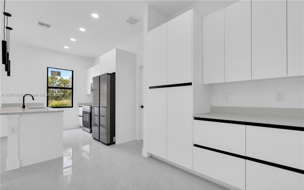 NEW CONSTRUCTION. Move right into this stunning new home on an quarter-acre lot, designed with a spacious and contemporary open floor plan featuring, high-end finishes with white porcailain floors throughout 3 bedrooms a large den and 2 bathrooms. Large laundry room, and large Den could be converter in 4rth room Kitchen with extra cabinets for more functionality, All new SS appliances and quartz in the counter. High ceilings, complemented by all impact-resistant windows and doors. Don’t miss the chance to make this home your own!. NO ASSOCIATION -FENCE WILL BE INSTALLED, PERMITS WILL BE REQUESTED WHEN OFFER IS RECEIVED AND PAST THE INSPECTION PERIOD