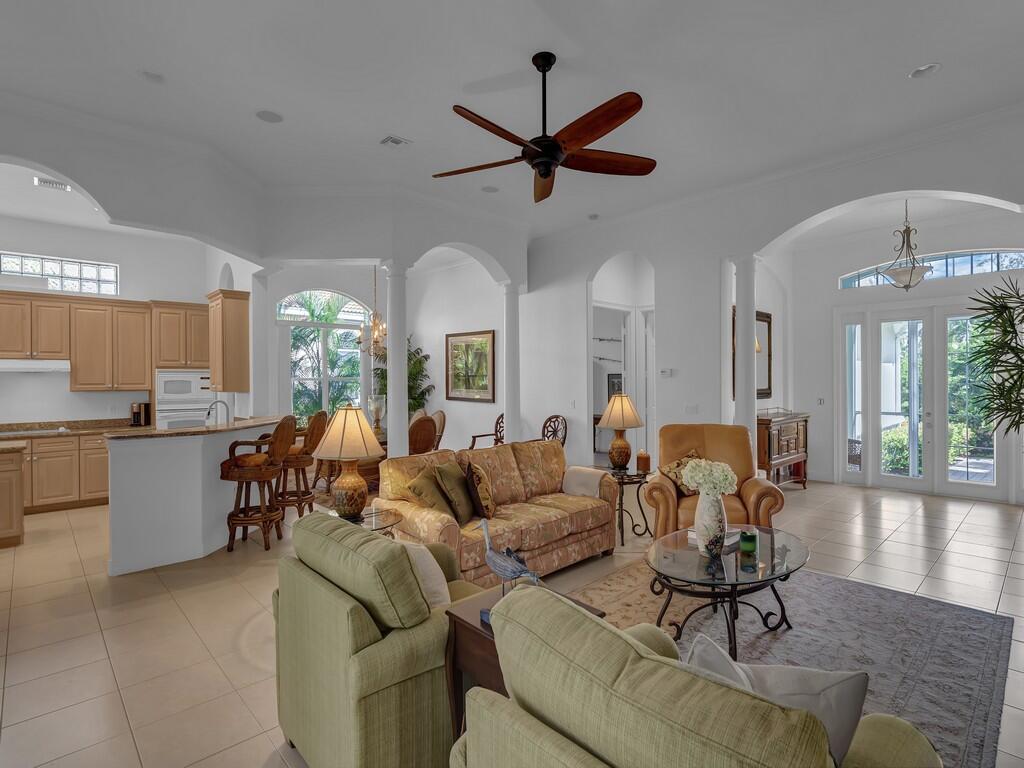 Lakefront 3BR/ 3BA in gated community with beach access. Open floor plan, high ceilings, updated primary bath and turnkey condition. Enjoy screened pool, spa and beautifully landscaped yard. Florida living at its finest. Don't miss this move in-ready gem!