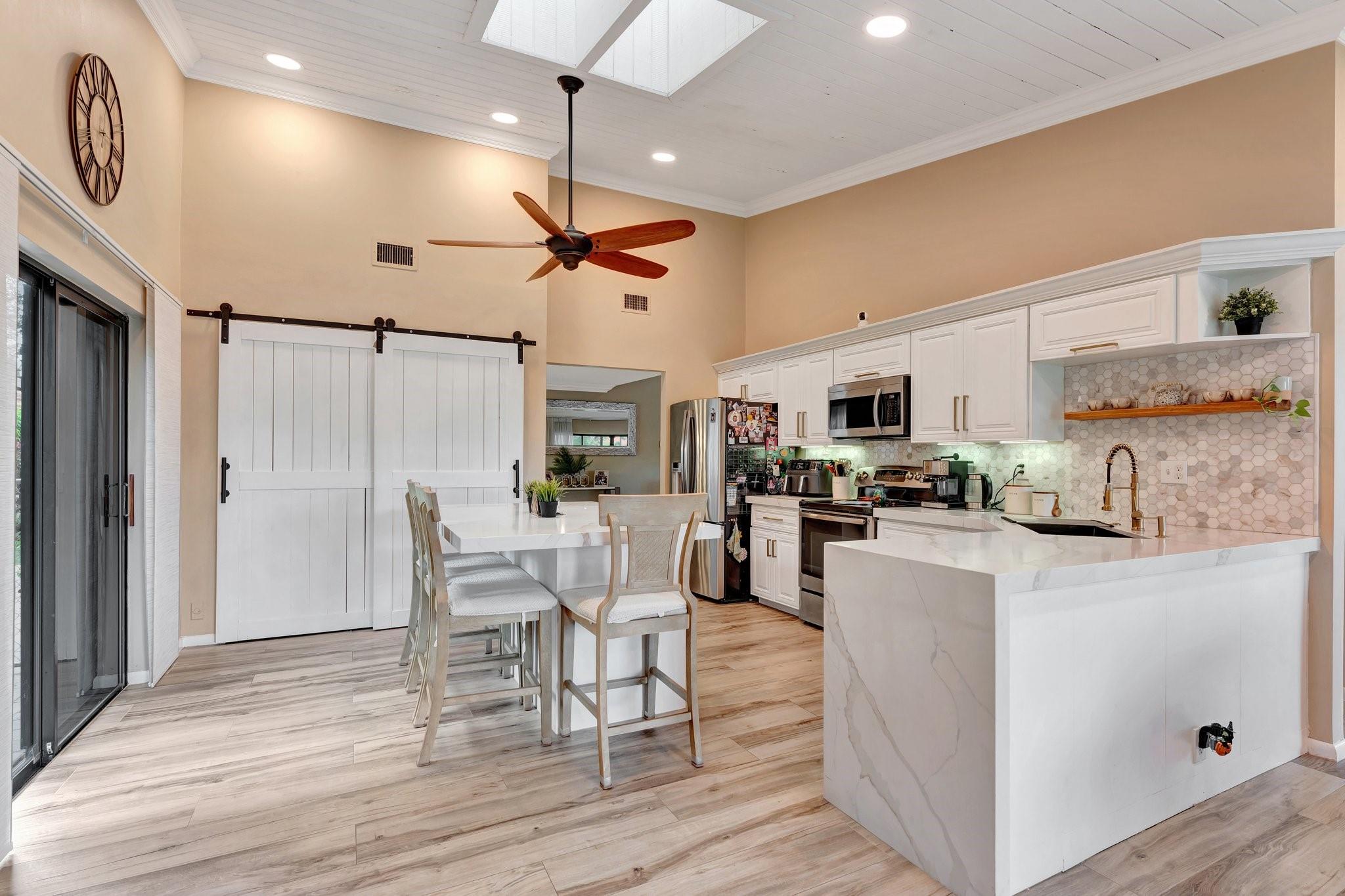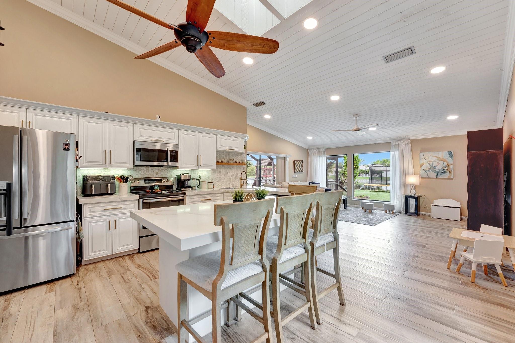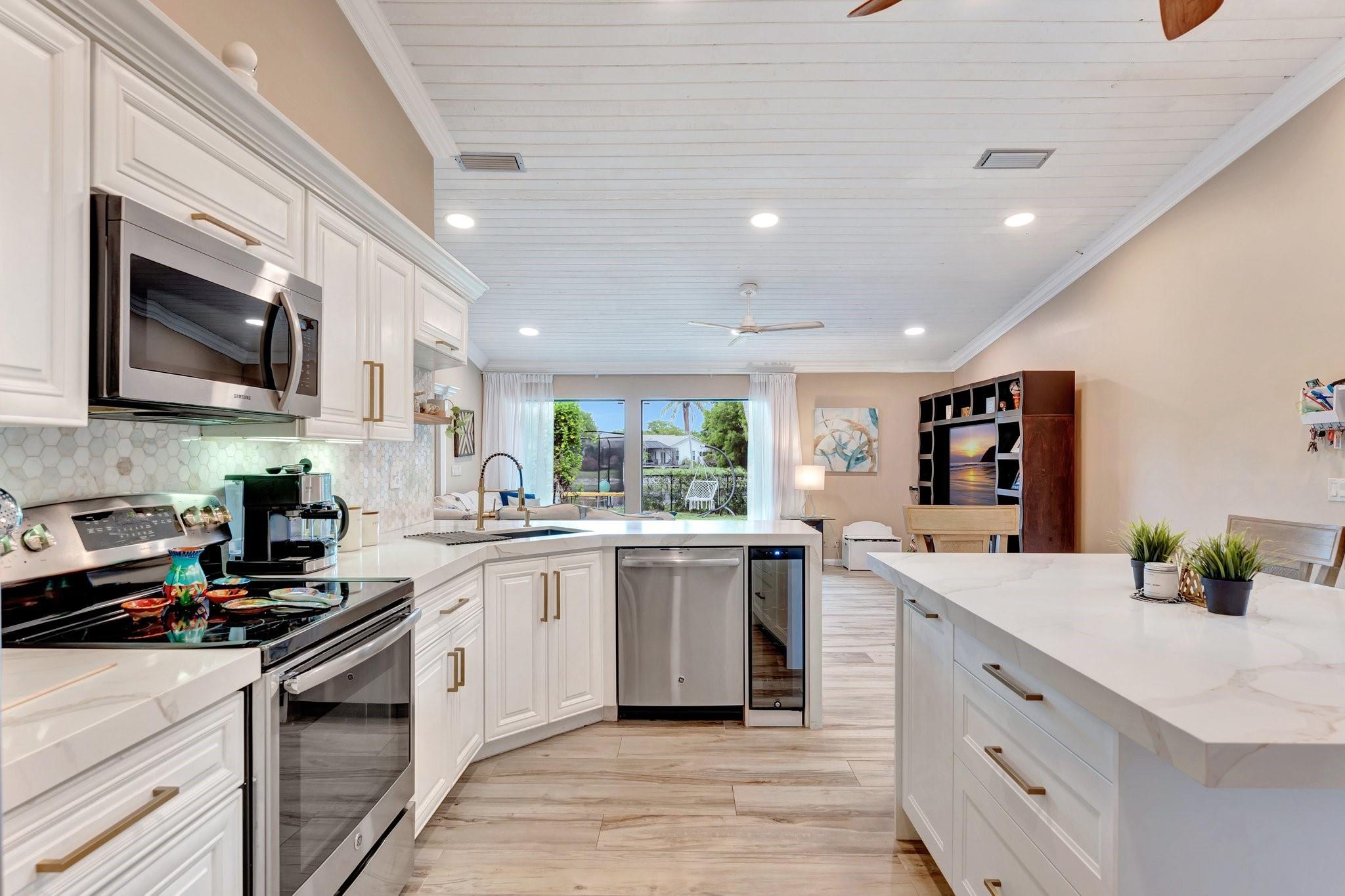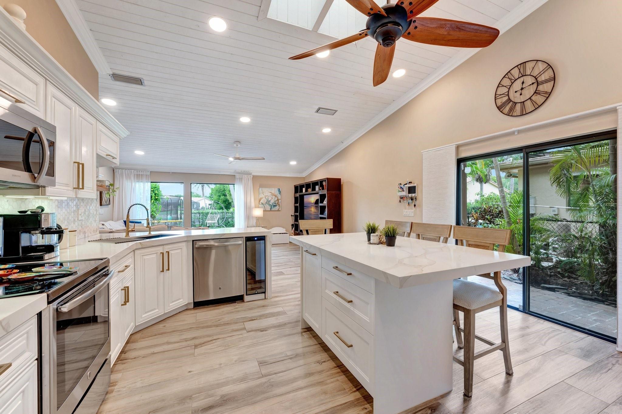 Motivated & Flexible Sellers ready to move forward, creating a great opportunity with generous price reduction, $5,000 credit with full price offer (buy down interest rate or costs). Savings don't stop there! NO HOA fees, NOT in a Flood Zone, Utility bill savings with NEW tankless water heater, 2 Zone A/C units, & landscape lake-fed sprinklers reduce water costs. Move right into this wide waterfront lake home filled with natural light, generous open floor plan, volume ceilings, remodeled kitchen, white shaker cabinetry, auto-lighted drawers, Quartz waterfall counter, marble backsplash, NEW Farmer's sink, high-end hardware, wine cooler, large prep/dine island, large pantry, NEW flooring. Enjoy sunsets over the lake on the peaceful & private screened patio. Solid/well-maintained tile roof!
