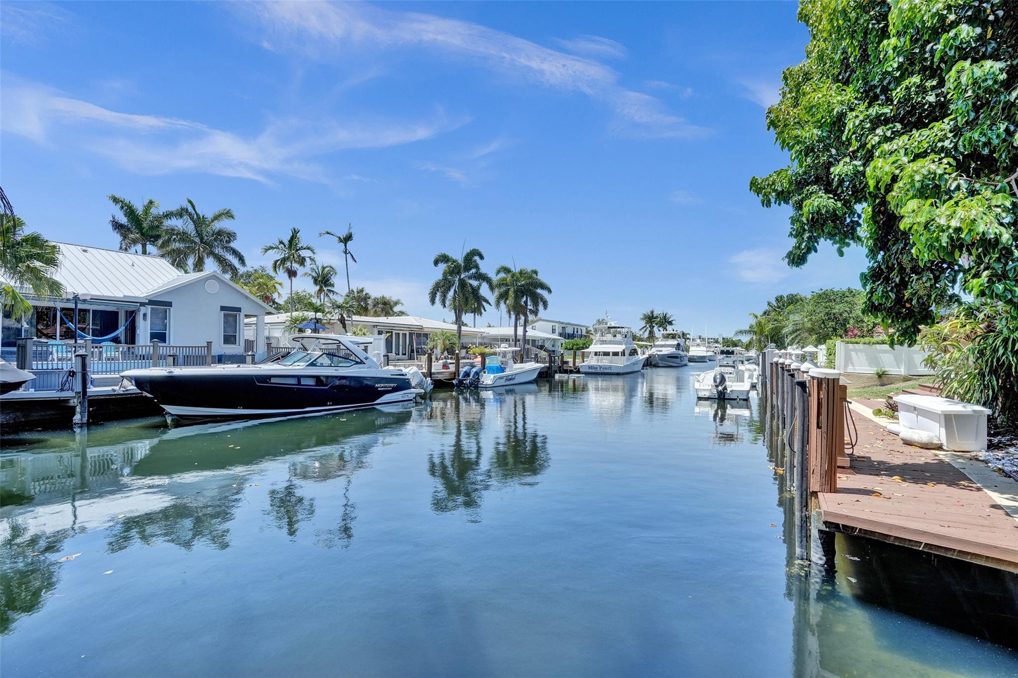 Here is a rare opportunity to own a large corner lot with ocean access and no fixed bridges in East Pompano for under $1M! Located just ½ mile from public boat ramps and 1 mile from the beach! Upgrades include: 2017 roof, 2017 electric panel, full storm protection w/2021 impact windows + garage doors and shutters on sliders, 2024 water heater, 2024 irrigation and 2024 A/C. The pie-shaped lot provides for a private backyard with a long water view and room for a pool. The backyard can be expanded massively by fencing the south side of the property. Quote in hand for a custom boat slip and seawall to accommodate up to a 30ft boat. As-is, there is room for a small dock and/or jet ski lift. Less than 30 minutes by water to the Hillsborough Inlet.