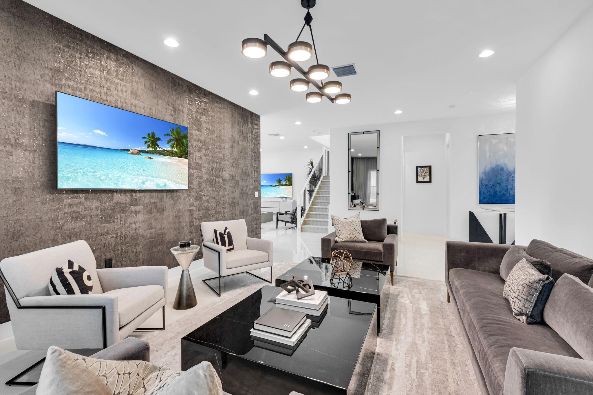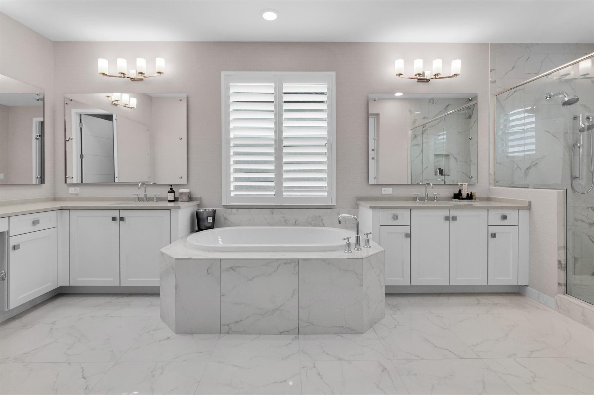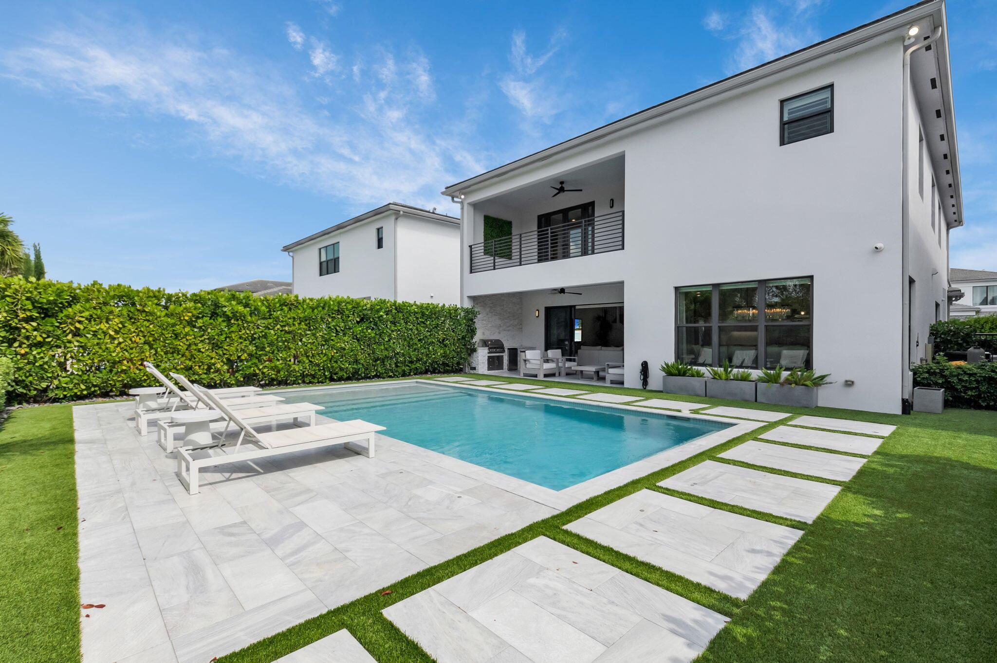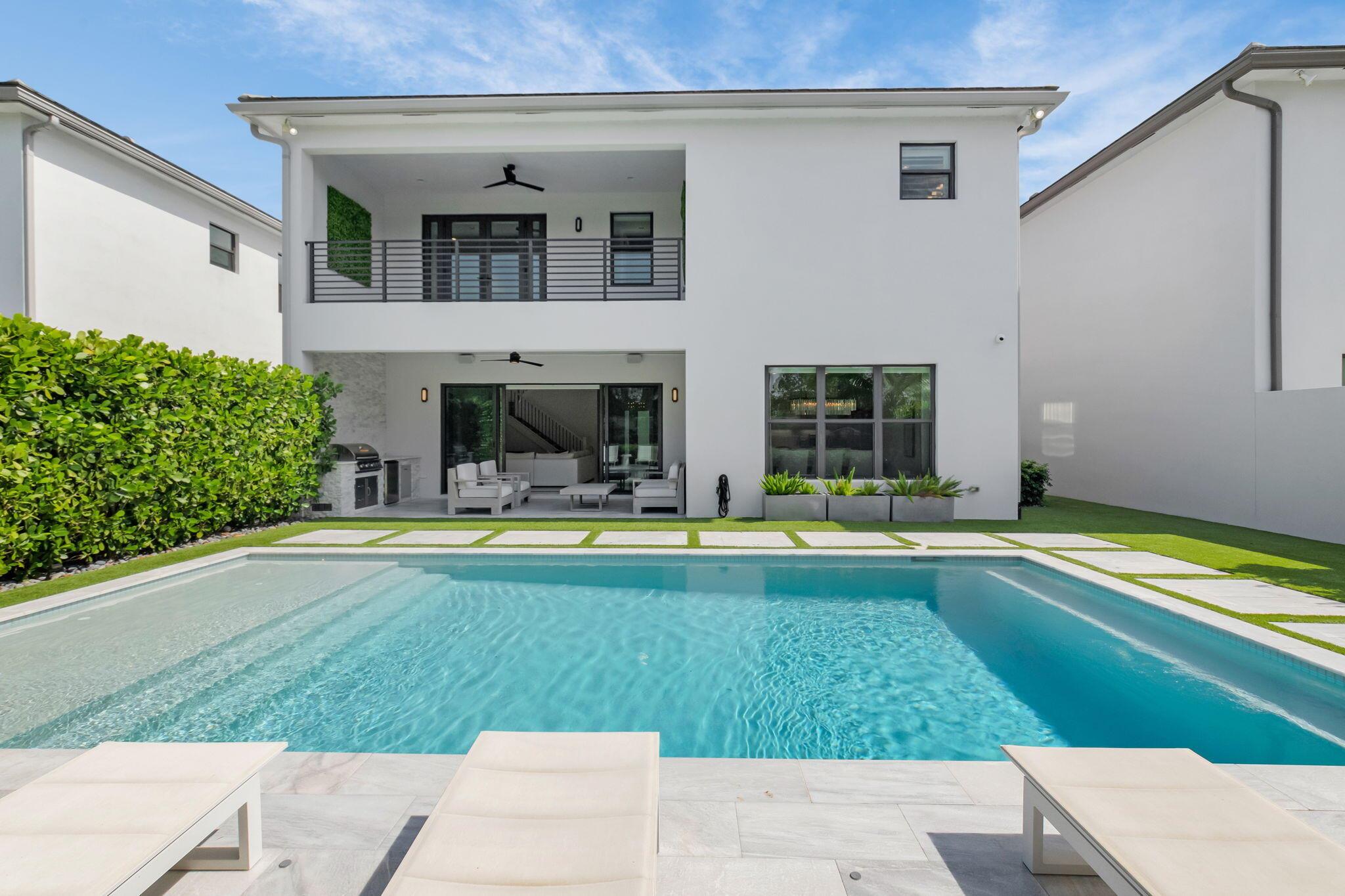 Live luxuriously with this impeccably finished Mariana model, located in the contemporary community Lotus. This turn-key residence complete with modern touches offers 5 spacious bedrooms, 5 full bathrooms, a loft, and 2-car garage. With high-end upgrades totaling over $500,000, you'll see attention to detail throughout: glass paneled front door, designer wallpaper, striking lighting fixtures, and solid modern interior doors. The home features beautiful porcelain tile & white oak flooring, louvered shutters & window treatments, custom closets, and built-in office cabinetry. The private backyard is an oasis with pool and sunshelf, marble pavers, turf, outdoor kitchen, and outdoor sound system. Whole-house water filtration & softener system, cameras, expanded driveway, epoxy floors and more.