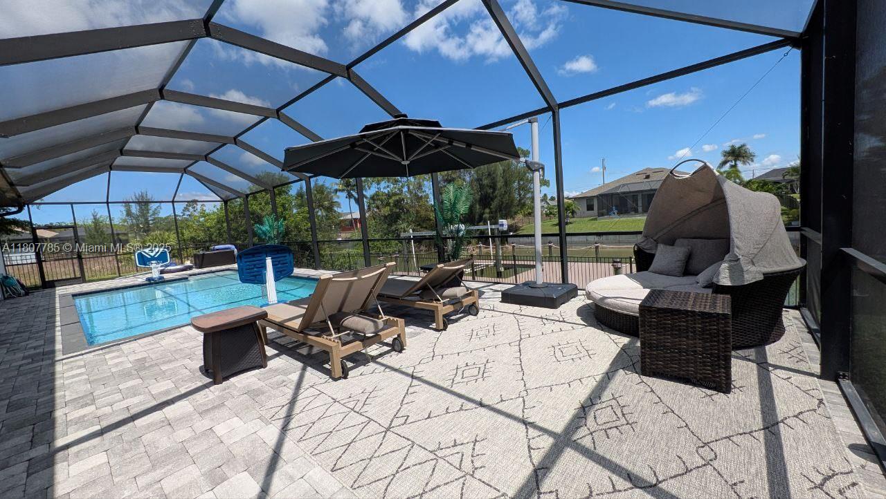 Totally furnished -Amaizing Opportunity just minutes from the Beach! This fabulous waterfront home with equipped with a dock/ boat lift and Solar Panels and extended paver lanai, Saltwater Pool, Fence, Screened in Pool, Walkaway to back of home, Pool Heater, Gutters, Extra landscaping. From the moment you walk in you will love the open floor plan, high ceilings, and the natural light. With 4 bedrooms and 3 bathrooms this home has plenty of room for large families. The large kitchen island and open floor plan make it easy to entertain family and friends. The Pocket sliders give a seamless indoor/outdoor living area for relaxing and entertaining. Living in this waterfront sanctuary means you'll have access to all the fun activities Cape Coral has to offer like fishing, boating and kayaking.