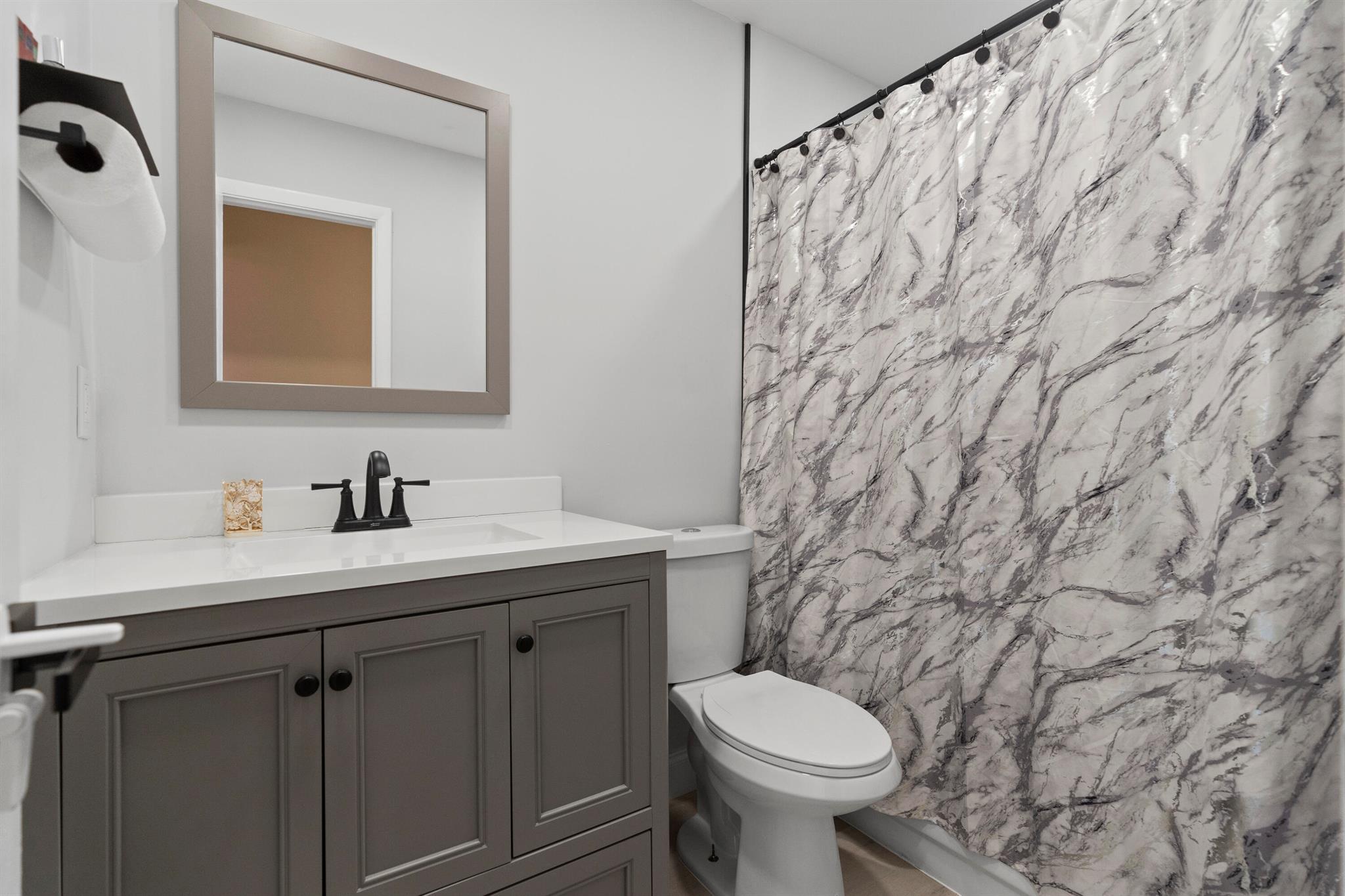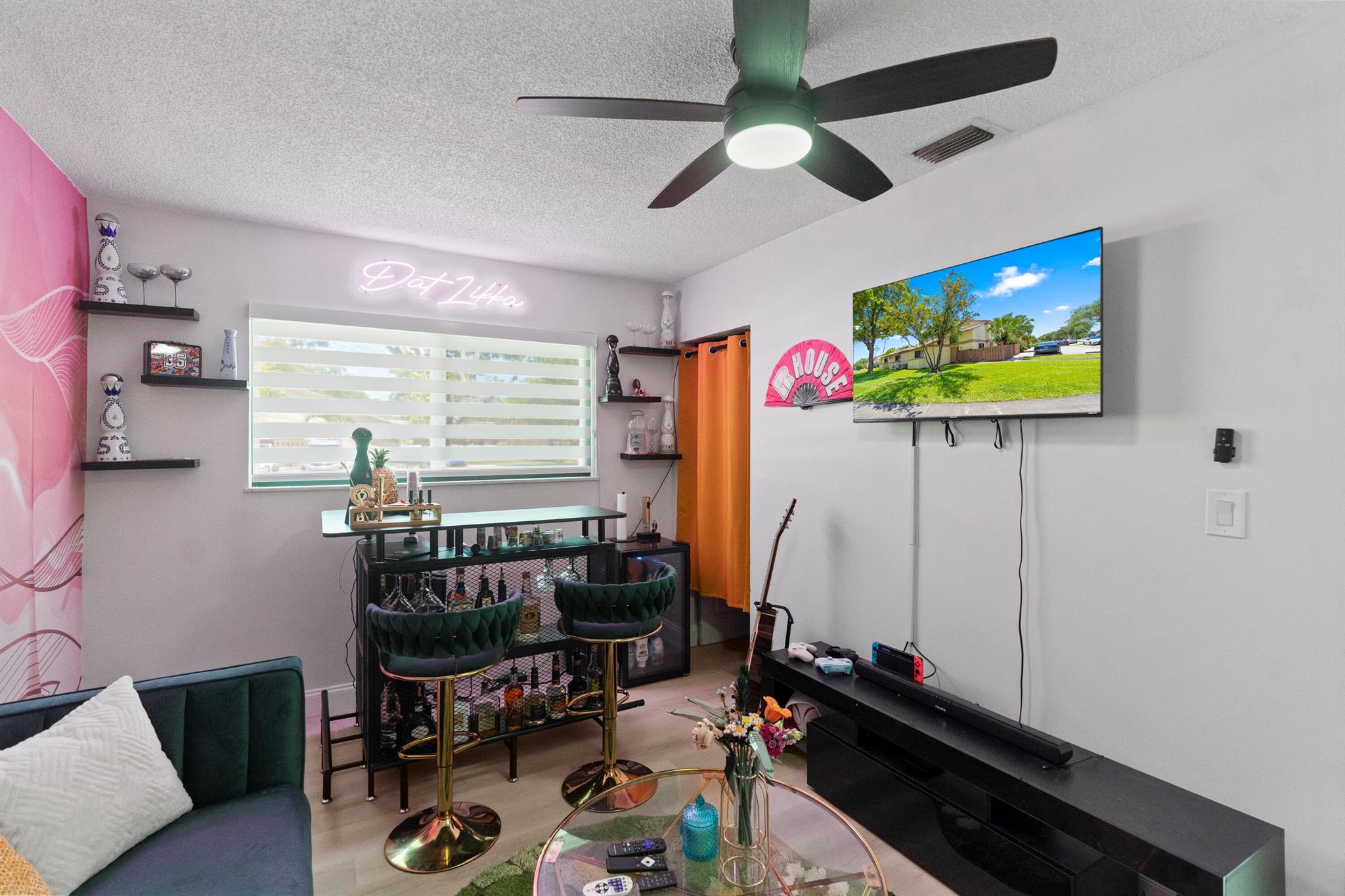 Come see this beautifully renovated, move-in ready, 3-bedroom, 2-bathroom corner townhome! This modern home offers an open floor plan, vaulted ceilings in the great room, and large windows with sliding glass doors that flood the space with natural light. Custom zebra blinds have been thoughtfully installed on the windows. The fully updated kitchen features wraparound quartz countertops, soft-close white cabinetry, subway tile backsplash, and a deep 10-inch black stainless steel sink with air-push disposal. The home boasts stylish waterproof grey-toned laminate flooring, updated lighting, remodeled bathrooms, and a cozy electric fireplace for added ambiance. Enjoy peace of mind with brand-new roof, newer water heater, impact windows and doors, and a full-size washer and dryer.
