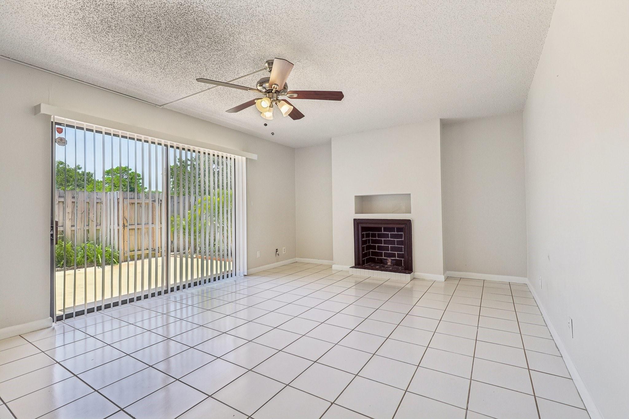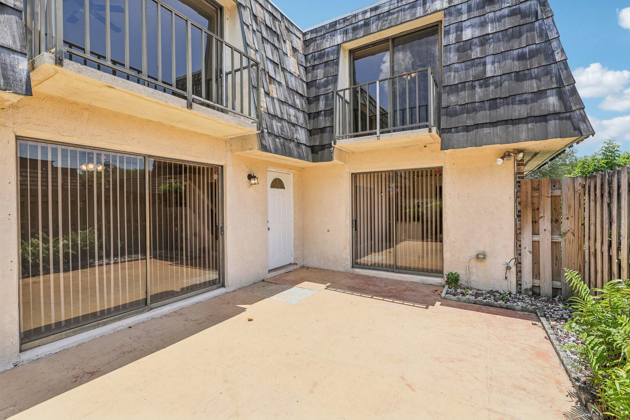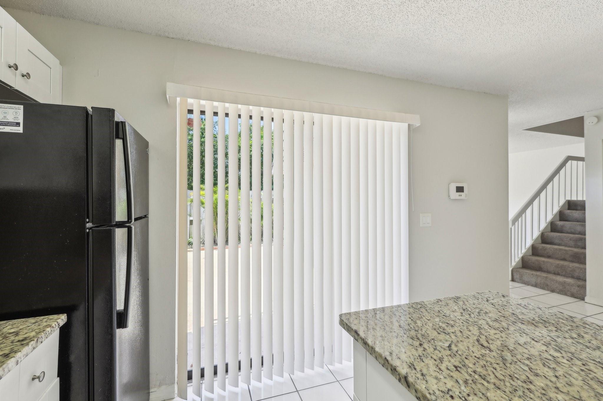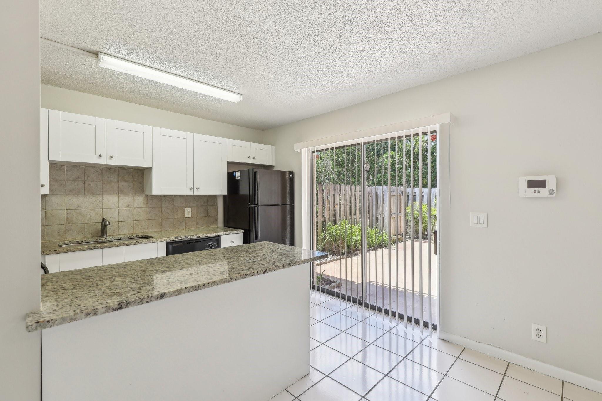 Tastefully updated 2-bedroom, 2-bath townhouse in Forest Lakes with 1,236 sq ft of well-designed space. Features include a modern kitchen with soft-close cabinets, granite counters, and stainless steel appliances; porcelain tile on the main level; and carpeted stairs. Both bathrooms offer floor-to-ceiling tiled walk-in showers and sleek vanities. Enjoy lake views from both bedrooms and a newly fenced private courtyard. Additional upgrades include a tankless water heater, fresh interior paint, and updated ceiling fans. Located at the back of the community for added privacy and just minutes from I-95, PBI Airport, shopping, dining, and the beach. Please note: HOA fee is $345.51 quarterly, plus $950.50 quarterly for HOA insurance.