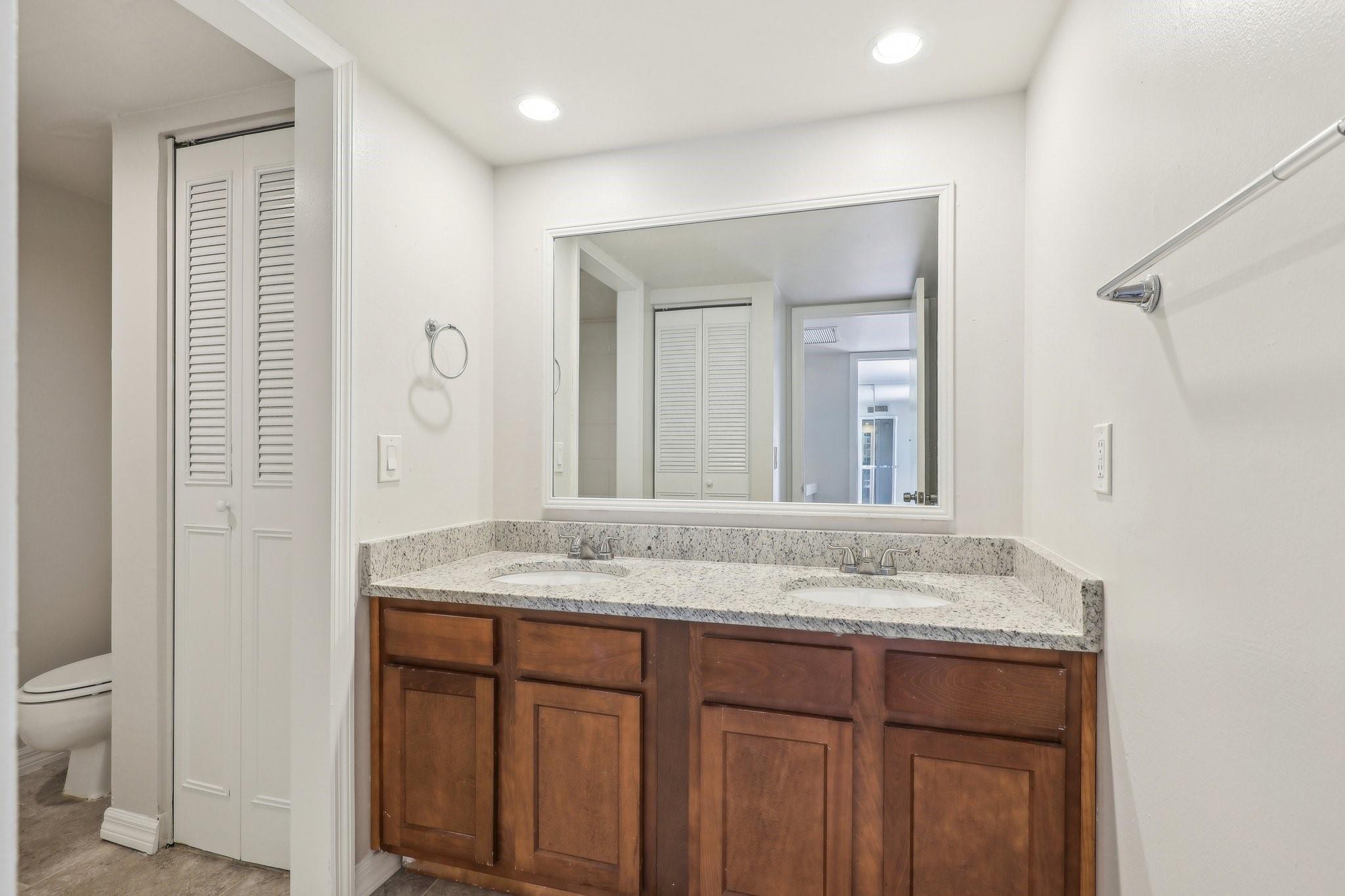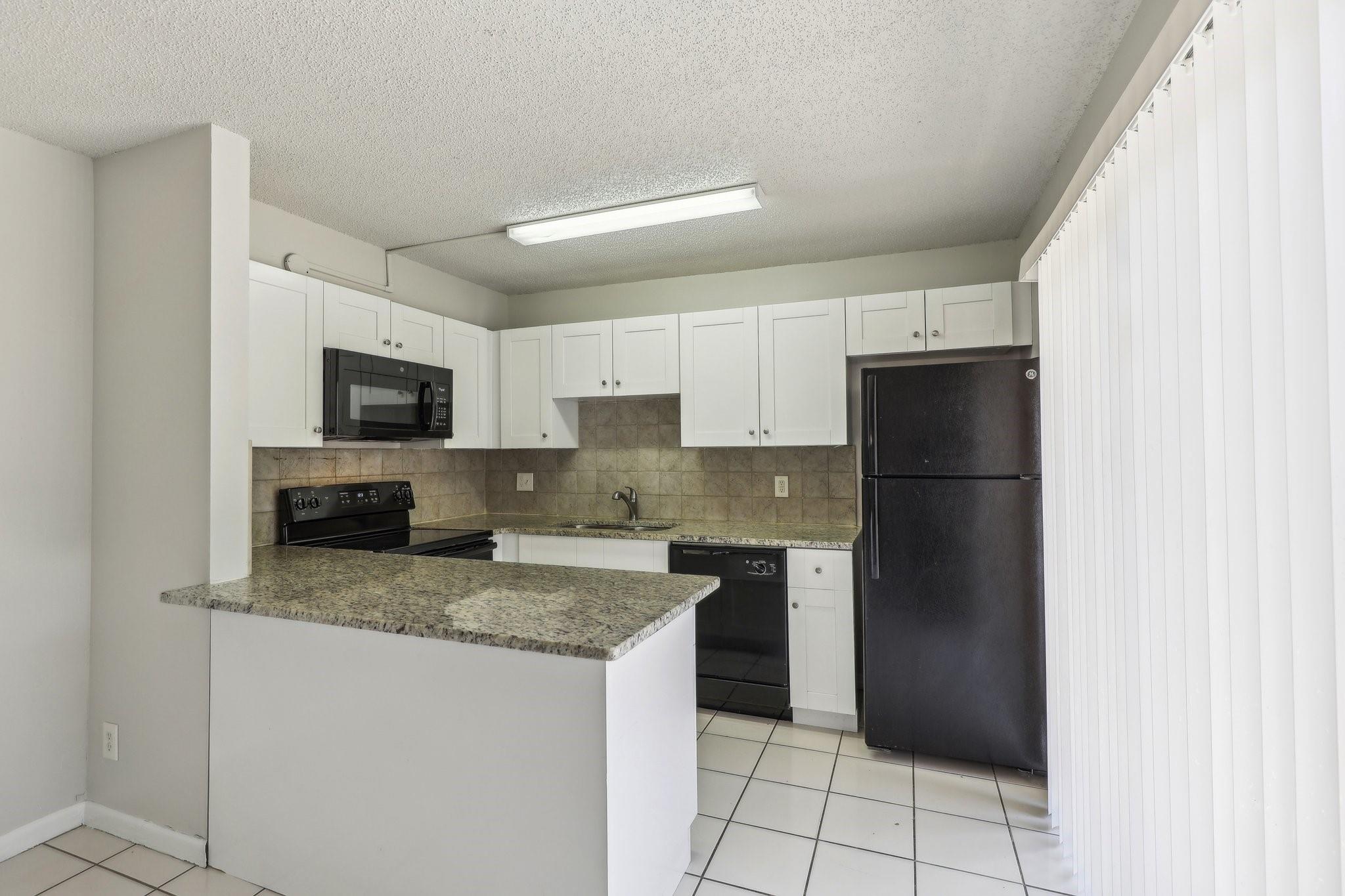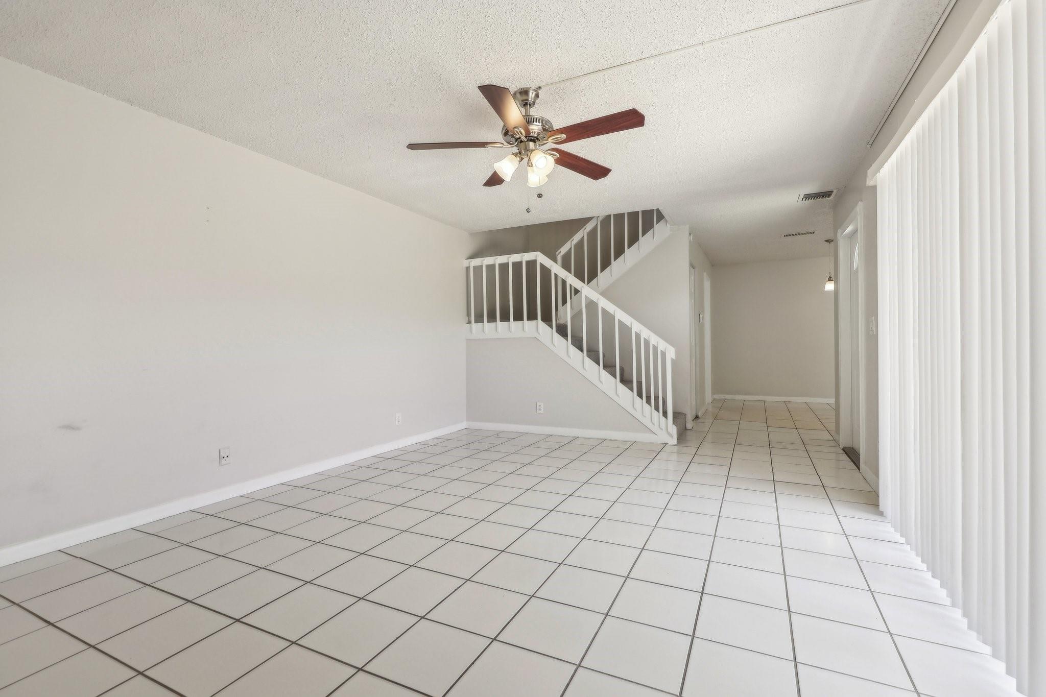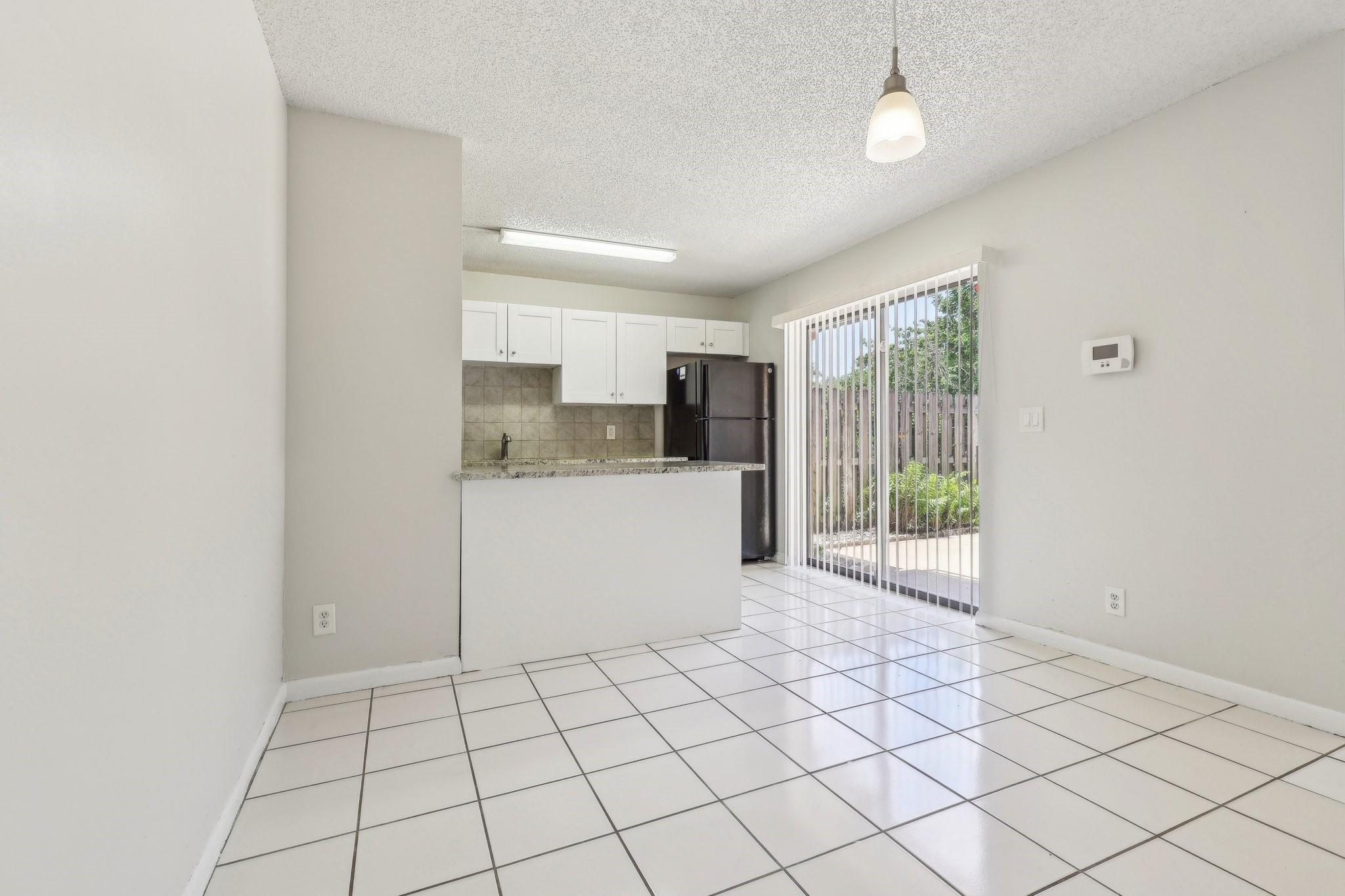 Tastefully updated 2-bedroom, 2-bath townhouse in Forest Lakes with 1,236 sq ft of well-designed space. Features include a modern kitchen with soft-close cabinets, granite counters, and stainless steel appliances; porcelain tile on the main level; and carpeted stairs. Both bathrooms offer floor-to-ceiling tiled walk-in showers and sleek vanities. Enjoy lake views from both bedrooms and a newly fenced private courtyard. Additional upgrades include a tankless water heater, fresh interior paint, and updated ceiling fans. Located at the back of the community for added privacy and just minutes from I-95, PBI Airport, shopping, dining, and the beach. Please note: HOA fee is $345.51 quarterly, plus $950.50 quarterly for HOA insurance.