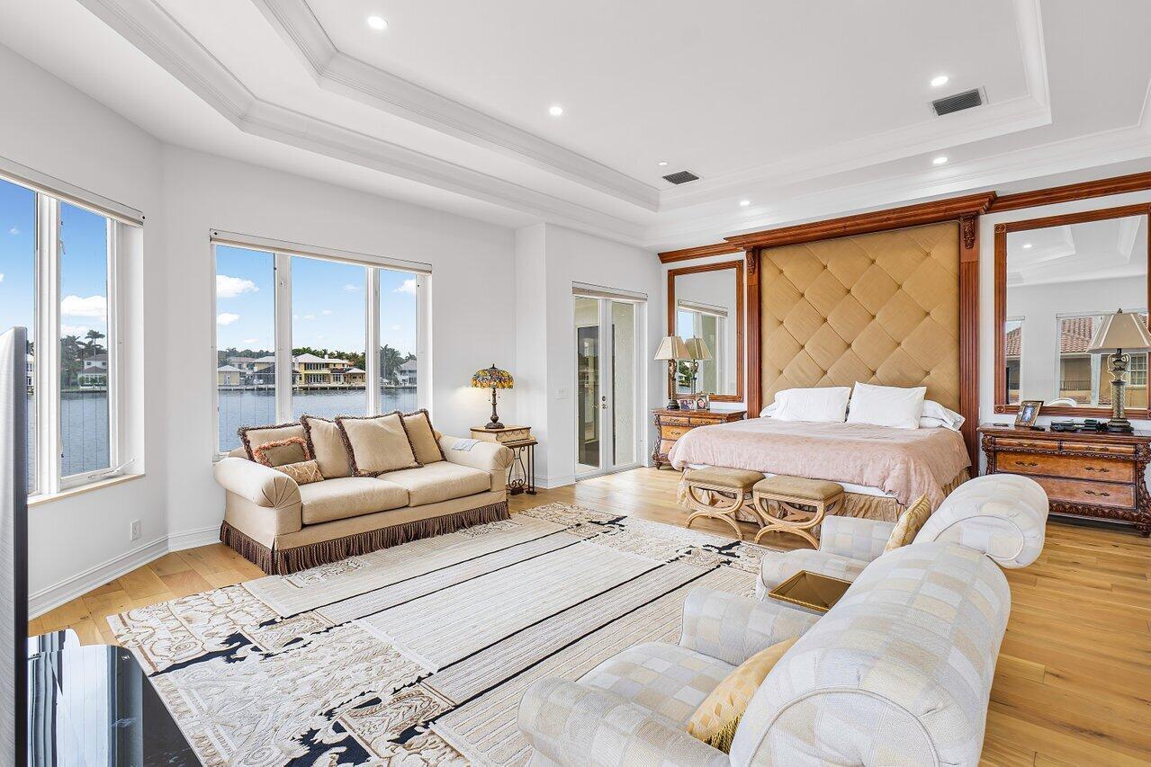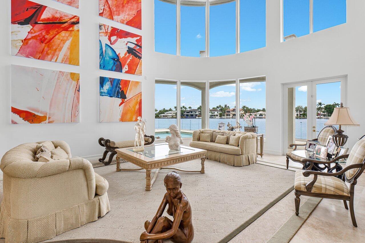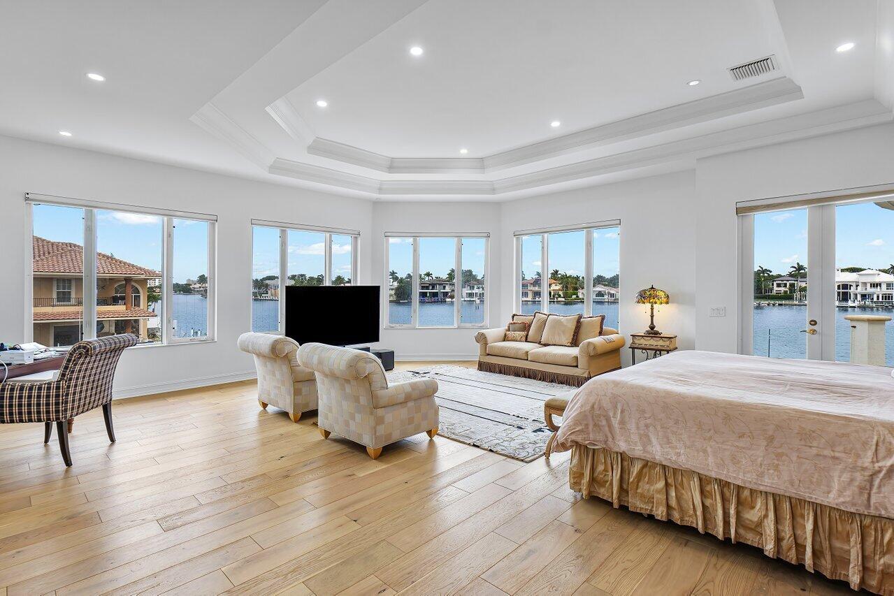 Privately Gated Waterfront Estate with Unmatched Intracoastal Views Nestled on an oversized point lot, this extraordinary estate boasts sweeping, unobstructed Intracoastal views across a stunning 600-foot-wide expanse. A dream for boating enthusiasts, the property features 85 feet of direct Intracoastal frontage and an additional 100 feet along the canal, creating a protected cove perfect for docking your yacht. Inside, the home's thoughtfully designed floor plan offers breathtaking water views from every room and bedroom. The primary suite is a serene retreat, where you can wake up to spectacular sunrises over the water each morning.