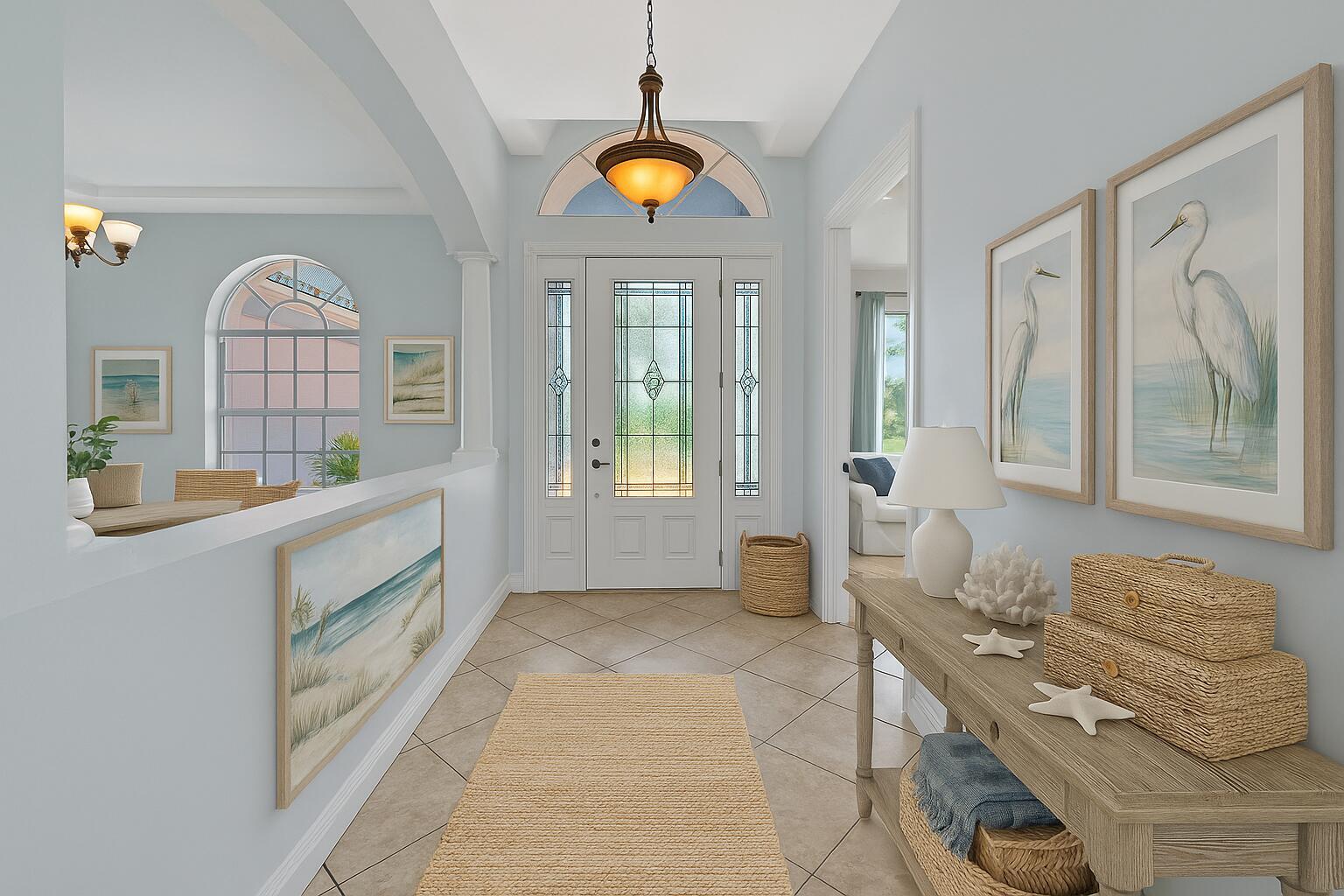 The photos have been virtually staged and enhanced to show the many wonderful options that this home has to offer. Welcome to this stunning custom-built home perfectly situated on a spacious corner lot, featuring a grand circular driveway with ample parking for multiple vehicles. From the moment you arrive, you'll be captivated by the elegant architectural details and thoughtful design that set this home apart.Step inside to discover gorgeous tile flooring that flows seamlessly throughout, highlighted by custom arched doorways, stately columns, and elegant tray ceilings that add a touch of sophistication to every room. This expansive residence offers 4 bedrooms and 3.5 baths, thoughtfully designed to combine comfort with luxury.