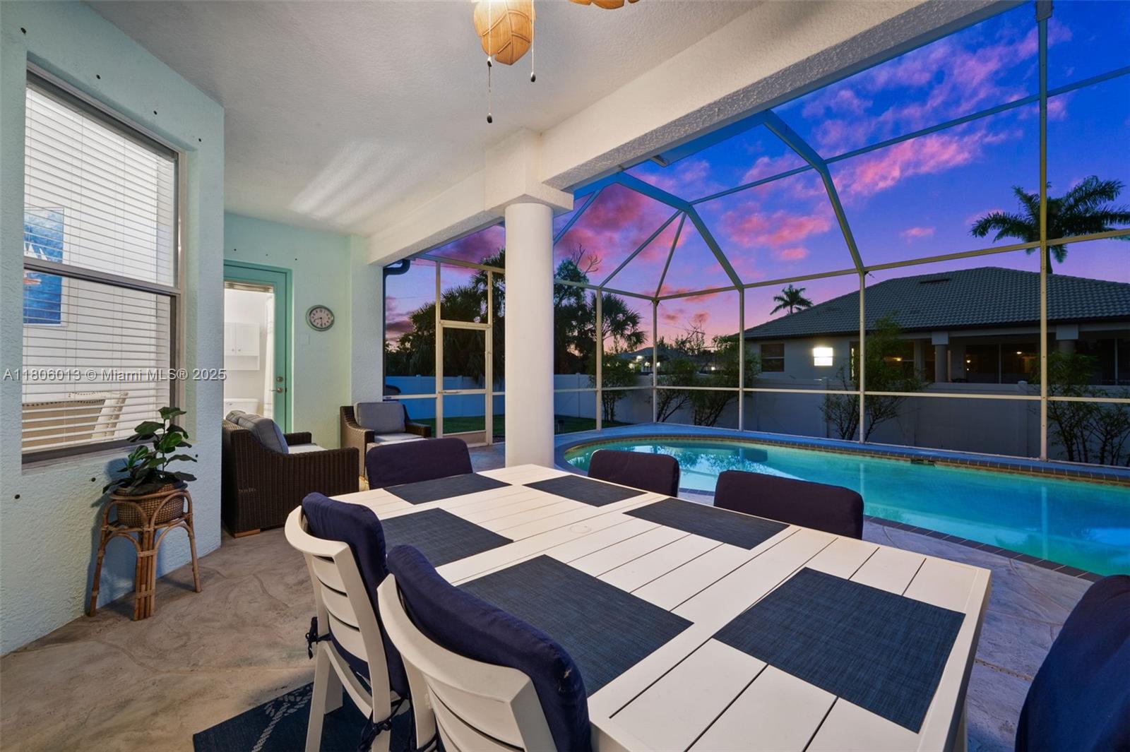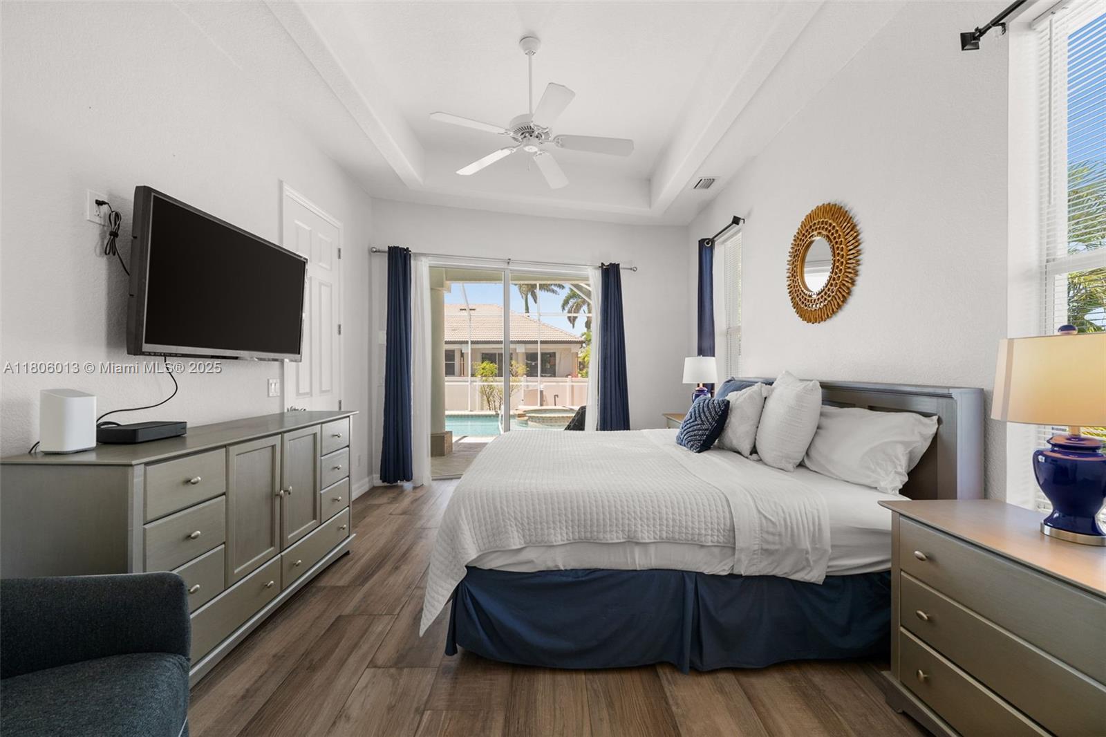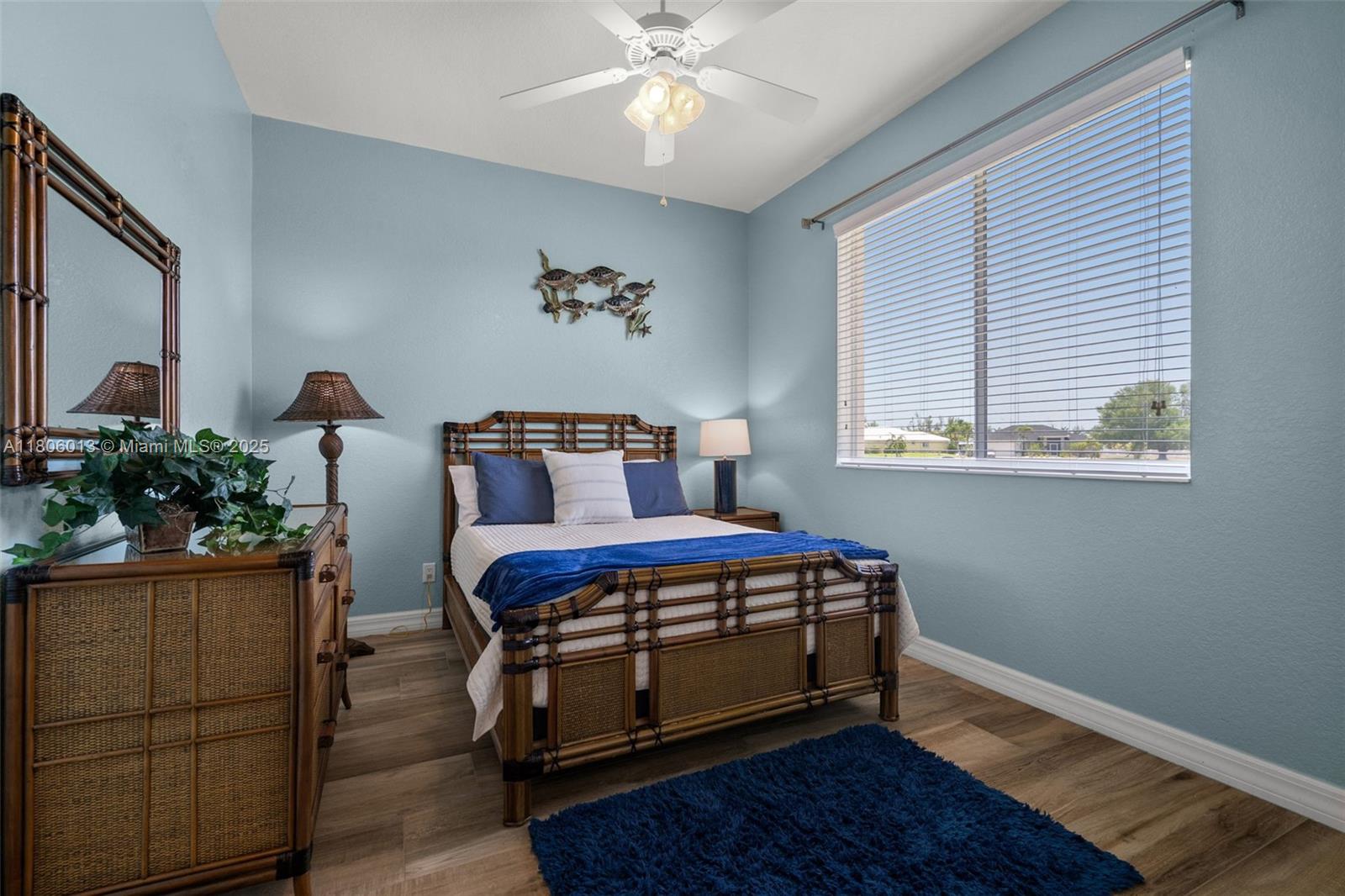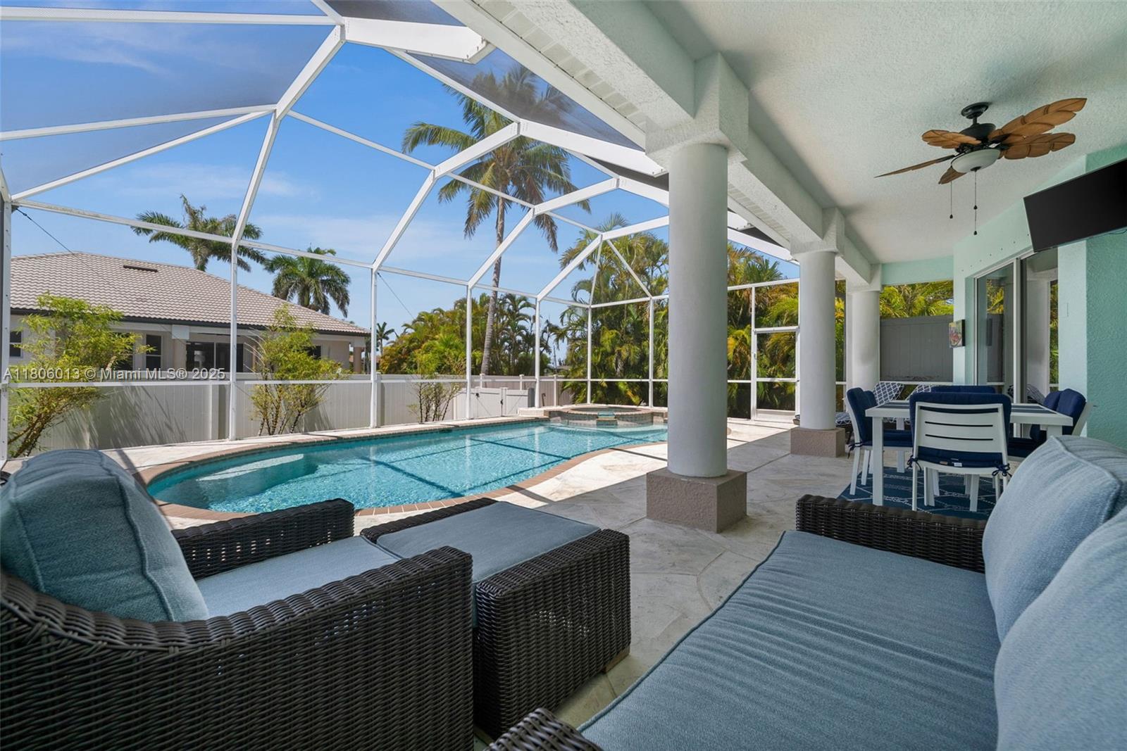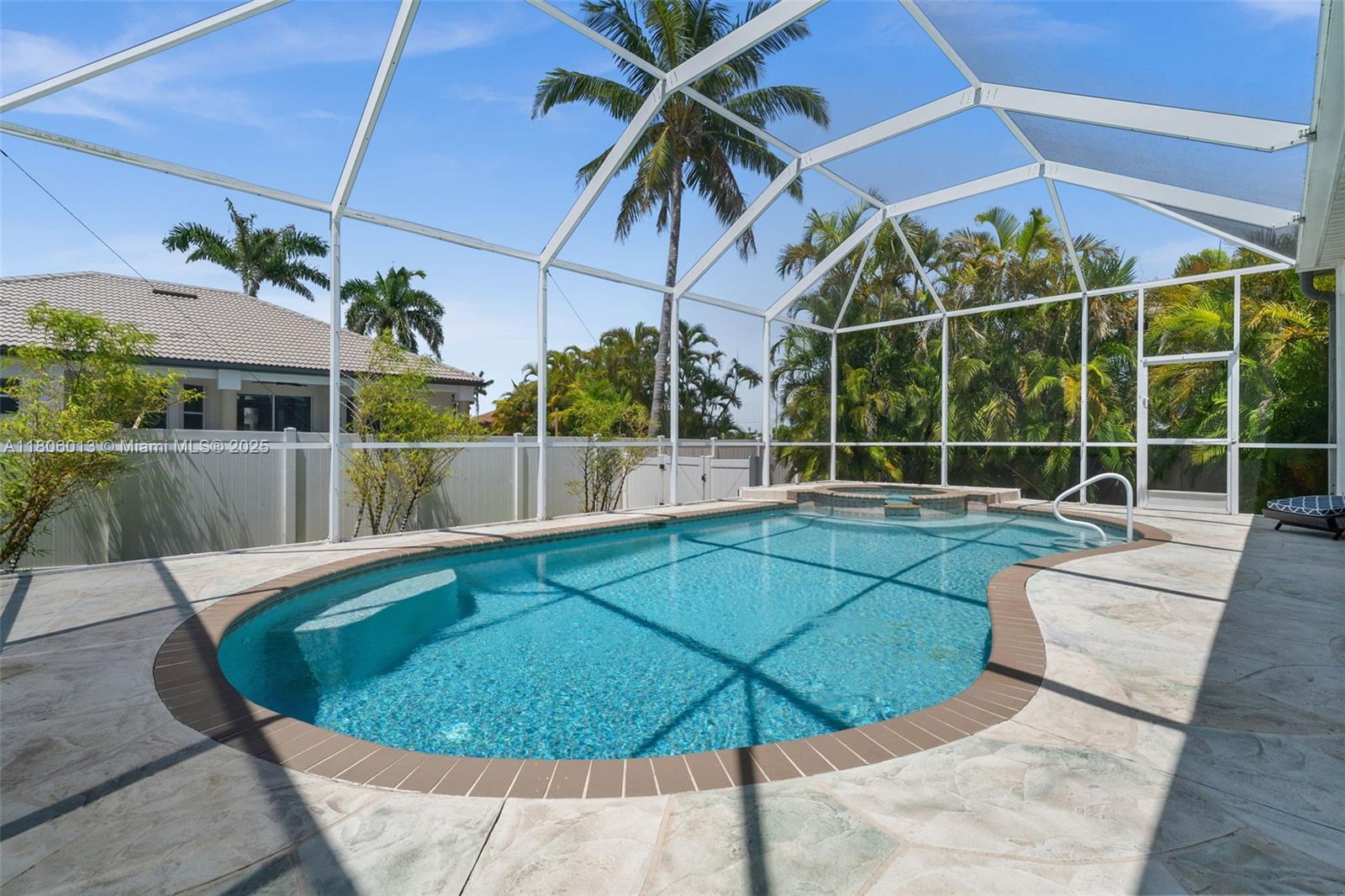Turnkey 3BR/2BA pool home on oversized corner lot in SW Cape Coral! Fully furnished with high-end decor and 1,876 sq ft of open living space. Features soaring ceilings, tile floors, double glass entry, and spacious kitchen with wrap-around island and stainless appliances. Master suite includes dual sinks, soaking tub, and walk-in shower. All bedrooms have walk-in closets. Pool bath opens to screened lanai with heated pool, spa, and stamped concrete deck. Surrounded by tropical landscaping and a privacy fence. Near parks, boat ramp, shopping, and dining. Roof and pool pump new in 2022. Proven vacation rental!