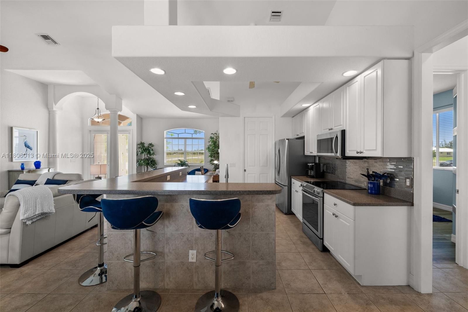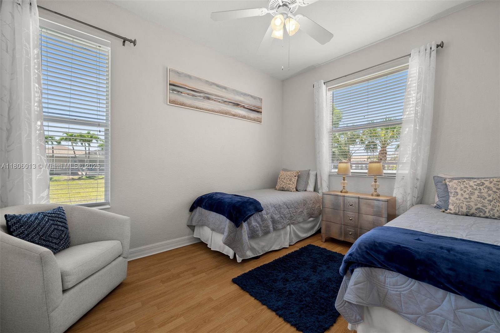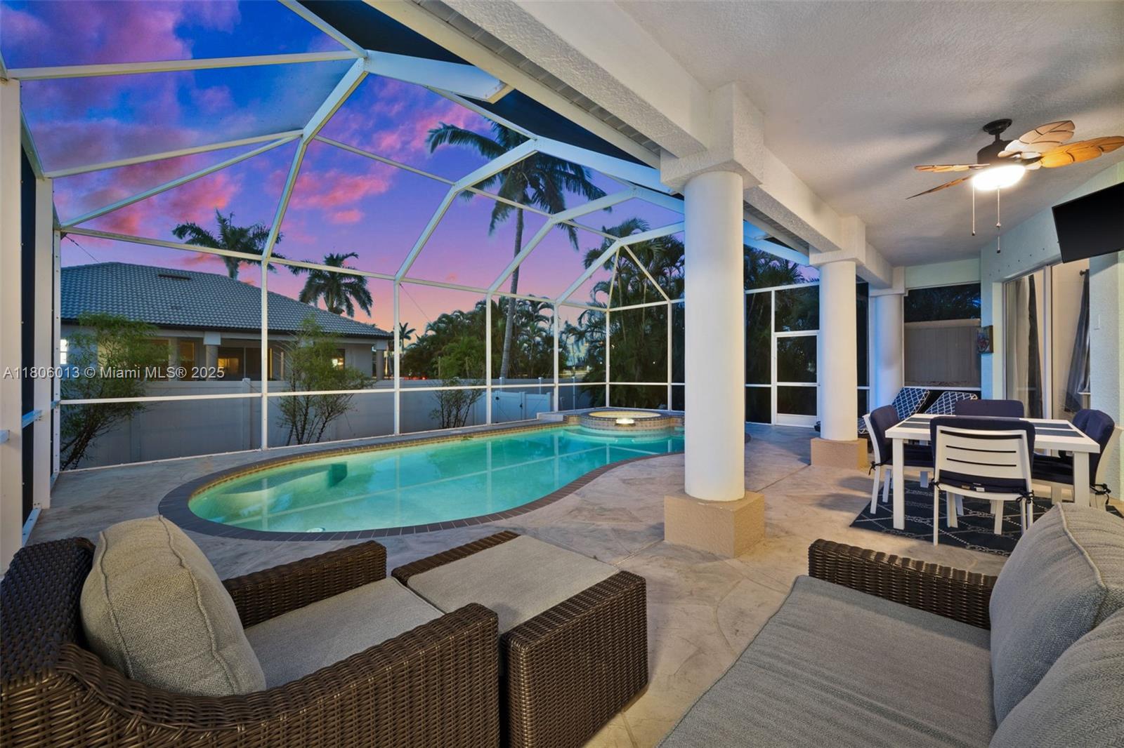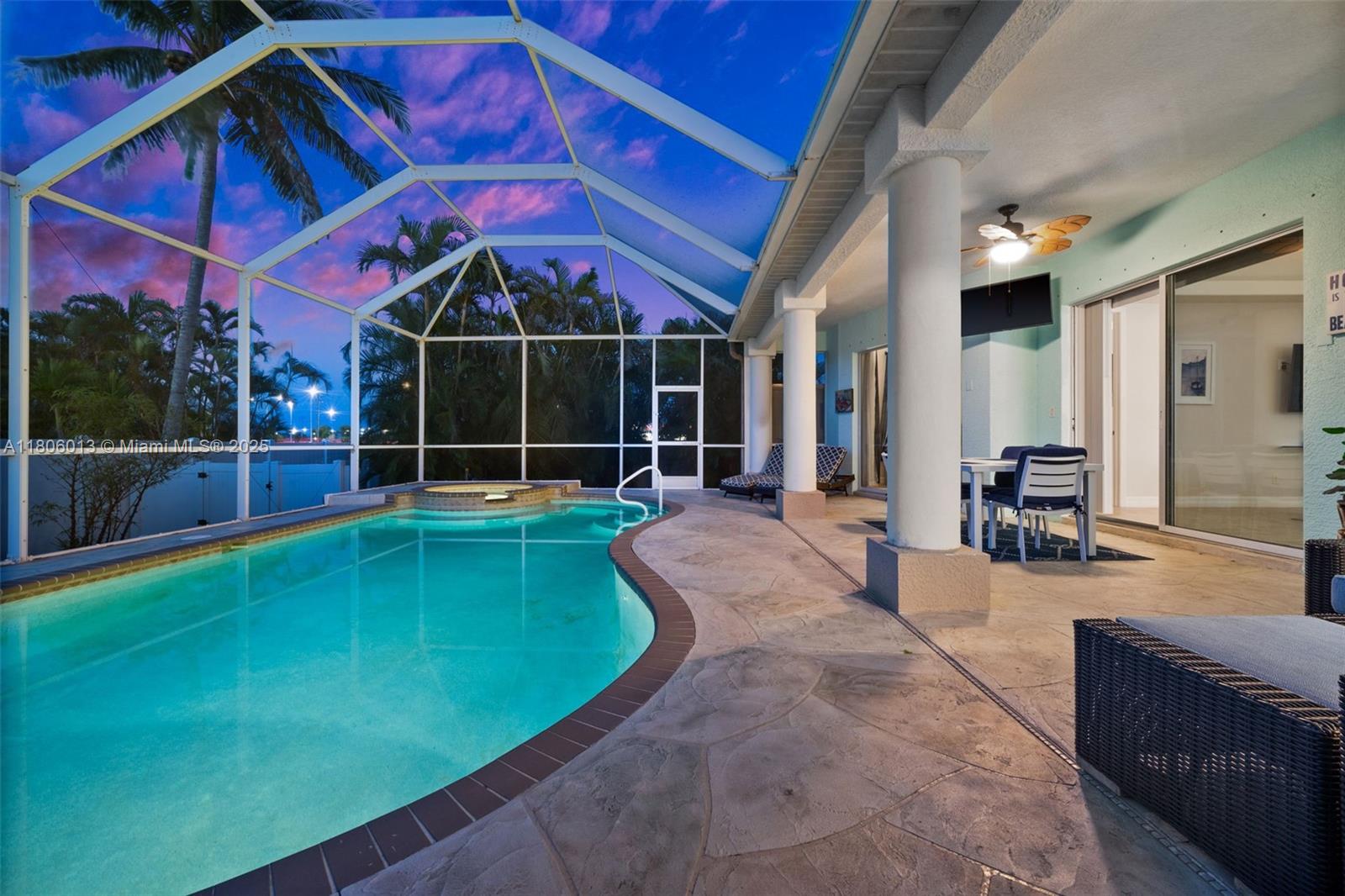 Turnkey 3BR/2BA pool home on oversized corner lot in SW Cape Coral! Fully furnished with high-end decor and 1,876 sq ft of open living space. Features soaring ceilings, tile floors, double glass entry, and spacious kitchen with wrap-around island and stainless appliances. Master suite includes dual sinks, soaking tub, and walk-in shower. All bedrooms have walk-in closets. Pool bath opens to screened lanai with heated pool, spa, and stamped concrete deck. Surrounded by tropical landscaping and a privacy fence. Near parks, boat ramp, shopping, and dining. Roof and pool pump new in 2022. Proven vacation rental!