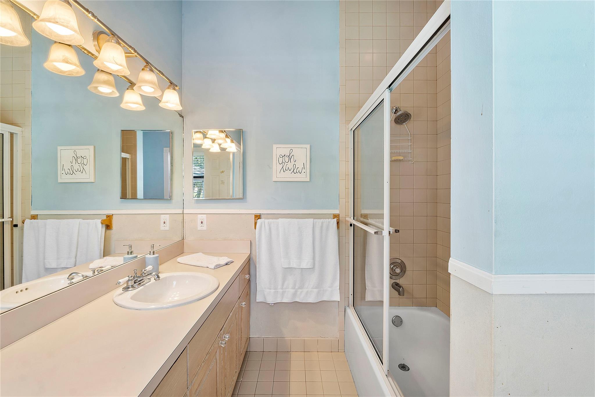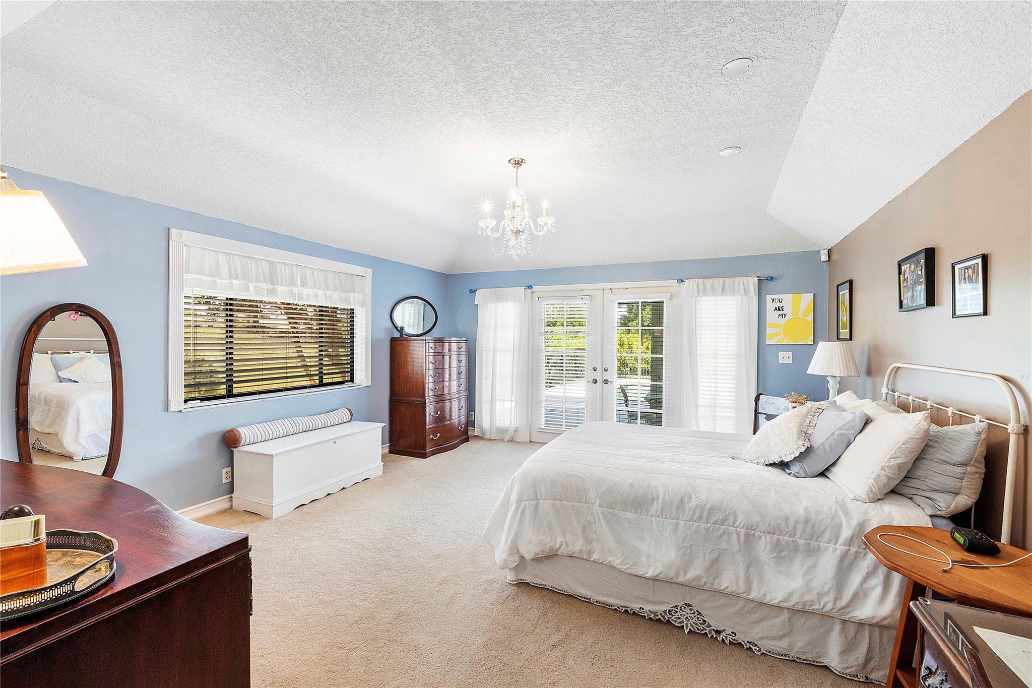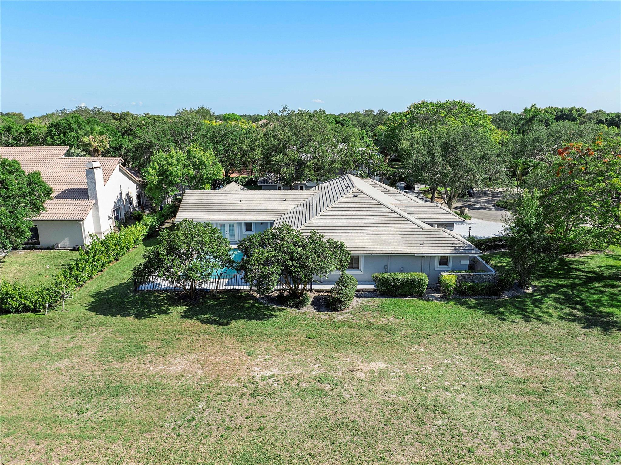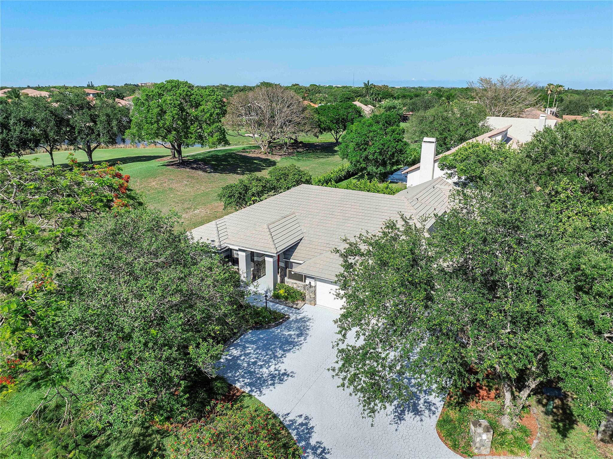 Tucked away on a quiet cul-de-sac in the desirable Eagle Trace community, this custom-built home offers privacy, comfort, and space. Overlooking the golf course, enjoy peaceful views from your large, covered patio and fully fenced pool area. Thoughtfully designed split-bedroom layout features five bedrooms with spacious closets, including two en-suite rooms, one with its own cozy sitting area. Fifth bedroom doubles perfectly as a home office. Clean finishes and classic details: beautiful hardwood floors, cathedral and vaulted ceilings (no popcorn), recessed lighting, casement-trimmed windows, and elegant French doors throughout. Enjoy the comfort of large bedrooms with walk-in closets and a three-zone AC. Home features hurricane protection and offers various community amenities.