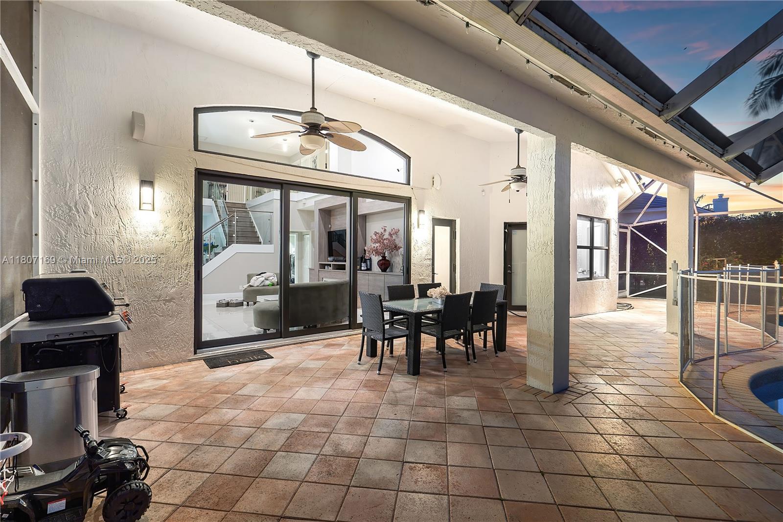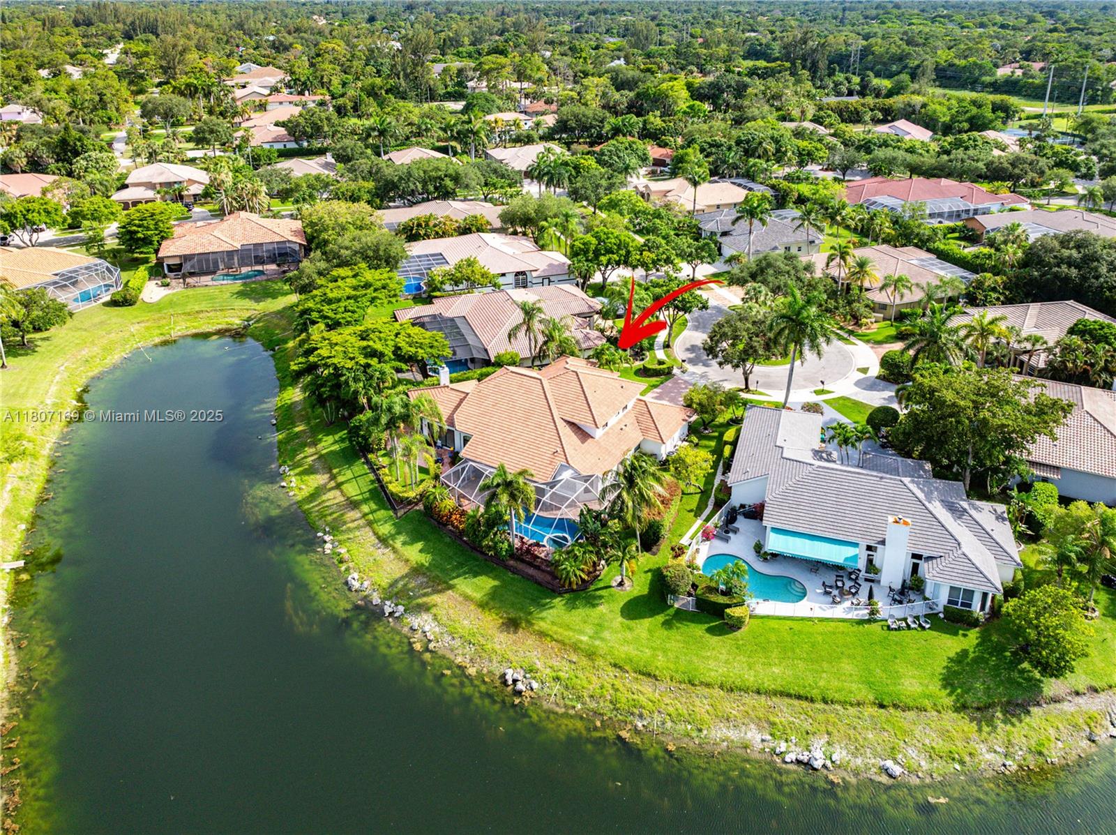 Redefined luxury waterfront residence. Perfectly positioned on a quiet cul-de-sac, it boasts 180 feet of serene water frontage and breathtaking panoramic views. Dramatic, open-concept, features soaring ceilings, striking glass staircase, updated marble floors. The gourmet chef's kitchen is a dream, seamlessly flowing into expansive living and dining spaces—ideal for effortless entertaining. Unwind in the lavish first-floor primary suite. The versatile loft can easily be a 5th bedroom, while the impressive media/rec room offers endless possibilities for fun and relaxation. Outdoors, enjoy both screened and open patios, a sparkling heated salt pool and spa, and lush, meticulously landscaped grounds. Full impact windows and a whole-house generator ensure complete security and comfort.