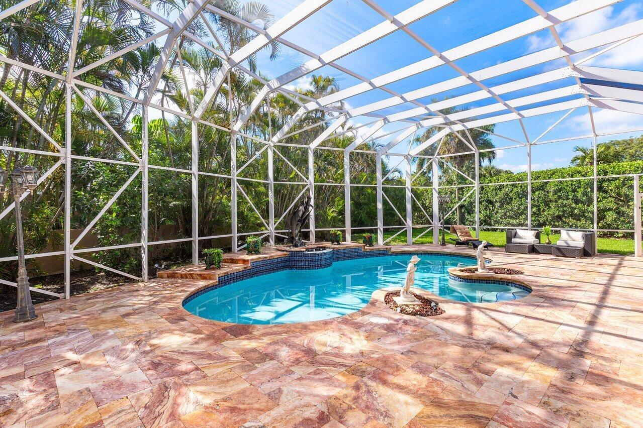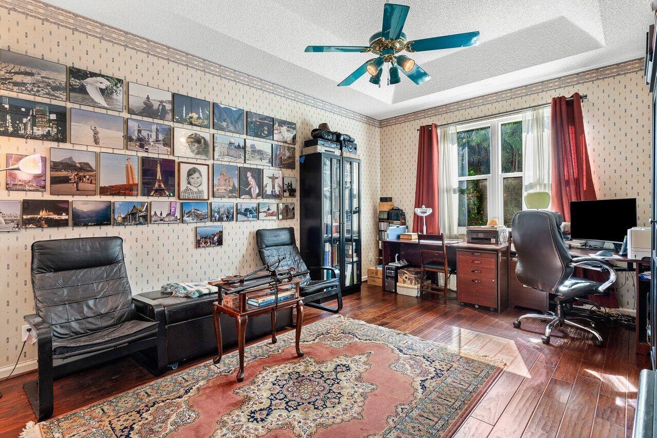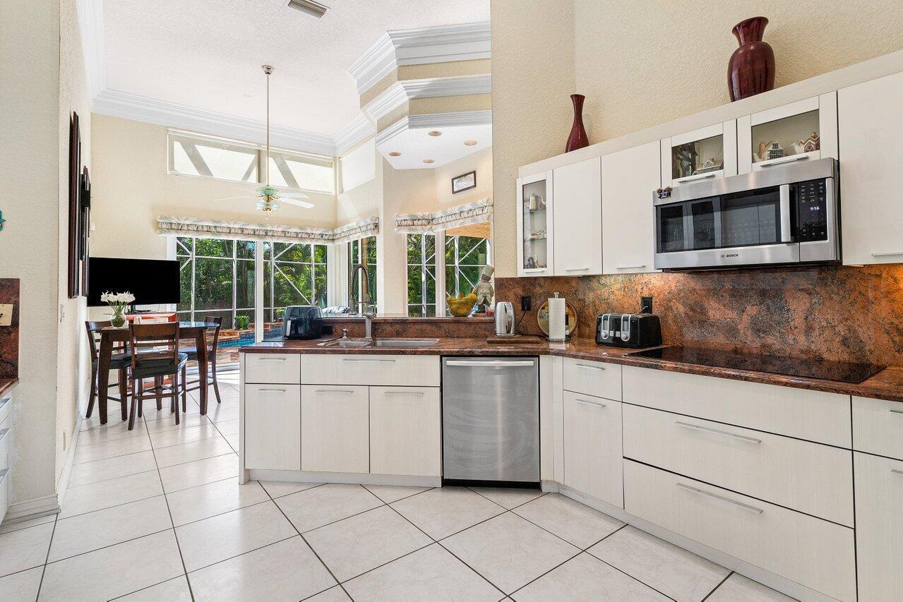 A rare opportunity in the highly desirable Parkside community of East Boca Raton! Situated on a premium point lot in a quiet cul-de-sac, this beautifully maintained home sits on nearly half an acre, offering exceptional space, privacy, and flexibility -- all with a low HOA.This spacious 2,823 sq ft home features 3 bedrooms, 2.5 baths, plus a dedicated office/den that can easily serve as a 4th bedroom. The elegant living room showcases a natural coral wood-burning fireplace and a wet bar, perfect for entertaining, while the formal dining room is highlighted by a unique, eye-catching chandelier.The modernized kitchen is equipped with granite countertops, high-end Bosch stainless steel appliances, and abundant cabinetry -- a perfect blend of functionality and style. Throughout the home,