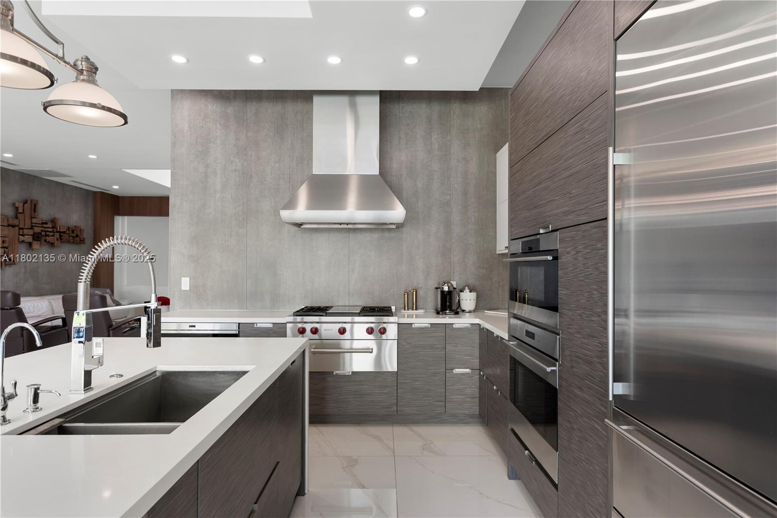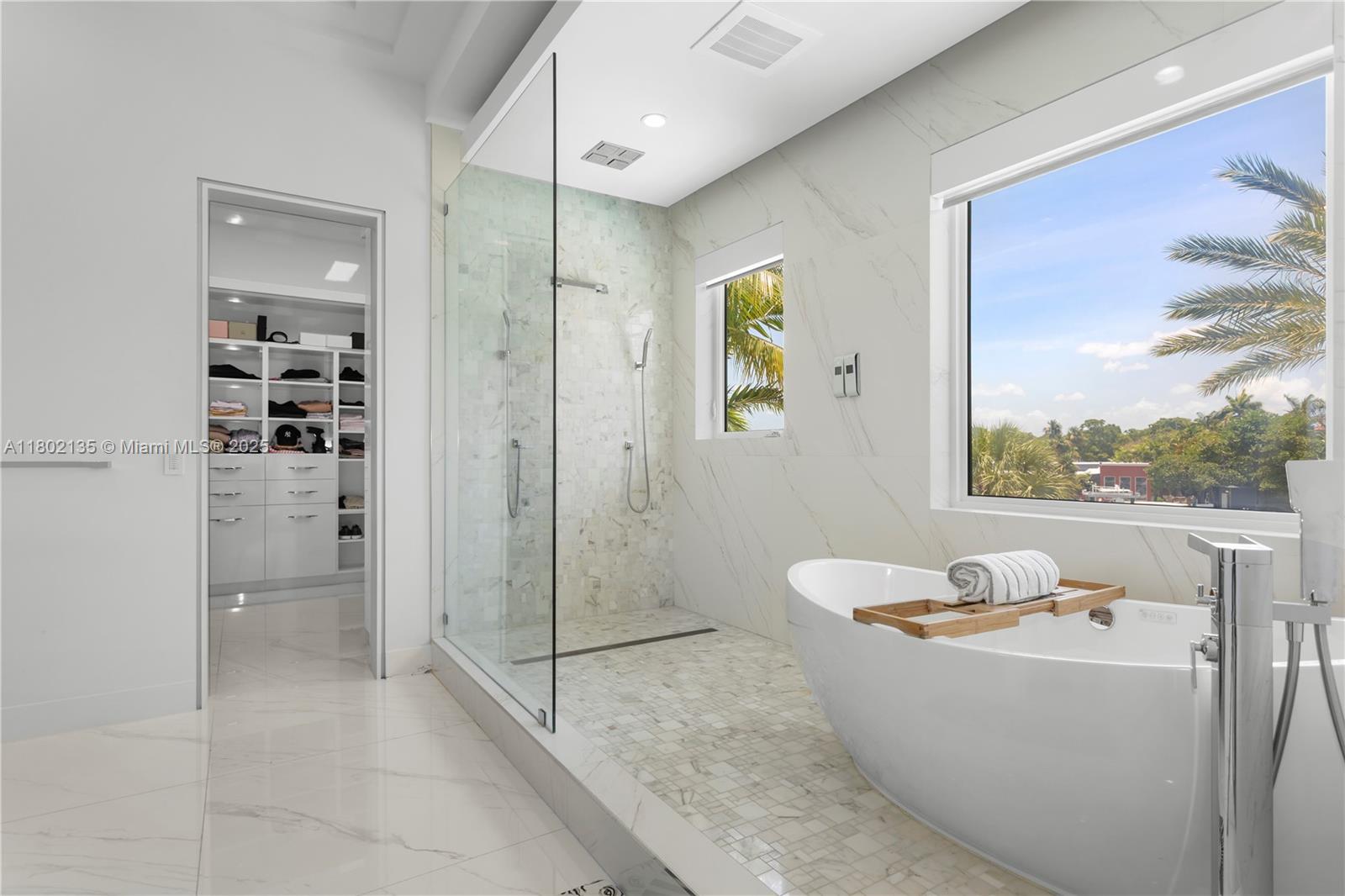 Stunning brand-new waterfront estate in Keystone Point! This elevated contemporary masterpiece features 5 beds, gym, 2 offices, panic room, 2 laundry rooms (one on each floor), and a 4-car garage. Enjoy jaw-dropping sunsets over an ultra-wide canal with no fixed bridges and a 50,000 lb boatlift. Luxury abounds with top-tier finishes, whole-home water filtration/purifier, heated saltwater pool, and jacuzzi. The outdoor oasis includes a summer kitchen with gas grill, smokers, ice maker & more. Primary suite overlooks the water and sunset. Minutes to Bal Harbour, beaches, and fine dining.