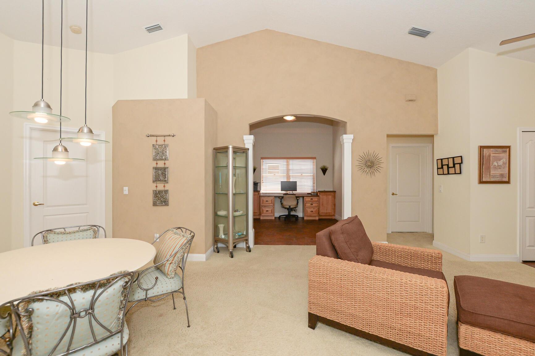 Fabulous Diamond Model in ''Isle of Tuscany'' at Kings Isle (55+ community in the heart of St Lucie West. Planned community close to shopping, restaurants, doctors, golf courses & even the NY Mets Spring Training. Features 2 BR's, Den with built-in's, 2 BA's, 1 CG & storage shed. Enjoy outdoor space, Front Porch & screen enclosed Lanai w/ vinyl windows. Details include Vaulted ceilings, spacious floor plan offers Great Room perfect to entertain & move in condition. Eat in Kitchen includes updated appliances & cabinet doors, quartz counter tops plus pantry. Custom closets, split floor plan, laundry room includes washer & dryer. Home has hurricane shutters stored in the Shed. HOA includes manned gated security, common areas, lawn care, cable, internet & The Royal Club! Seller to pay title.
