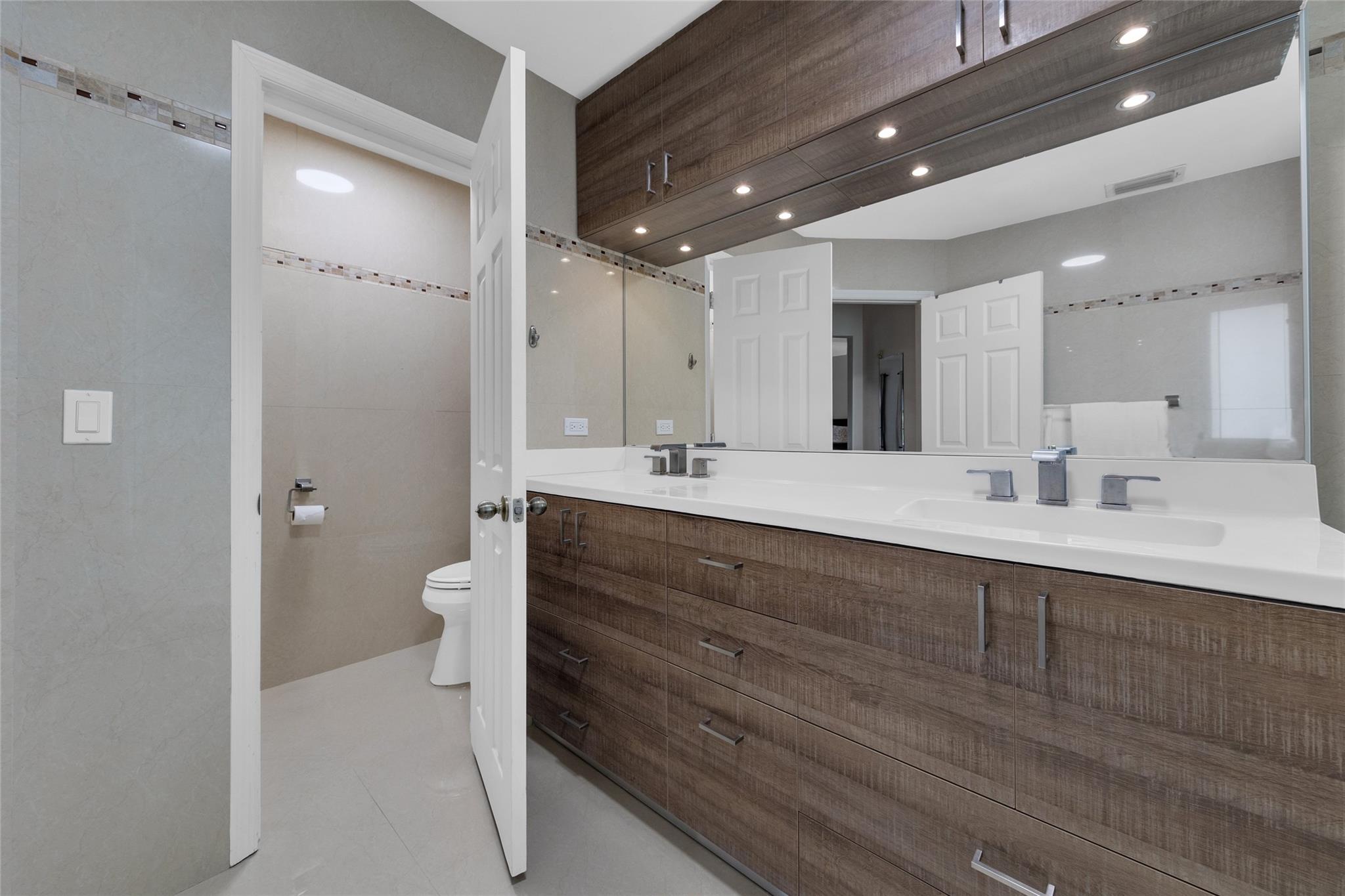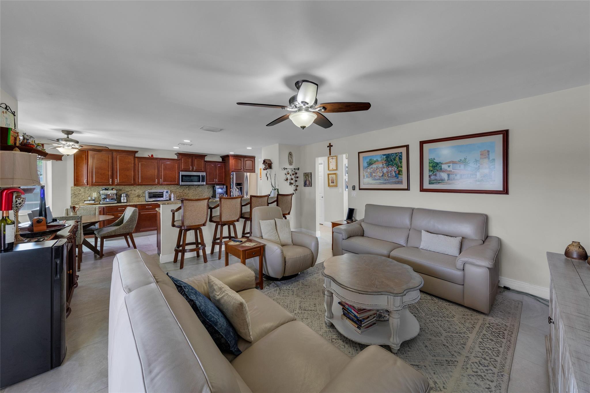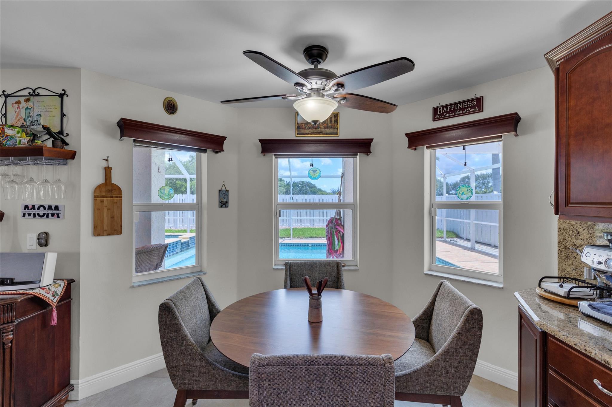 Rare 5 bedroom model with full bedroom & bathroom downstairs. Soaring double height ceiling in main living area along with open concept kitchen/family room. Primary suite upstairs is HUGE. Original owners have updated the ROOF (2021) and all bathrooms with contemporary look. Sparkling screen-enclosed saltwater pool has hot tub - relax and unwind! Home has IMPACT windows and doors, reverse osmosis water filtration system and gas water heater & dryer. Stove can be convered from electric to gas if desired. Extra large expanded driveway easily parks 4 cars - plus more in the 2 car garage. Appliance package is recent with double convection oven. 5 ton A/C is 4 years old. Imported Spanish porcelein tiles in downstairs living area.