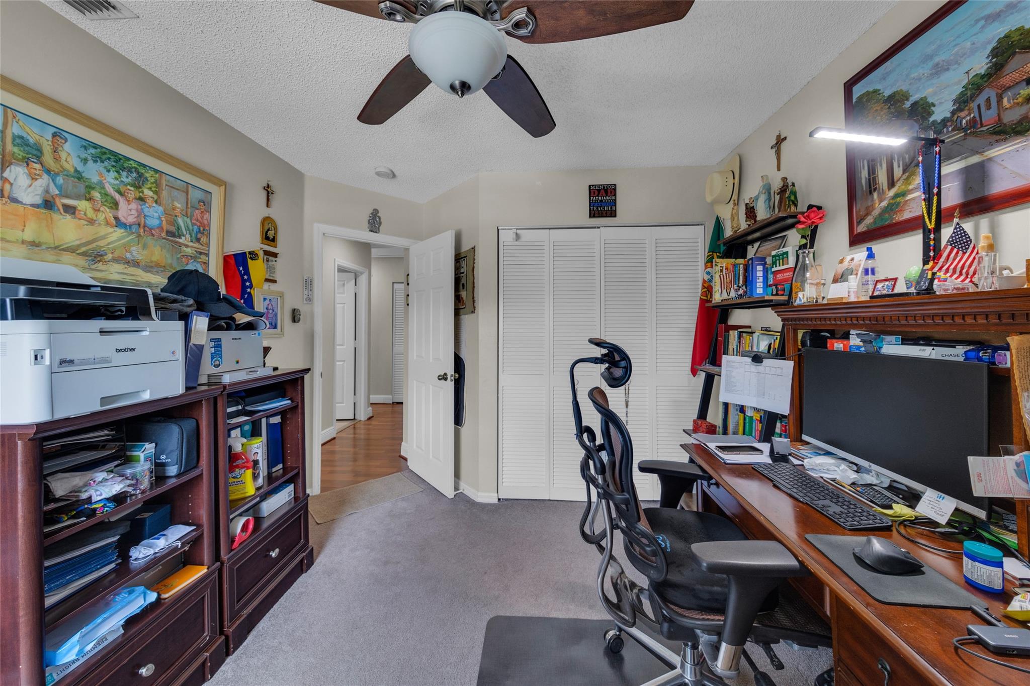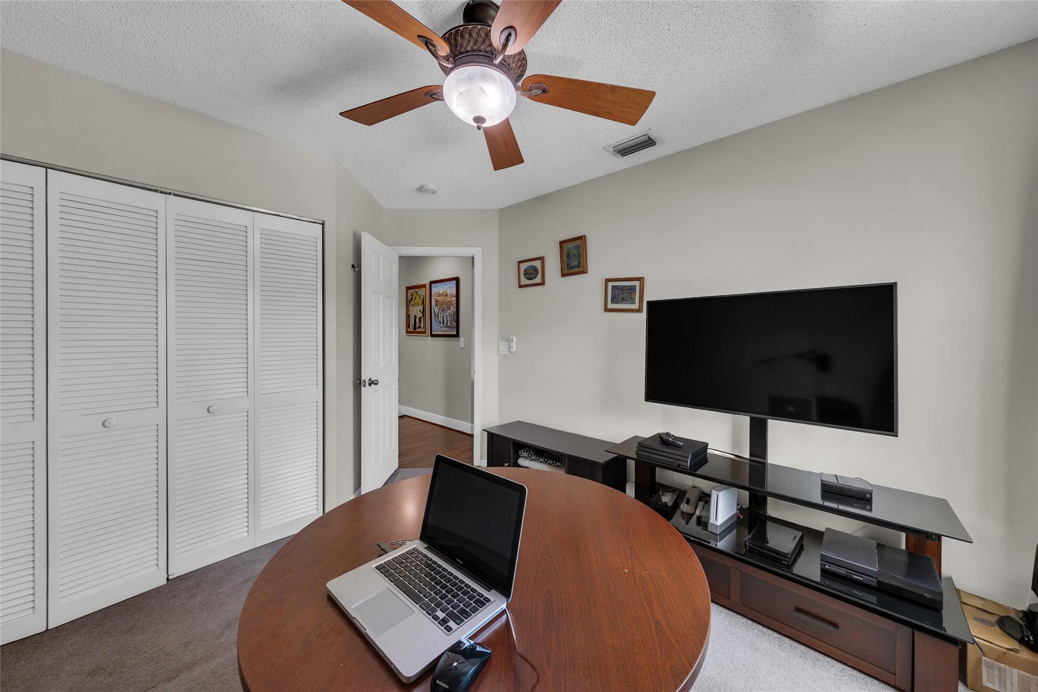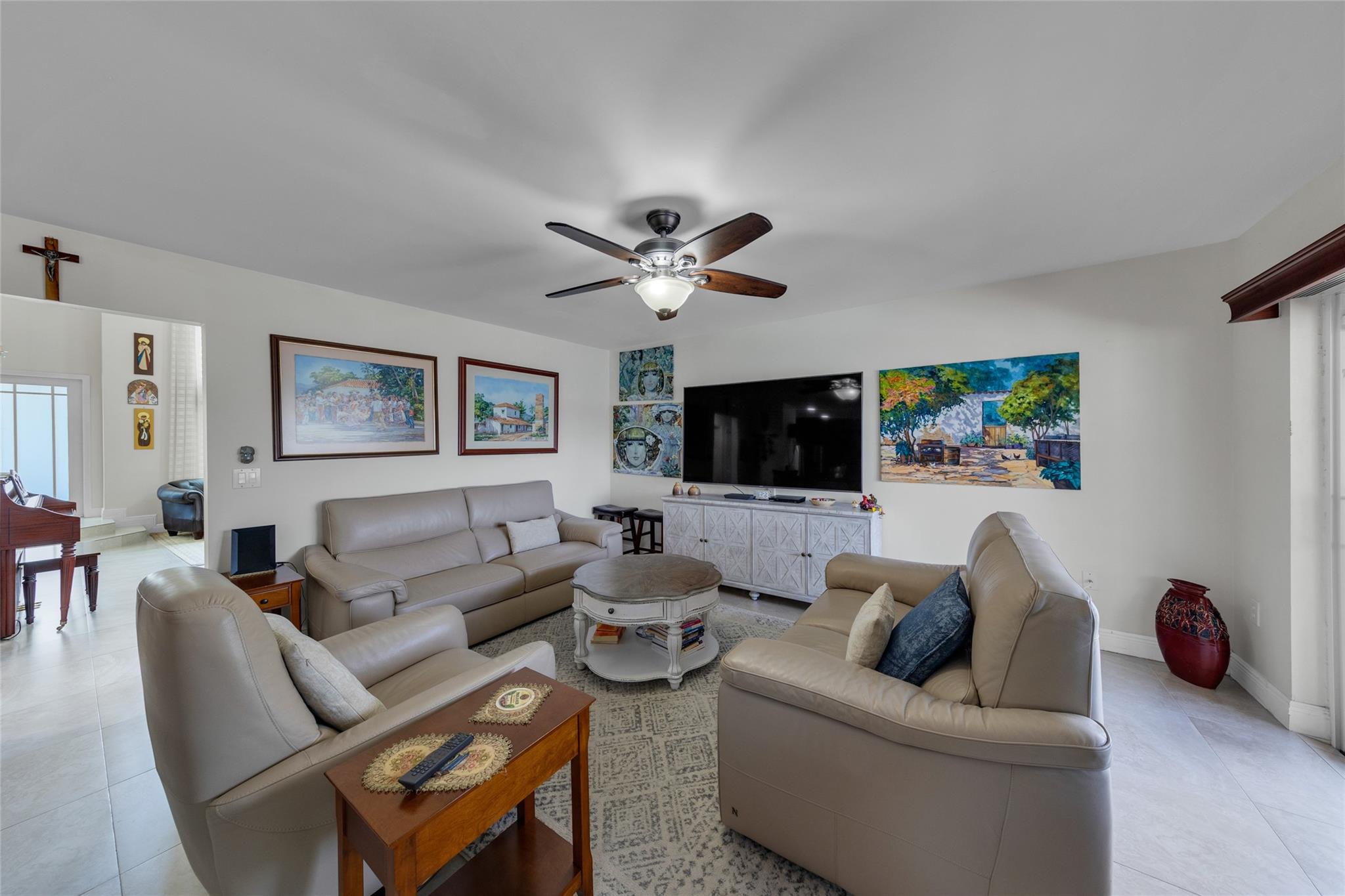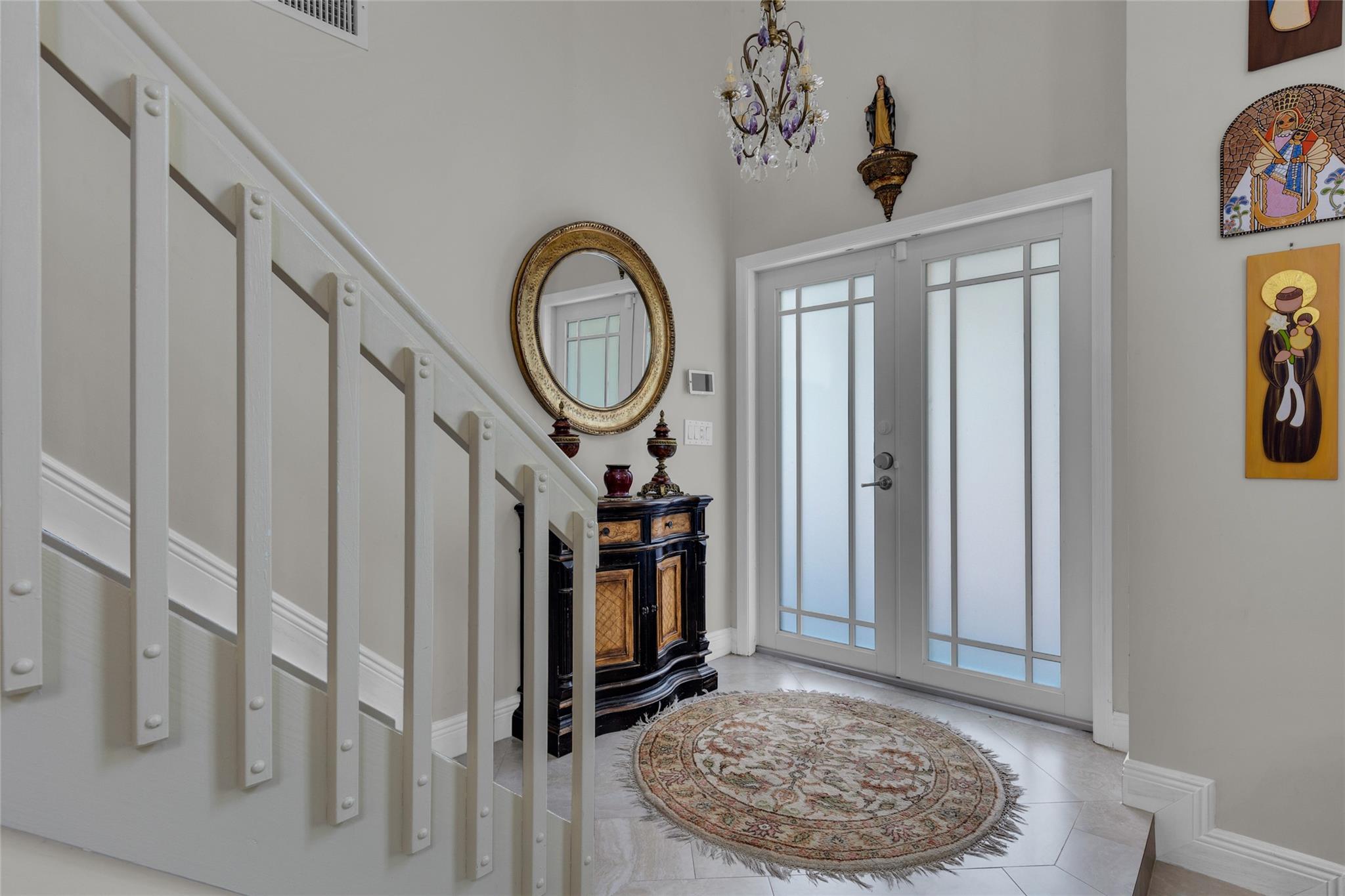 Rare 5 bedroom model with full bedroom & bathroom downstairs. Soaring double height ceiling in main living area along with open concept kitchen/family room. Primary suite upstairs is HUGE. Original owners have updated the ROOF (2021) and all bathrooms with contemporary look. Sparkling screen-enclosed saltwater pool has hot tub - relax and unwind! Home has IMPACT windows and doors, reverse osmosis water filtration system and gas water heater & dryer. Stove can be convered from electric to gas if desired. Extra large expanded driveway easily parks 4 cars - plus more in the 2 car garage. Appliance package is recent with double convection oven. 5 ton A/C is 4 years old. Imported Spanish porcelein tiles in downstairs living area.