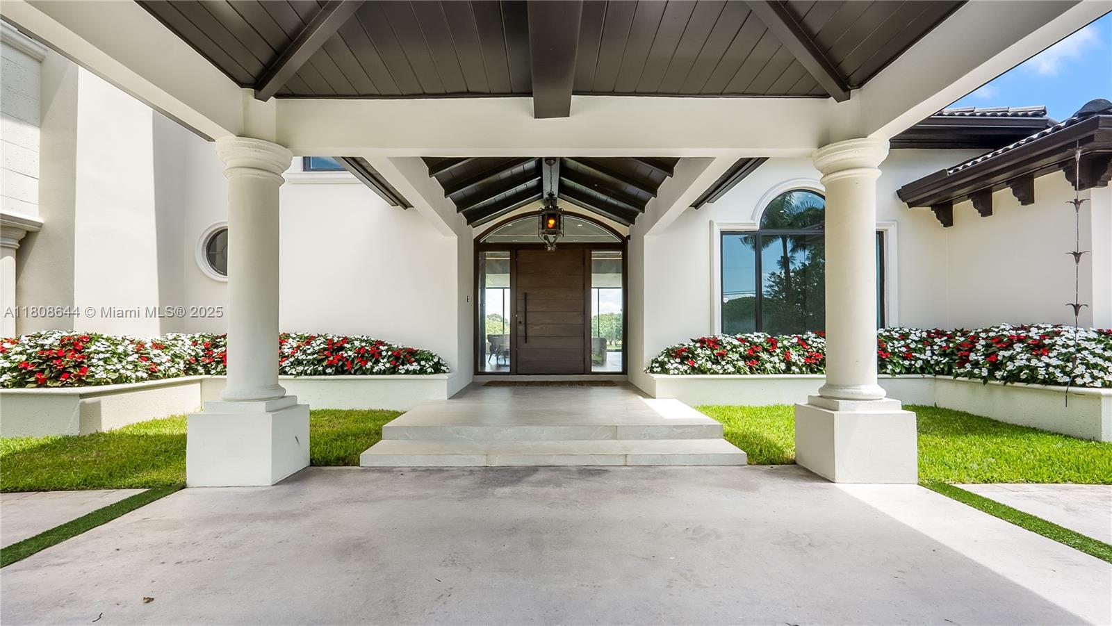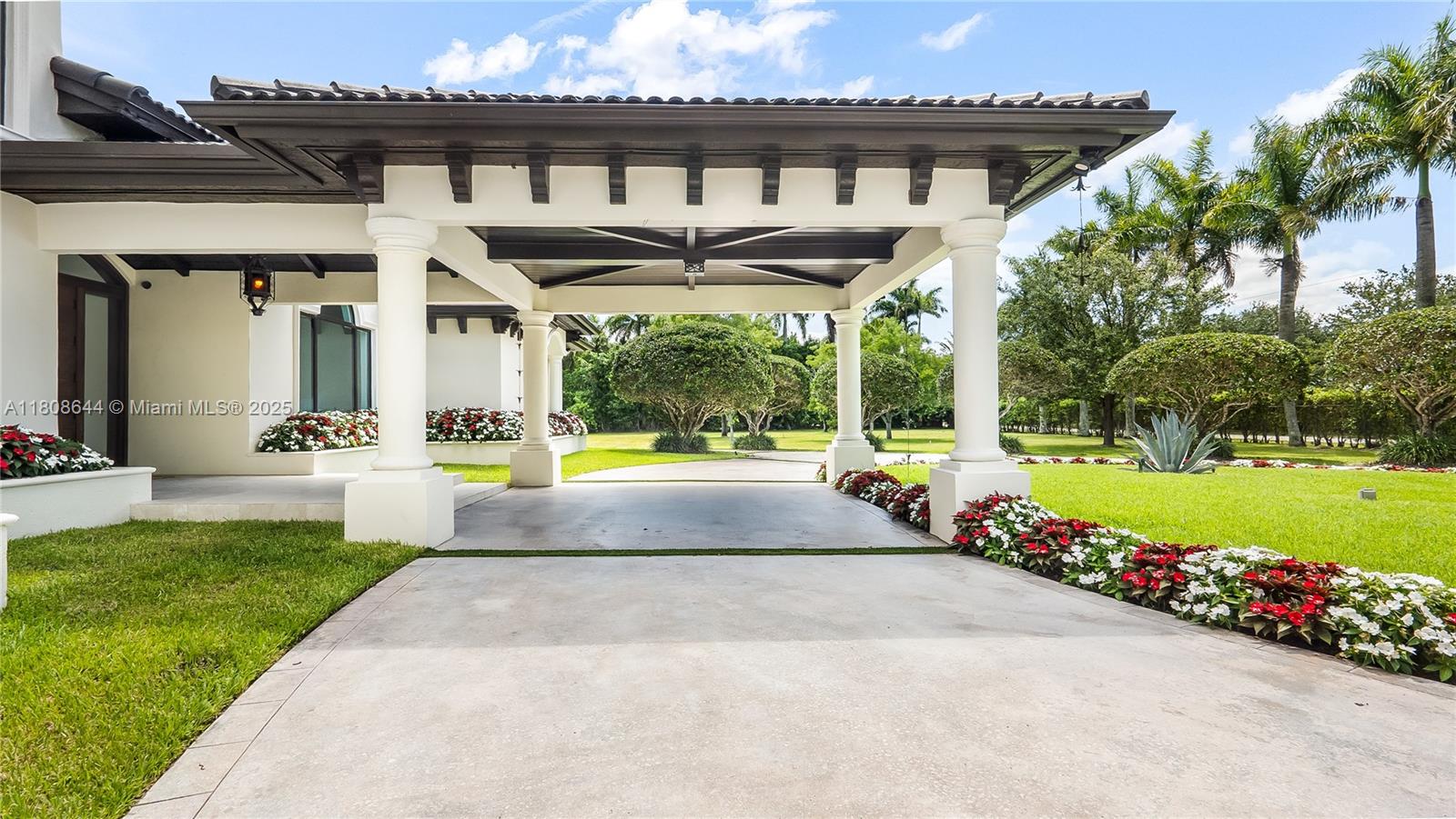 Stunning Redlands Estate — Nestled on expansive 5 acre lot, this custom 4BD/3.5BA residence (5,490 SF) is paired with a fully independent 3BD/2BA guest house (1,689 SF) offering the perfect balance of luxury & privacy. A gated entry, circular driveway, & porte-cochère create a grand welcome into a property where timeless architecture meets refined country living. The home showcases soaring ceilings, impact glass, & a dramatic custom wood entry door. The open-concept kitchen is a centerpiece of design with sleek modern cabinetry, premium Consentino surfaces, and bespoke fittings. Seamless wood paneling, expansive porcelanato flooring, custom-crafted doors, & fully built-out closets speak to the meticulous attention to detail. This estate offers a rare blend of privacy, elegance, & lifestyle