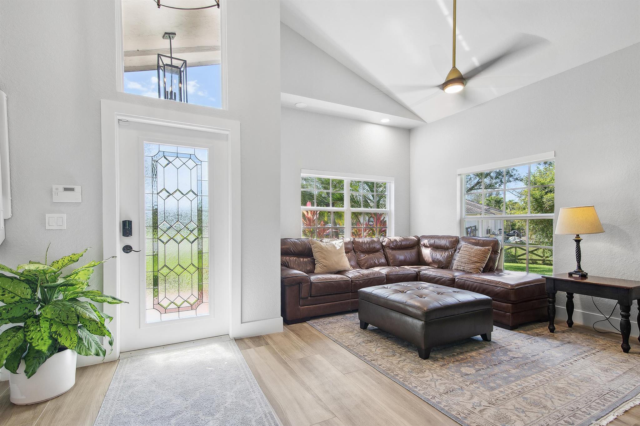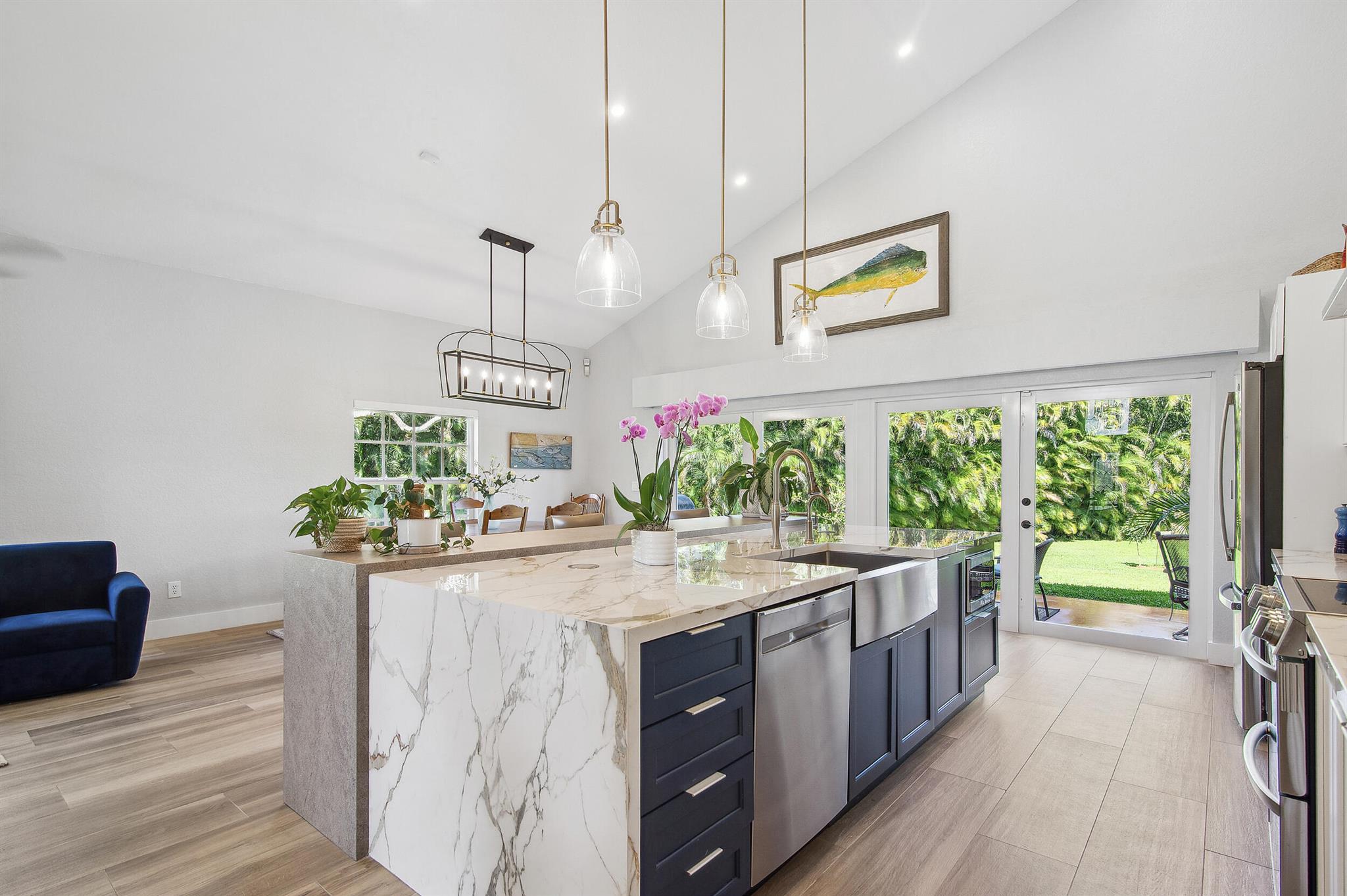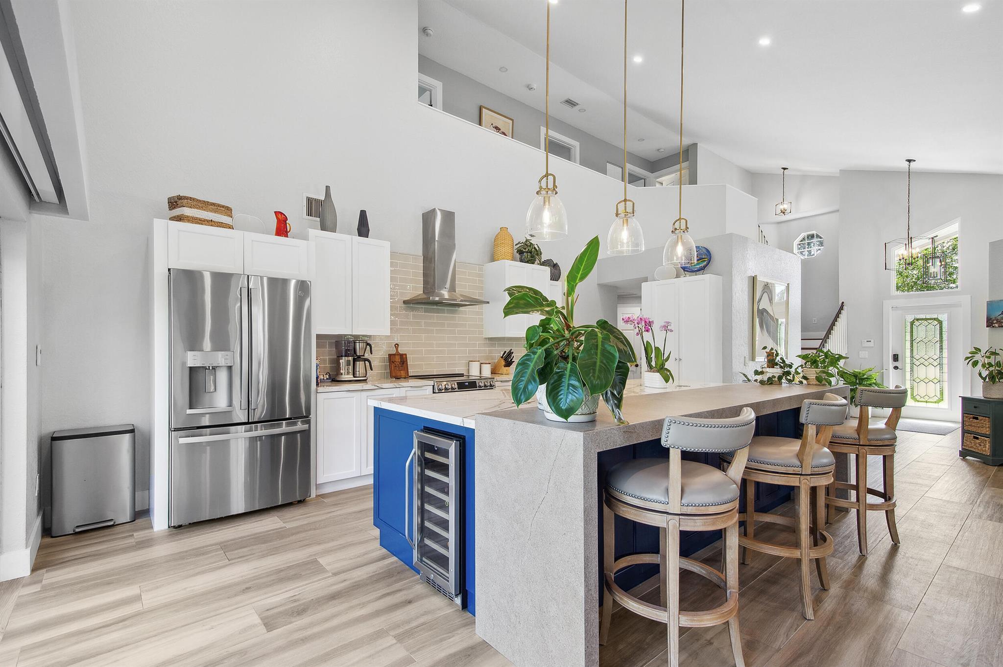 This Stunning remodeled House has all new kitchen boasts stainless steel appliances (2023), a large vent hood over the stove, Porcelain countertops, a wine cooler, extra bar cabinet space, and recessed lighting. Nestled in The Trails in a quiet cul-de-sac can build in law suite or workshop if wanted on an expansive just under 1 -acre lot with multiple fruit trees, this stunning 4-bedroom, 2.5-bath home offers 2,593 sq. ft. of thoughtfully designed living space. A huge concrete driveway provides ample parking for up to 10 cars or an RV, while the beautifully landscaped surroundings create a peaceful retreat. Step inside to find porcelain tile flooring in the living areas, soaring 20+ ft. ceilings, and automated blinds enhancing the home's modern appeal.