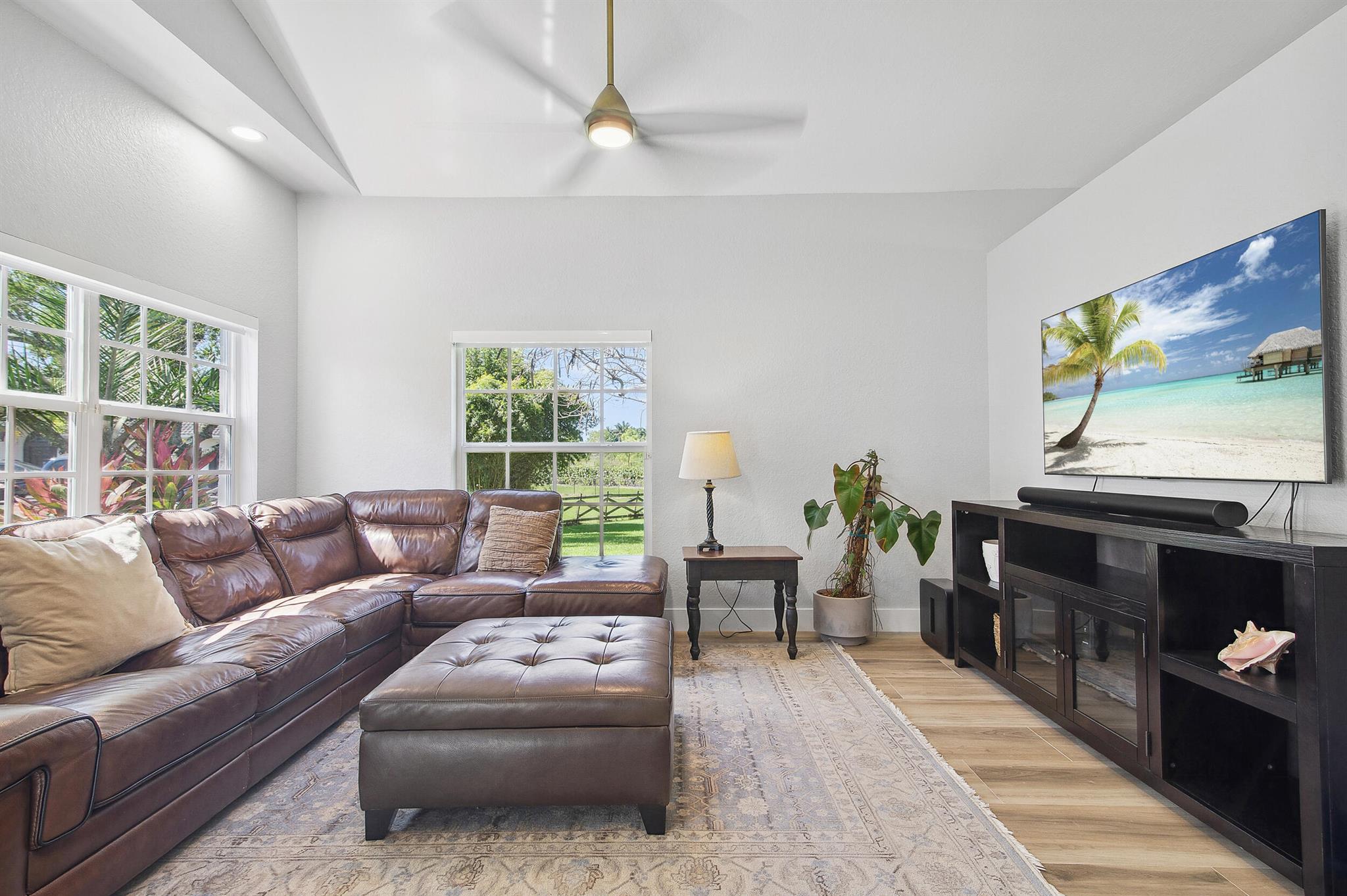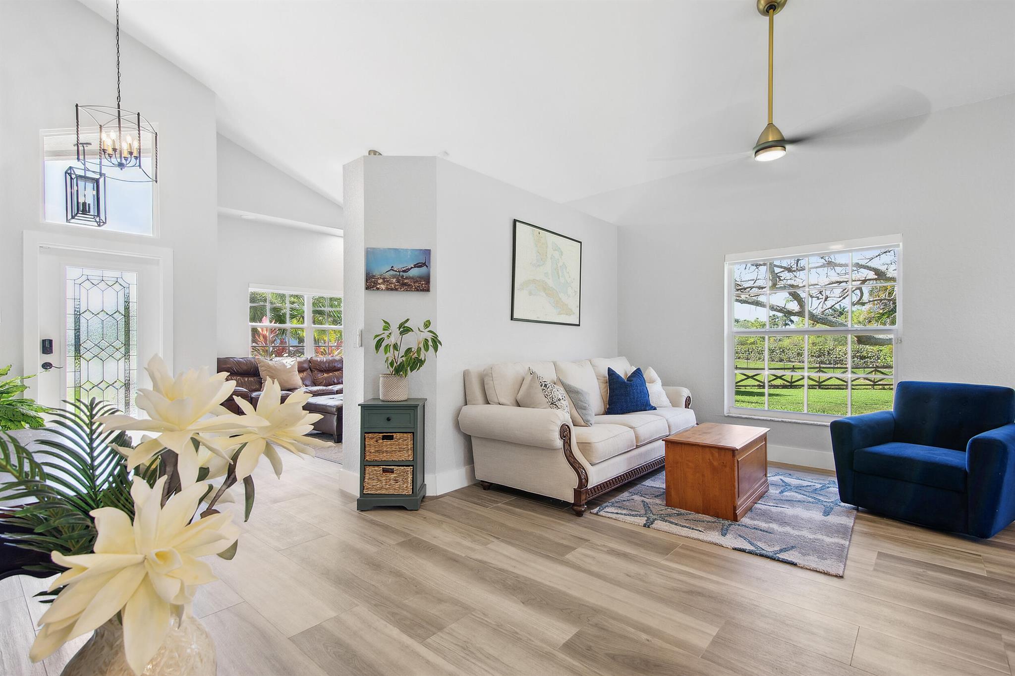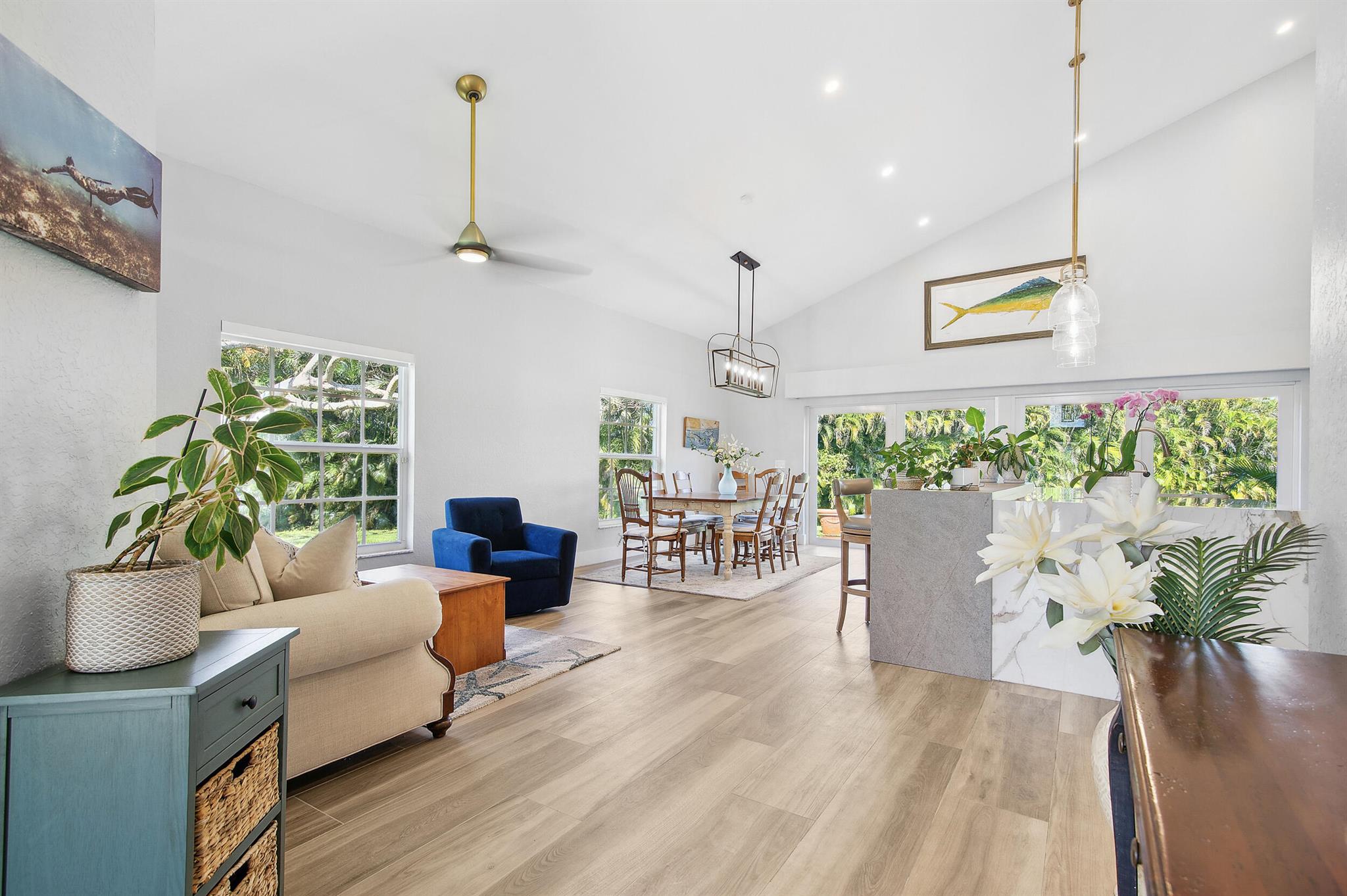 This Stunning remodeled House has all new kitchen boasts stainless steel appliances (2023), a large vent hood over the stove, Porcelain countertops, a wine cooler, extra bar cabinet space, and recessed lighting. Nestled in The Trails in a quiet cul-de-sac can build in law suite or workshop if wanted on an expansive just under 1 -acre lot with multiple fruit trees, this stunning 4-bedroom, 2.5-bath home offers 2,593 sq. ft. of thoughtfully designed living space. A huge concrete driveway provides ample parking for up to 10 cars or an RV, while the beautifully landscaped surroundings create a peaceful retreat. Step inside to find porcelain tile flooring in the living areas, soaring 20+ ft. ceilings, and automated blinds enhancing the home's modern appeal.