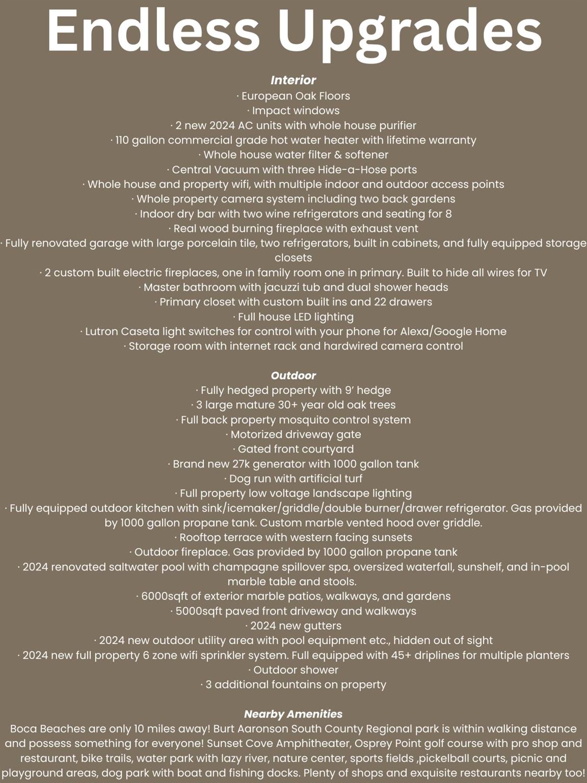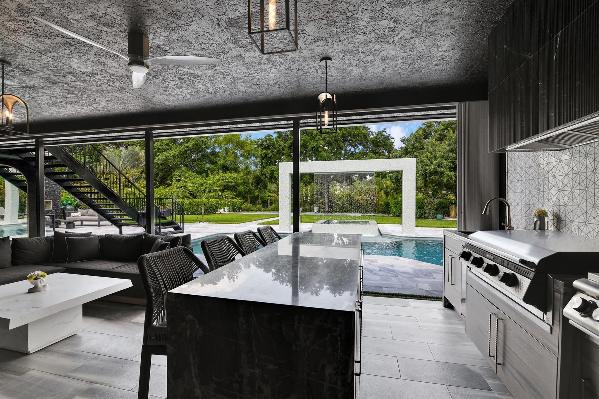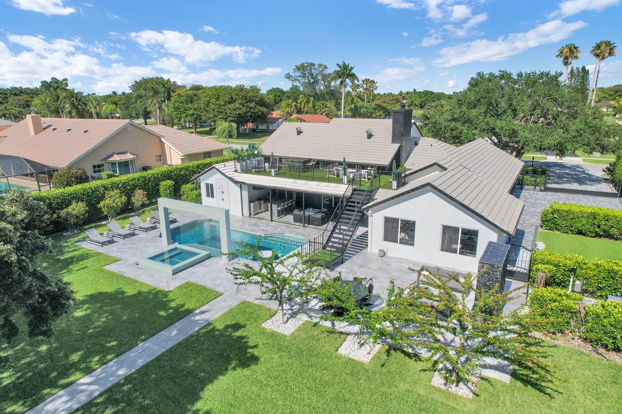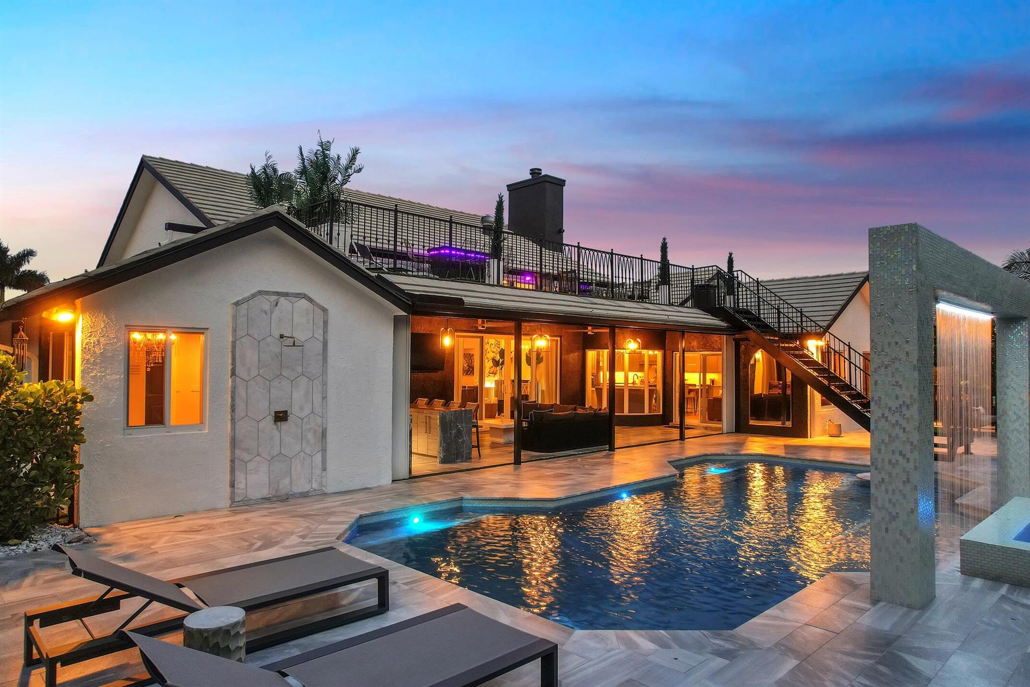Introducing a pinnacle of elegance with this 4bed/3bath home. Wall-to-wall European oak floors adorns the home with massive12ft island in kitchen,2AC units '24, hurricane impact, generator, tankless water heater, central vac,& full camera security system.3car garage showroom with large porcelain tile&built in closets-ideal for car enthusiasts! Smart lighting controlled via your phone&voice.New outdoor kitchen& resort style pool,with over 12k SqFt of marble & pavered patios.Enjoy the rooftop terrace,while the mosquito system offers comfort.This home blends luxury,function & style. Situated on a spacious .60-acre lot,with lush landscaping & a dog run with artificial turf! Walking distance to house of worship.Don't miss the chance to own this exceptional property.Your dream lifestyle awaits!