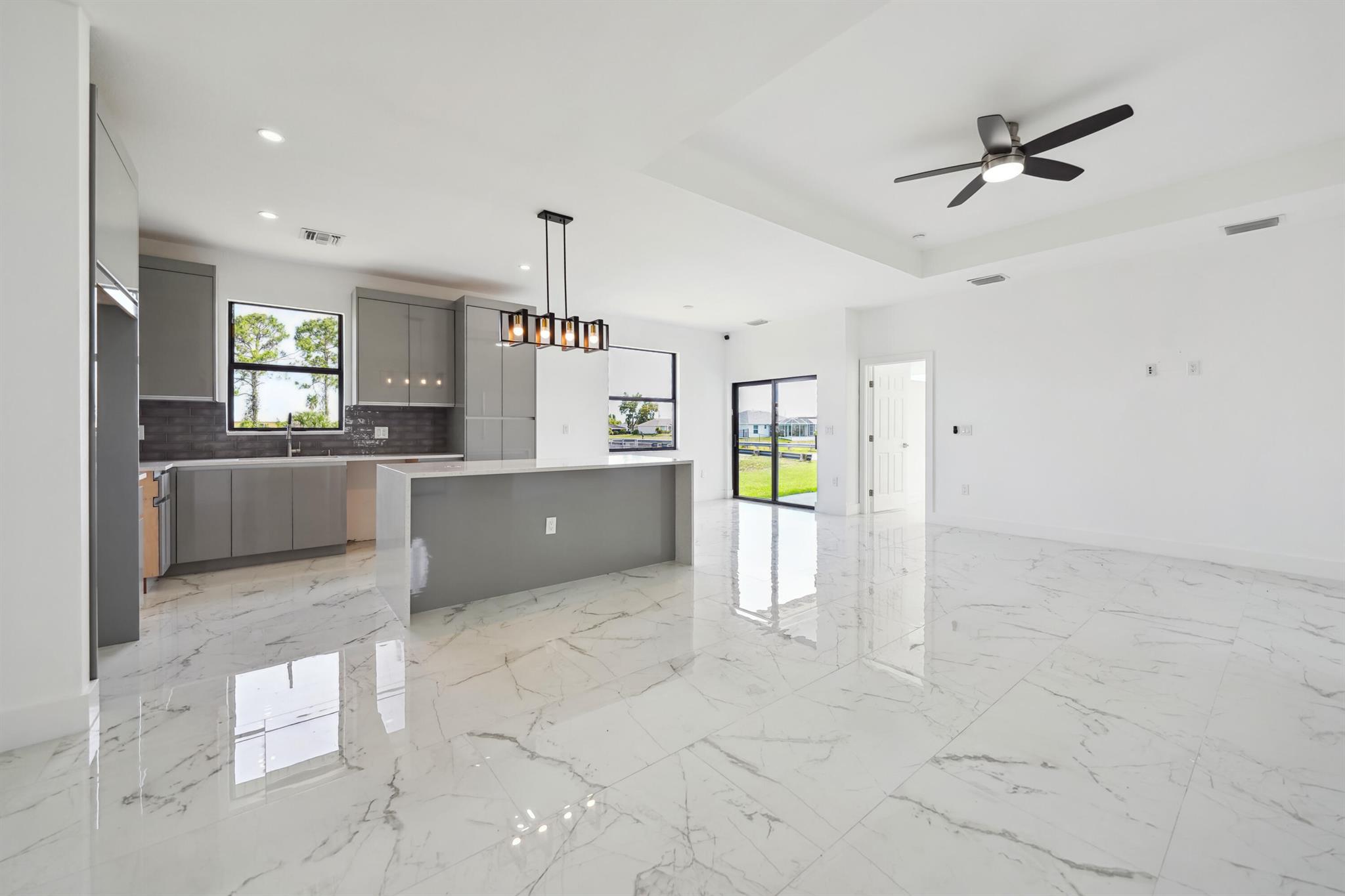 Now It's the perfect Time to buy! This gorgeous new construction on a freshwater canal could be the one! With an open concept floor plan and a sleek modern design, this home has everything you need and more. Here's what makes it stand out; 3 Spacious bedrooms + Den 2 stylish baths 2-car garage Gorgeous Italian Tile throughout the home. A kitchen that's chef approved wih quartz countertops, stainless steel appliances, and a french door refrigerator remote control ceiling standing tub, and a double-enry walk in shower with multiple showerheads and separate sinks. Plus, the under-truss lanai offers a spacious area for entertaining, and the home is built with hurricane impact windows and doors for peace of mind. It also includes a concrete driveway and auto-sprinkler system -low maintenance,