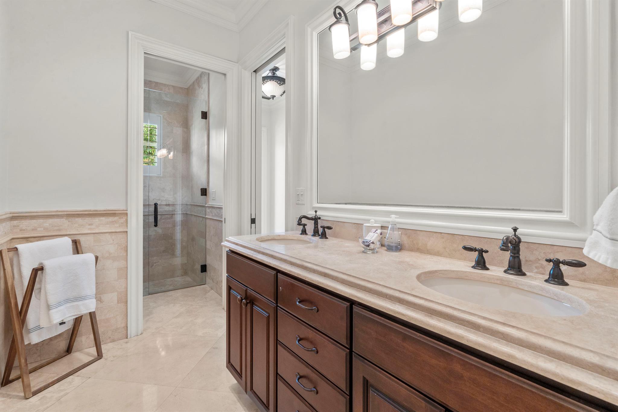 Seven bedrooms total, 5458 square feet on 1.04 acres with 5 Bedrooms and 5 full baths in the main house and a two-bedroom, 1 bath, guest house. High end appliances like Wolf and Sub-Zero, and finish details such as massive, solid wood entrance doors and superb theater room millwork, distinguish this home that was featured in Palm Beach's ''Simply the Best''. With a new roof, impact windows and commodious layout that afford great privacy, this home is a high value turnkey proposition.