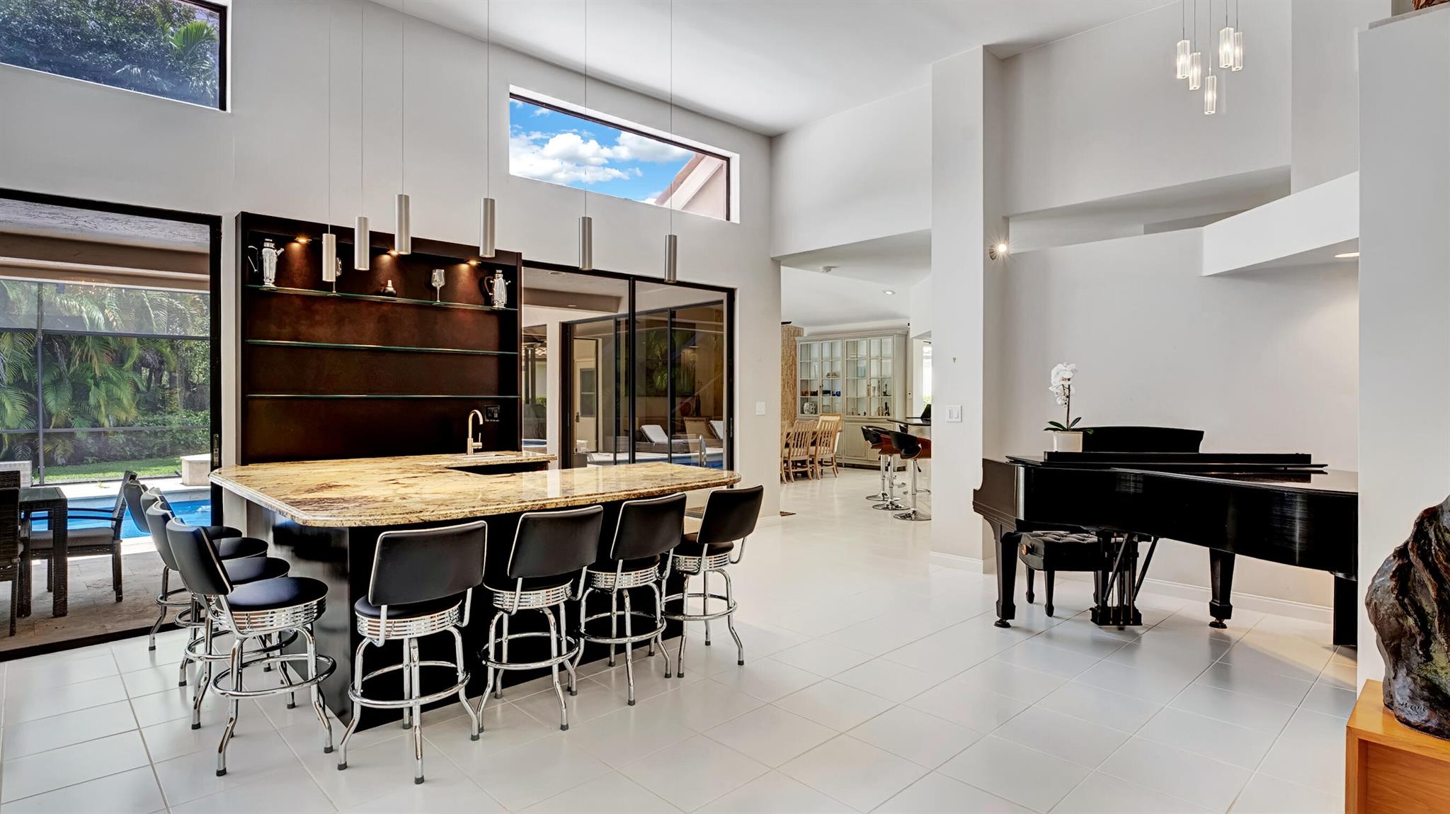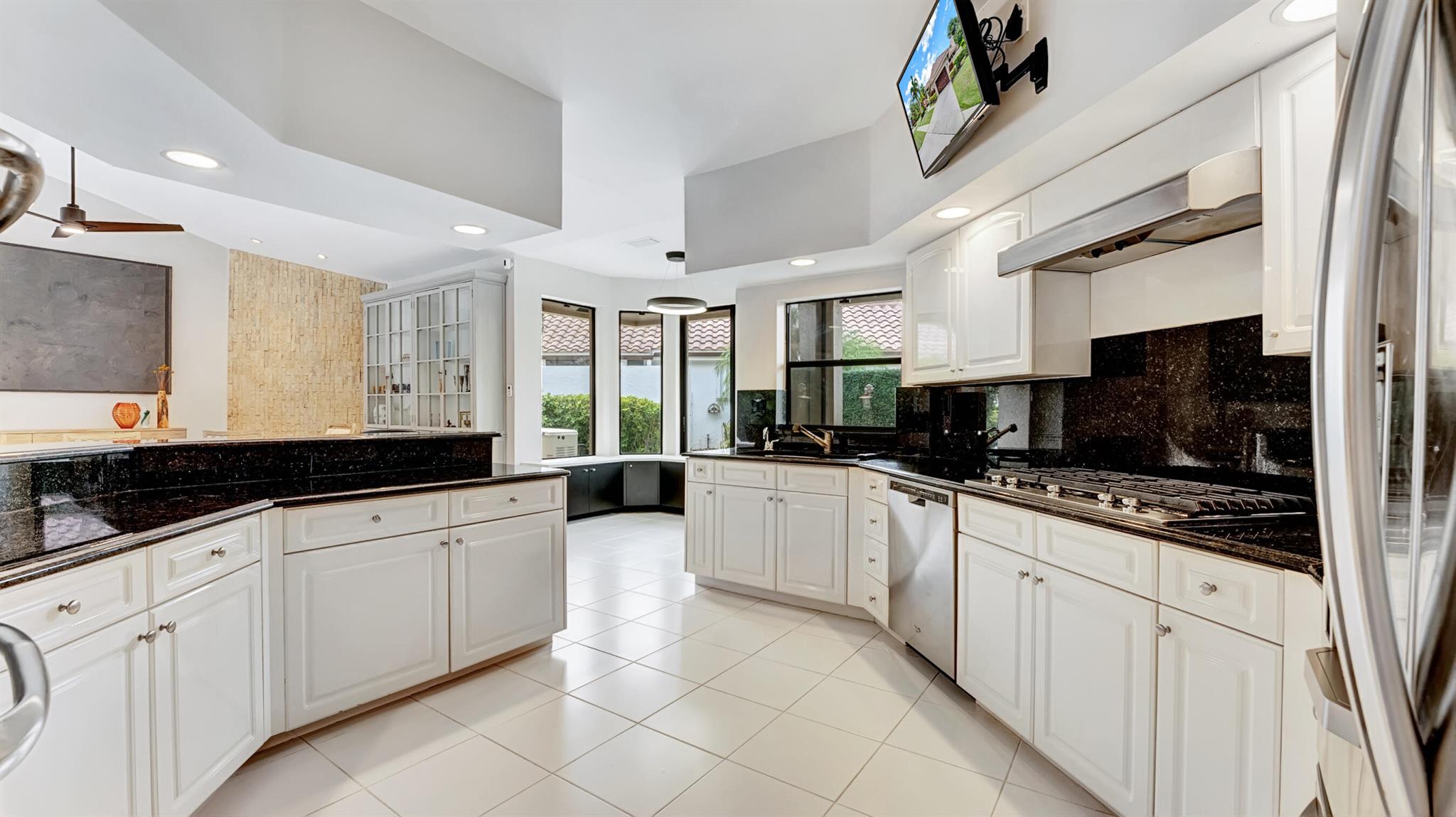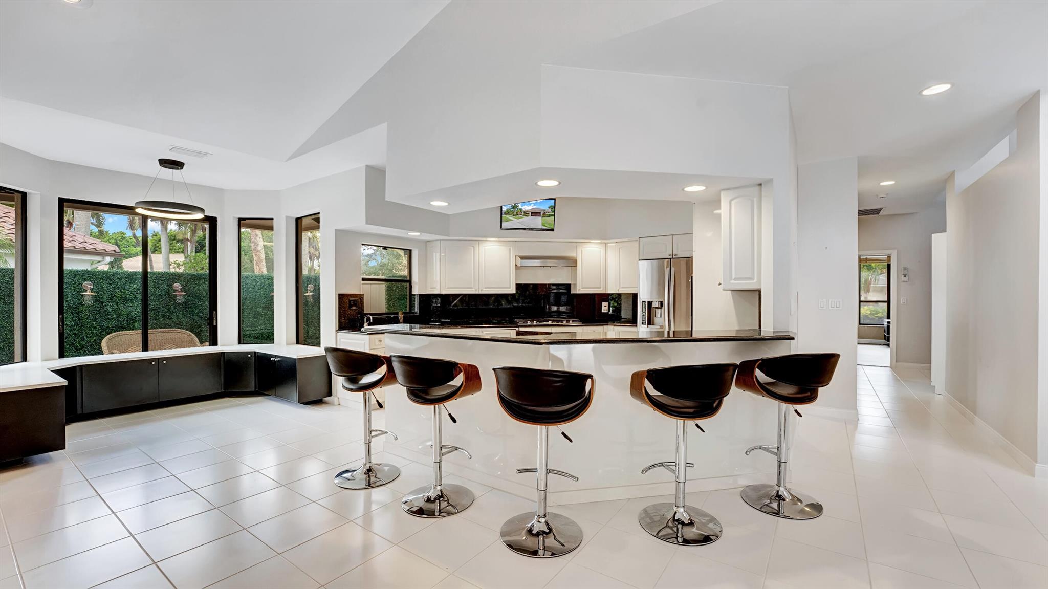 Located in the exclusive Encantada section of Boca Pointe-Discover your opportunity to own one of the largest single-story homes in the coveted Encantada section of Boca Pointe. This lakefront residence offers 3 spacious bedrooms, 3 bathrooms, and over 3,350 square feet of living space, all set on an expansive 13,000+ sq ft lot with tranquil water views and lush tropical landscaping.From the moment you enter, you'll appreciate the volume ceilings, abundant natural light, and a layout designed for both entertaining and everyday comfort. The home features a formal living and dining room, large eat-in kitchen, split-bedroom design, and multiple access points to the screened patio and private pool overlooking the lake.Enjoy the peace of mind and prestige of Entrada, a quiet gated enclave